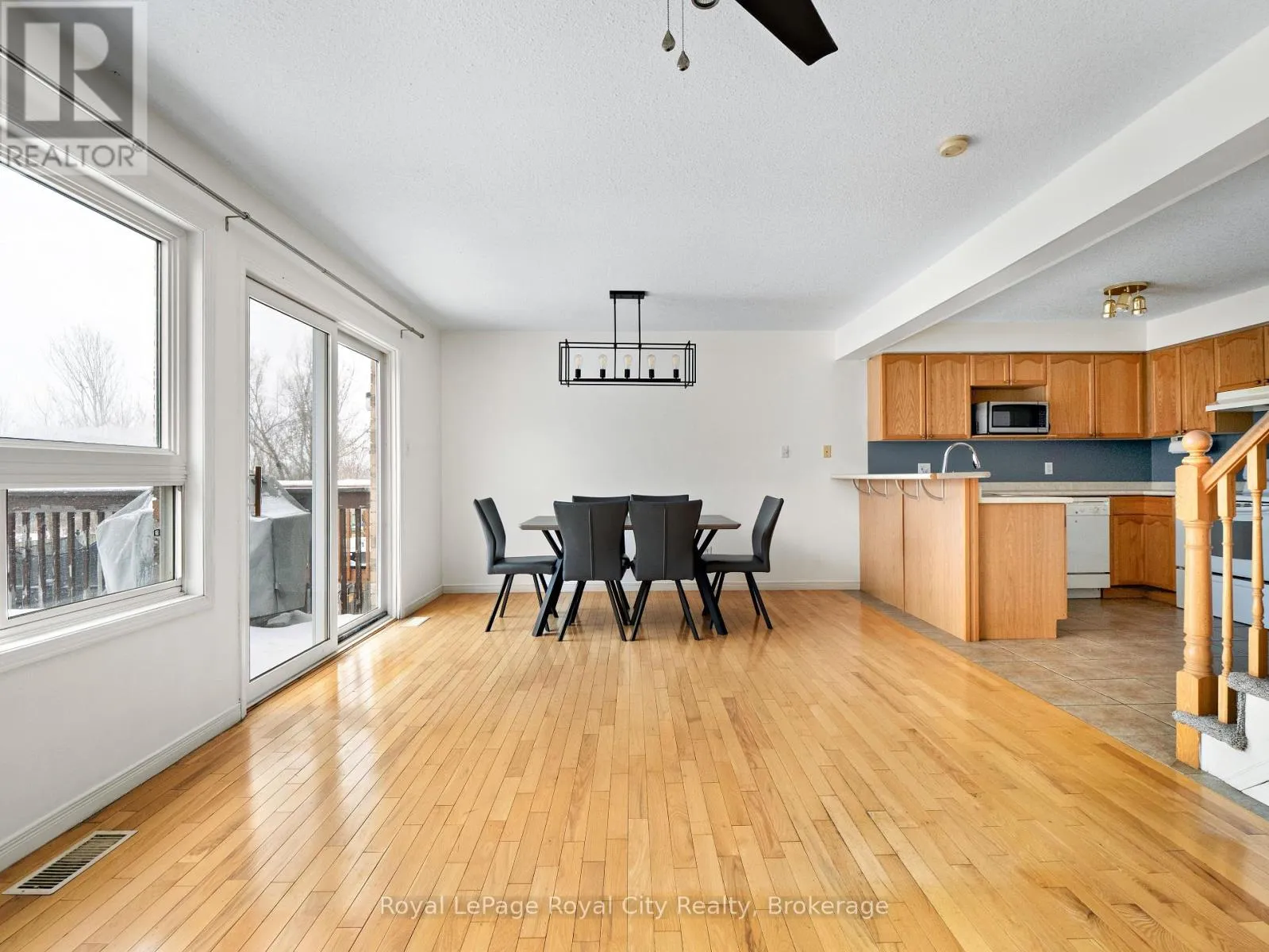 Cross Streets: Grange Road. ** Directions: Grange Road and Schroder Crescent. Welcome to 47 Schroder Crescent, a stylish and bright freehold attached home in one of Guelph's sought-after east end neighbourhoods! Featuring 3 Bedrooms and 4 Bathrooms, this well-appointed residence features an open-concept main floor ideal for modern living and entertaining. The formal dining space offers ample room to seat six, creating the perfect setting for hosting. The living room blends seamlessly into the space, highlighted by cohesive hardwood flooring that allows the area to truly shine. Step out back onto your raised deck and enjoy seasonal dining in the spring and summer months, with peaceful views of the trail beyond. Upstairs, you'll find two comfortable bedrooms with versatile layouts, along with a shared four-piece bathroom. Central to the other bedrooms, the primary bedroom features a walk-in closet and a private three-piece ensuite. The fully finished walkout basement adds valuable additional living space-perfect for a family room, home office, or kids' playroom. Outside, the private yard is ideal for relaxing or hosting BBQs in warmer months. With easy access to parks, schools, shopping, transit, and trails, this home blends convenience and community living seamlessly. (id:27476)
