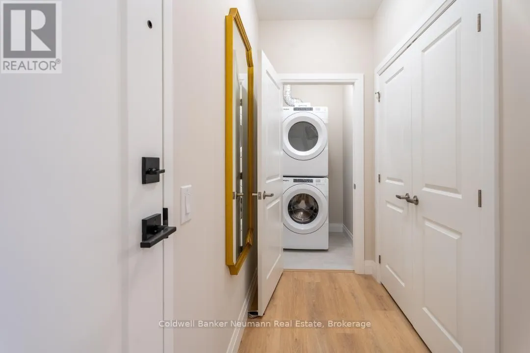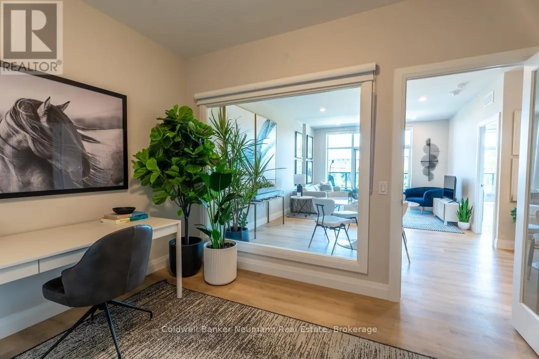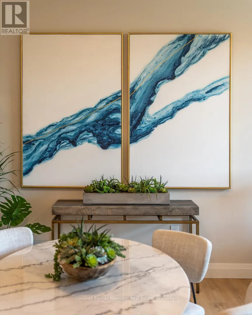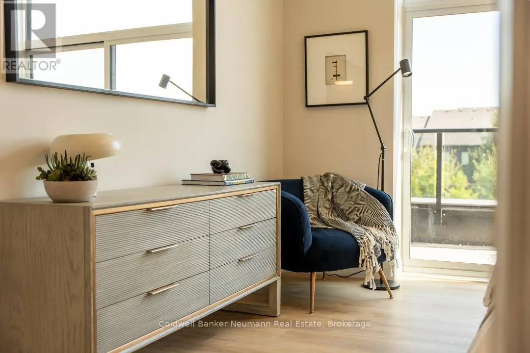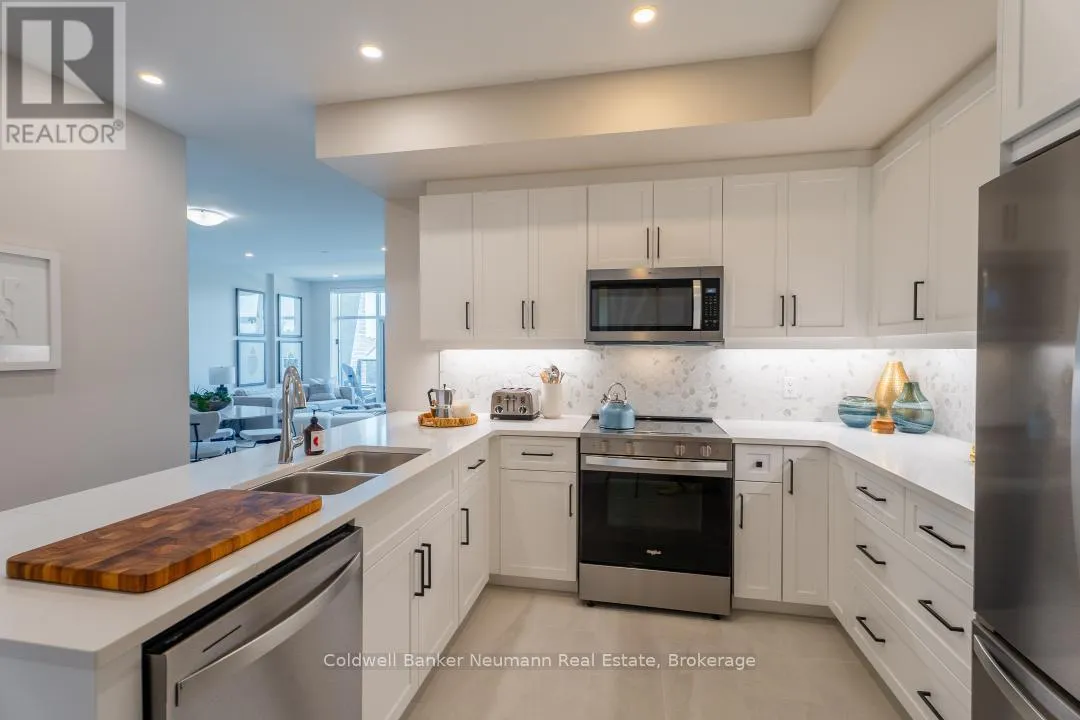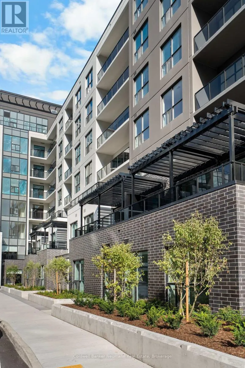 Cross Streets: Gordon St and Clair Rd W. ** Directions: Gordon St to Gosling Gardens. Welcome to Gordon Square III, offering refined condominium living in Guelph's desirable south end. This beautifully designed 2-bedroom, 2-bath suite offers approximately 1,145 sq. ft. of modern, open-concept living, complemented by two private terraces with access from both the living room and the primary bedroom. The bright and spacious layout features a stylish kitchen with quartz countertops, stainless-steel appliances, and a generous dining area that flows seamlessly into the living space, ideal for both everyday living and entertaining. The primary bedroom includes a walk-in closet, a private ensuite, and direct access to its own terrace, creating a comfortable retreat. A well-sized second bedroom and full second bathroom offer flexibility for guests, family, or a home office, while in-suite laundry adds everyday convenience. Ideally located close to shopping, dining, parks, and major commuter routes, this south-end condo offers an exceptional blend of space, comfort, and lifestyle. This is an excellent opportunity for a first-time home buyer looking to enter the market in a quality-built Tricar condominium. Be sure to ask about the first-time home buyer incentive program, which guarantees applicable government housing rebates prior to official approval, subject to eligibility. (id:27476)