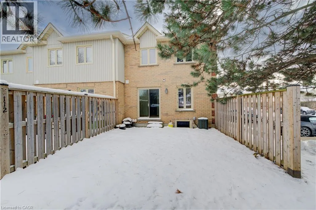Enter complex driveway directly across from Centennial Collegiate Vocational Institute. Visitor's parking will be next to the entrance. Welcome to College Park! Unit 112 offers exceptional value in one of the areaâs most well-managed and highly sought-after condo communities. Ideally located just steps from Stone Road Mall, the University of Guelph, transit, shopping, and quick access to the Hanlon Expressway/401, this home is a perfect fit for buyers seeking comfort and convenience. This bright end-unit townhome features charming brick curb appeal, a single-car garage, and a private driveway. Inside, youâll find a well-appointed kitchen with ample cabinetry and generous storage. The open-concept living and dining area is filled with natural light and includes sliding doors leading to your private patio and backyardâan ideal space to unwind. Upstairs, you'll discover spacious bedrooms and well-sized bathrooms, offering comfortable living for families or professionals. Move-in ready and located in an unbeatable neighbourhood. (id:27476)