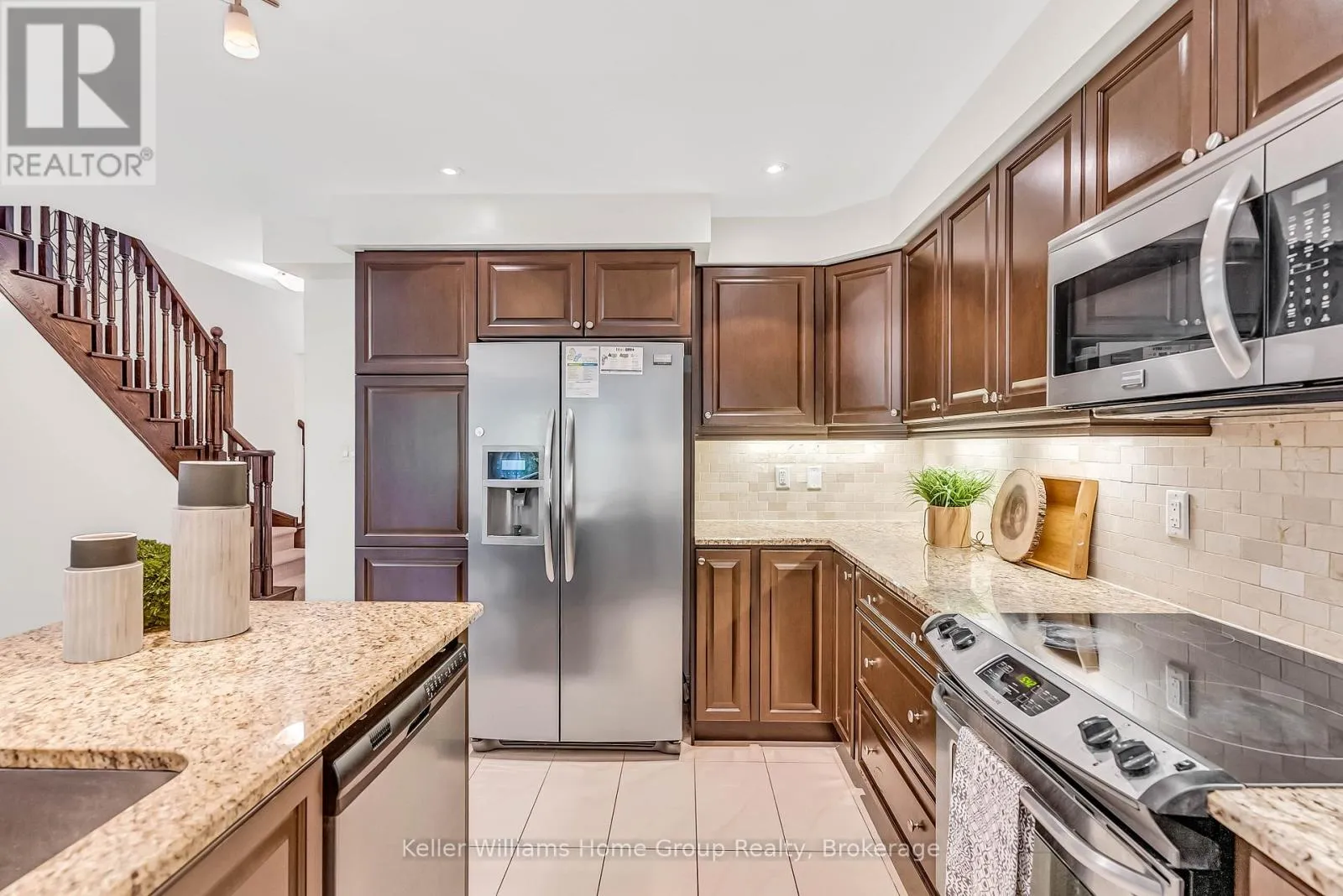 Cross Streets: Victoria and Arkell. ** Directions: College Ave to Victoria Rd S. Spacious 3 Bed, 3 Bath End-Unit Townhome in Desirable South End North Manor Estates. Offering over 1,800 sq ft of stylish living space, this home backs onto serene forest views-no rear neighbours! Step inside to an elegant entryway featuring polished white marble flooring, setting a sophisticated tone throughout. The modern kitchen boasts quartz countertops, pot lights, an island with an undermount sink, and stainless steel appliances ideal for both daily living and entertaining. Upstairs, you'll find 3 generously sized bedrooms, including a rear-facing primary suite complete with a walk-in closet and a 4-piece ensuite bath. The second level also features a convenient upper-level laundry, along with upgraded 3/4" hardwood flooring in the hallway and a stylish main 4-piece bathroom. The unfinished basement offers incredible potential with a bathroom rough-in already in place. Whether you envision a spacious family room or a secondary suite with added bedrooms for rental income, the options are wide open. This unit backs onto peaceful green space, offering both privacy and natural beauty, all while being close to top-rated schools (Arbour Vista!), shopping, and transit. (id:27476)