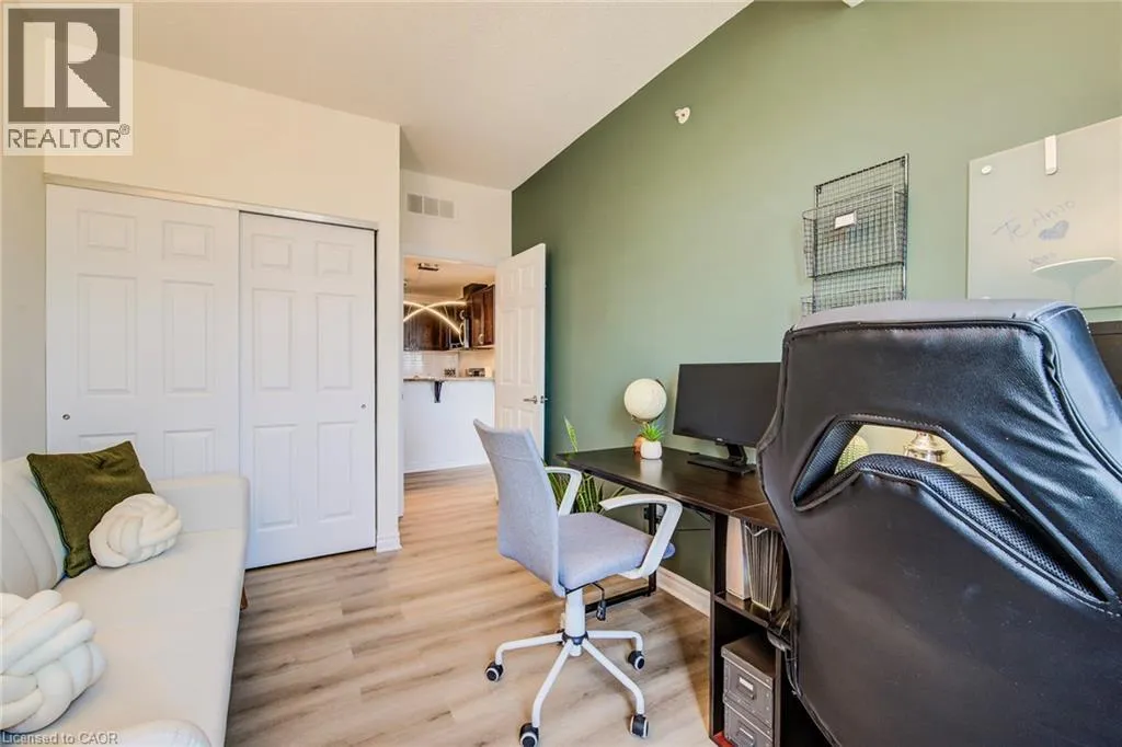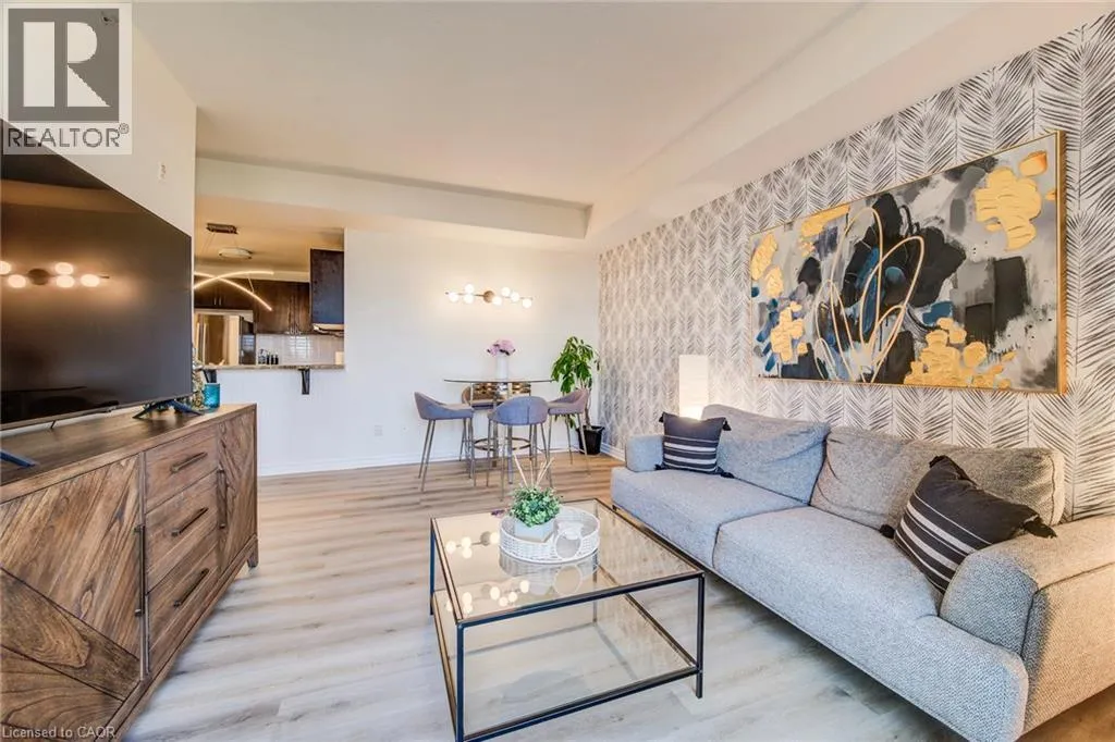 Victoria Rd S to Arkell Rd to Colonial Drive $4000 Marketing Incentive credit to Buyer at Closing. TWO Parking spots and a locker. Welcome to this beautifully updated 2-bedroom condominium offering style, comfort, and convenience. Top floor. Bright and tastefully decorated throughout, this move-in-ready unit features fresh paint, upgraded lighting, and new luxury vinyl plank flooring that adds a modern touch. The open-concept living and dining area is filled with natural light, while the custom accent wall in the primary bedroom adds a touch of designer flair. Step out onto a balcony straight from the pages of Homes & Gardens â a beautifully designed outdoor retreat perfect for quiet morning coffees or unwinding with a glass of wine at sunset. Enjoy fantastic building amenities including a well-equipped fitness room, an inviting event/party room, and plenty of visitor parking for your guests. Conveniently located close to shopping, transit, and everyday essentialsâthis is condo living at its best! (id:27476)