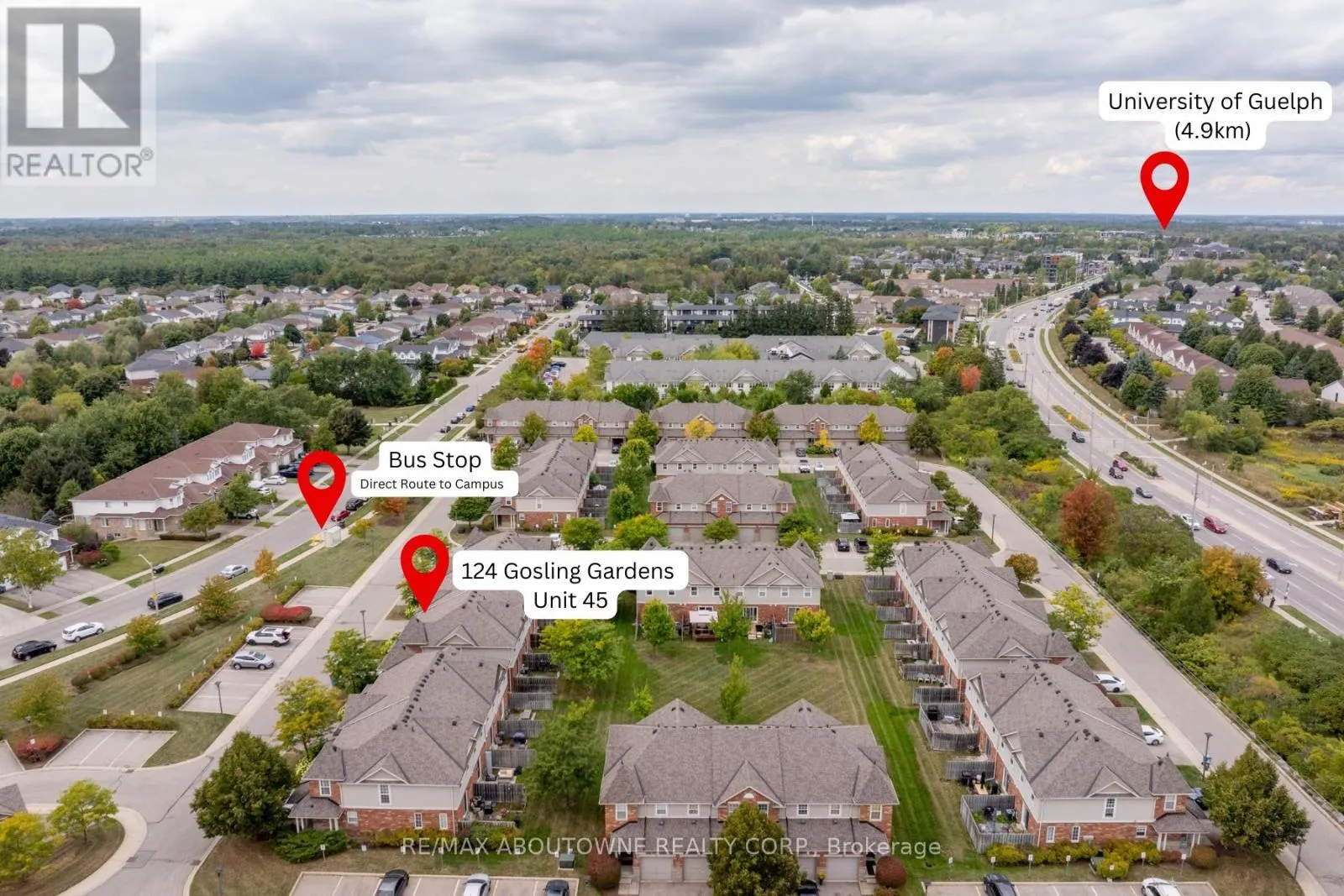 Cross Streets: Clair Rd & Gordon St. ** Directions: As per google map. Location, Location, Location! Welcome to 124 Gosling Gardens Unit 45, a well-maintained, move-in ready 3+1 bedroom, 3 bathroom townhouse in one of Guelphs most desirable south end communities. The bright, open-concept main floor features a spacious kitchen with walkout to a sunny patio and open green space, perfect for entertaining or relaxing. Upstairs, the oversized primary suite offers abundant closet space alongside two generous bedrooms, while the finished basement provides a versatile recreation room or additional bedroom, complete with a laundry closet and 3-piece bath. This carpet-free home has been updated with fresh paint, new vinyl flooring on the main level, quartz kitchen and bathroom countertops, and a new water softener-making it completely move-in ready! Ideally situated within walking distance to shopping plazas, restaurants, entertainment, banks, Bishop Macdonell Catholic High School, and the upcoming South End Community Centre, with a bus stop right in front of the complex offering direct service to the University of Guelph, and the GO bus stop on Gordon Street is also within walking distance - making this home perfect for families, professionals, and commuters alike. (id:27476)