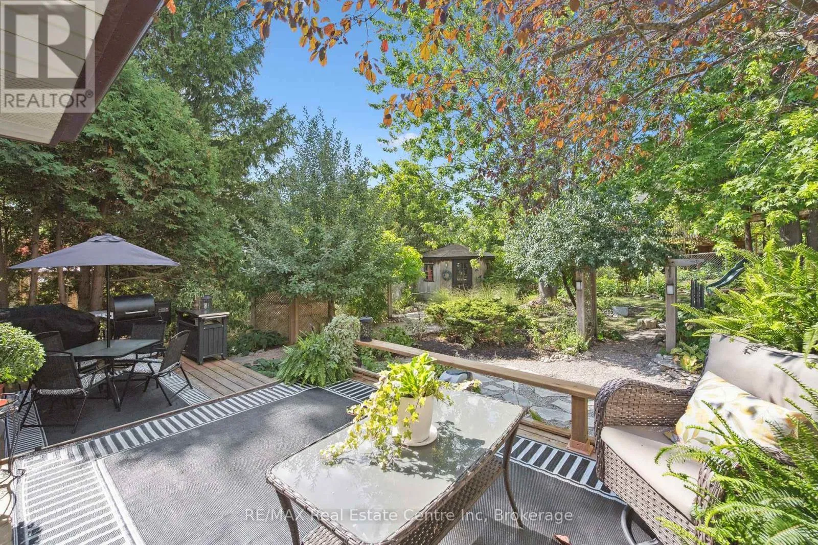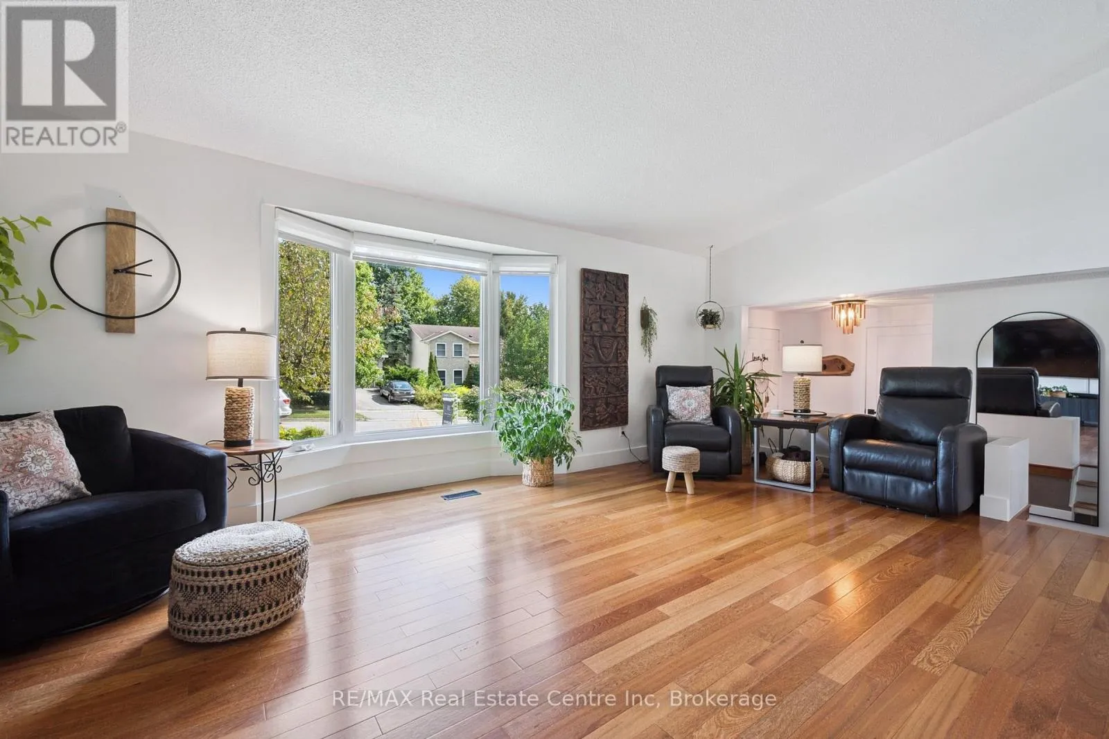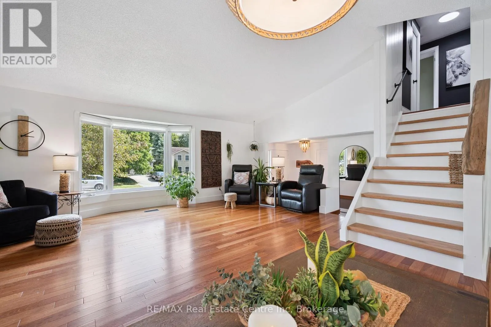 Elmira Rd S & Rochelle Dr Welcome to 53 Rochelle Drive, a side split that blends thoughtful updates with a backyard retreat, which has been part of the Guelph Horticultural Society home tours and still could be, is a wonderful accolade. The curb appeal is warm and inviting, leading to a foyer with a convenient powder room. The open concept main level will impress with cathedral ceilings and gleaming hardwood floors, an ideal space for hosting and family gatherings. The bright kitchen has been modernized with new cabinetry, hardwood flooring, updated appliances, a live edge counter, and a bar fridge, which overlooks the dining area and with sliders to the back deck. It keeps everyone connected, whether entertaining inside or out. Upstairs, three bedrooms and a 4 piece skylit bath await, including a primary suite with a 3 piece ensuite and custom door. The lower level expands your living space with a large recreation room, craft room, workshop with laundry plumbing, a rough-in for an additional bath, and ample storage.. Outside, the two tier deck opens to a whimsical yard featuring perennial gardens, a vegetable plot, a spacious shed, and a brand new two level treehouse for the kids. All of this comes in a family friendly location just a short walk to Taylor Evans Public School. Everyday amenities, shopping, dining, and major commuter routes are close by, while nearby parks and trails provide endless recreation. From the welcoming curb appeal to the whimsical yard, every detail of 53 Rochelle Drive has been crafted with family living in mind. This is a home ready to be cherished for years to come... (id:27476)