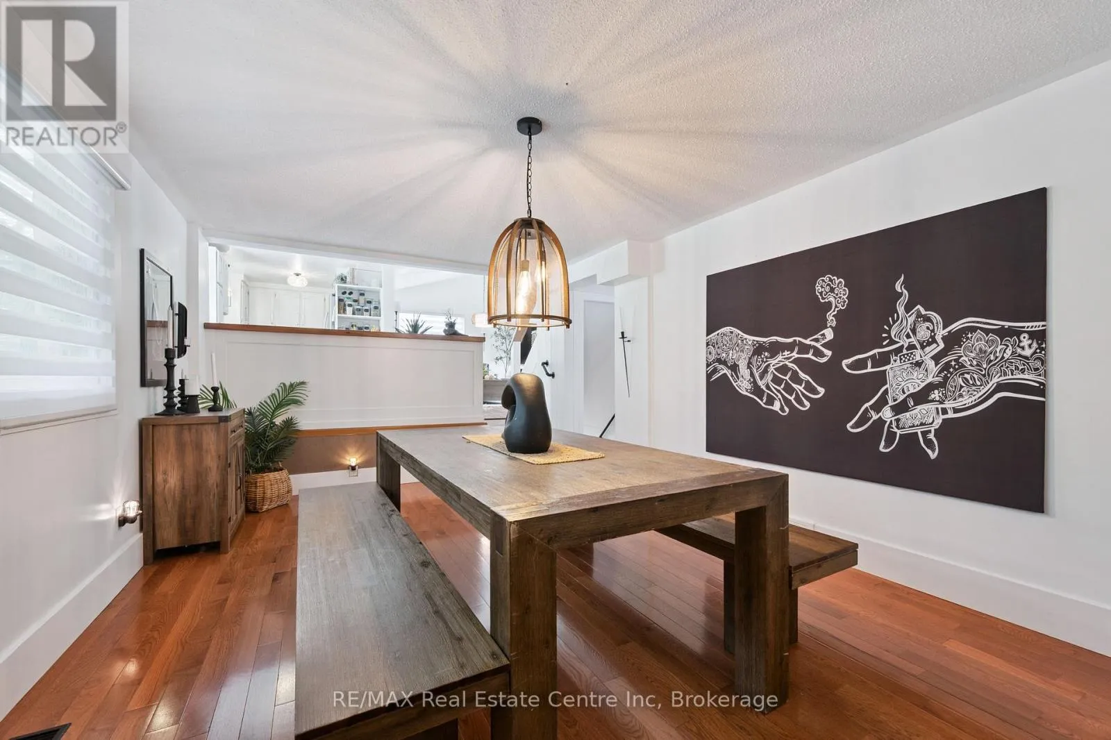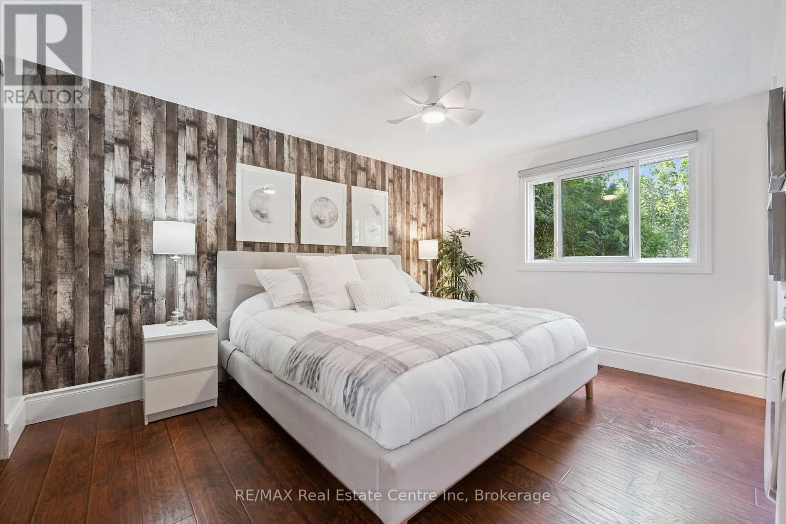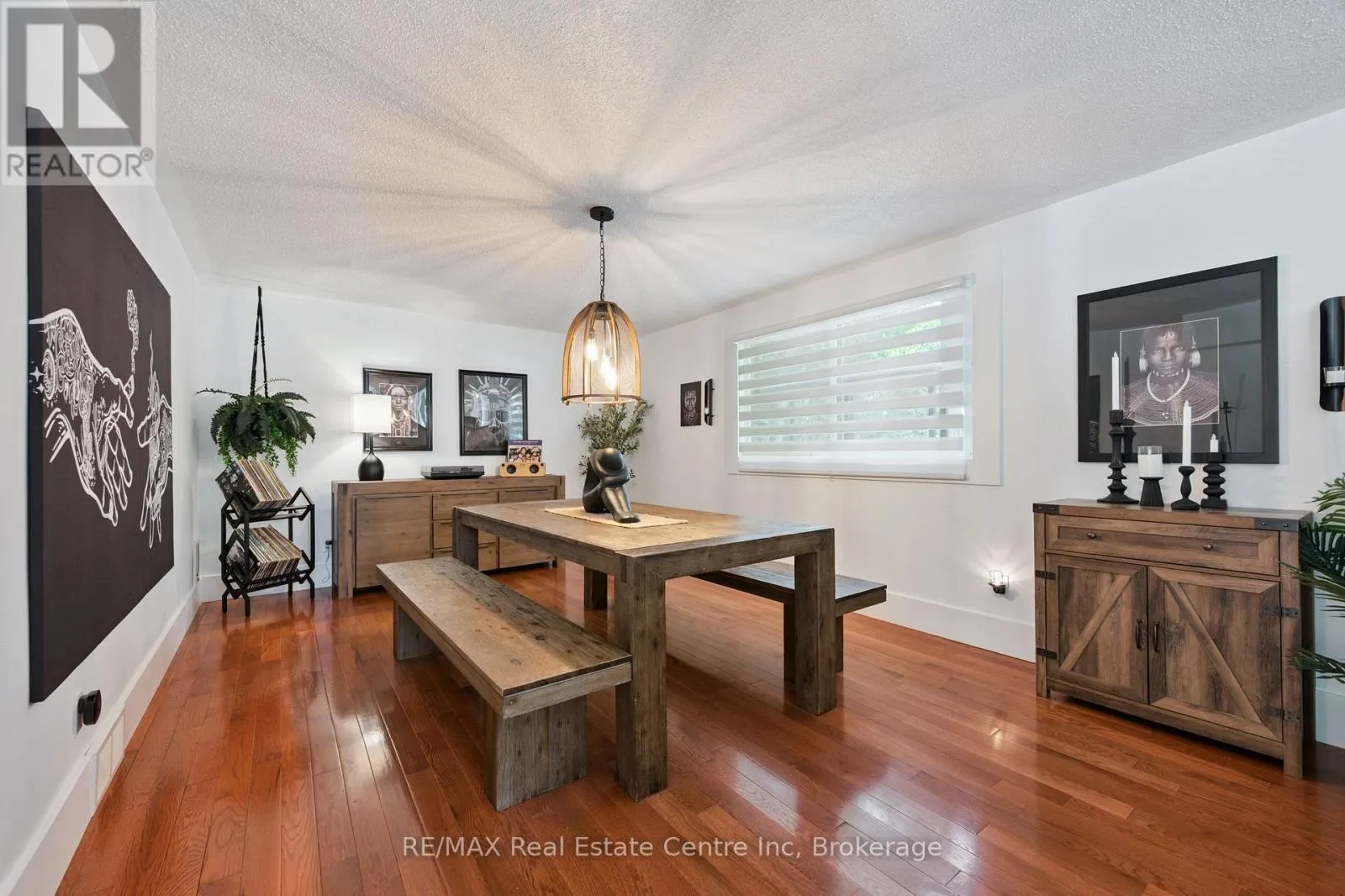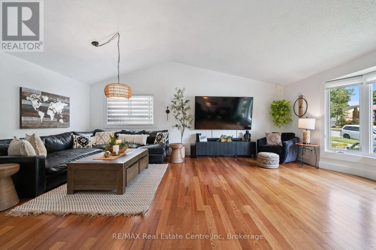Elmira Rd S & Rochelle Dr Welcome to 53 Rochelle Drive, a side split that blends thoughtful updates with a backyard retreat, which has been part of the Guelph Horticultural Society home tours and still could be, is a wonderful accolade. The curb appeal is warm and inviting, leading to a foyer with a convenient powder room. The open concept main level will impress with cathedral ceilings and gleaming hardwood floors, an ideal space for hosting and family gatherings. The bright kitchen has been modernized with new cabinetry, hardwood flooring, updated appliances, a live edge counter, and a bar fridge, which overlooks the dining area and with sliders to the back deck. It keeps everyone connected, whether entertaining inside or out. Upstairs, three bedrooms and a 4 piece skylit bath await, including a primary suite with a 3 piece ensuite and custom door. The lower level expands your living space with a large recreation room, craft room, workshop with laundry plumbing, a rough-in for an additional bath, and ample storage.. Outside, the two tier deck opens to a whimsical yard featuring perennial gardens, a vegetable plot, a spacious shed, and a brand new two level treehouse for the kids. All of this comes in a family friendly location just a short walk to Taylor Evans Public School. Everyday amenities, shopping, dining, and major commuter routes are close by, while nearby parks and trails provide endless recreation. From the welcoming curb appeal to the whimsical yard, every detail of 53 Rochelle Drive has been crafted with family living in mind. This is a home ready to be cherished for years to come... (id:27476)