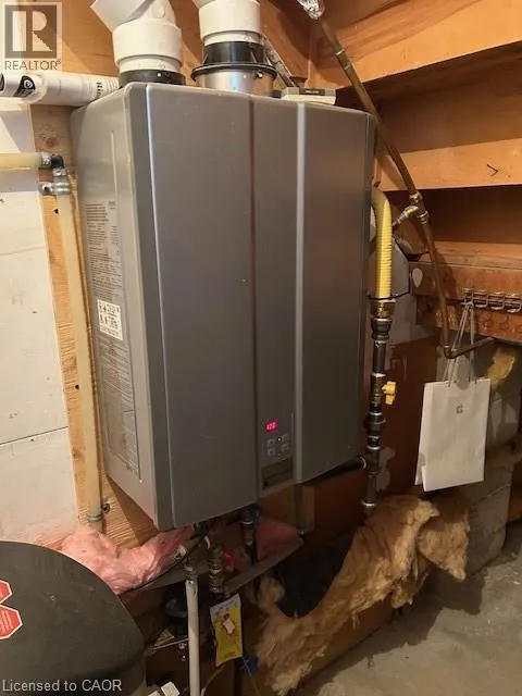 Speedvale Ave W to Silvercreek Welcome to this spacious 3 bedroom townhome with large principle rooms in family friendly neighbourhood. The main level features a large living room, dining room area open to a recently updated kitchen with newer fridge, stove, dishwasher. The second level has Master bedroom plus 2 other good sized bedrooms and an updated main bathroom. Laminate flooring throughout. A fully finished walk out basement with the bonus of a 2pc bathroom and updated washer and dryer. There is the bonus of an rare added forced air furnace with ductwork and air conditioning. Updated electrical plus water softener & tankless water heater. Single car attached garage plus 1 parking space in driveway. Non smoking and pet free home. Conveniently located close to tons of shopping, restaurants plus easy access to highways. RSA (id:27476)