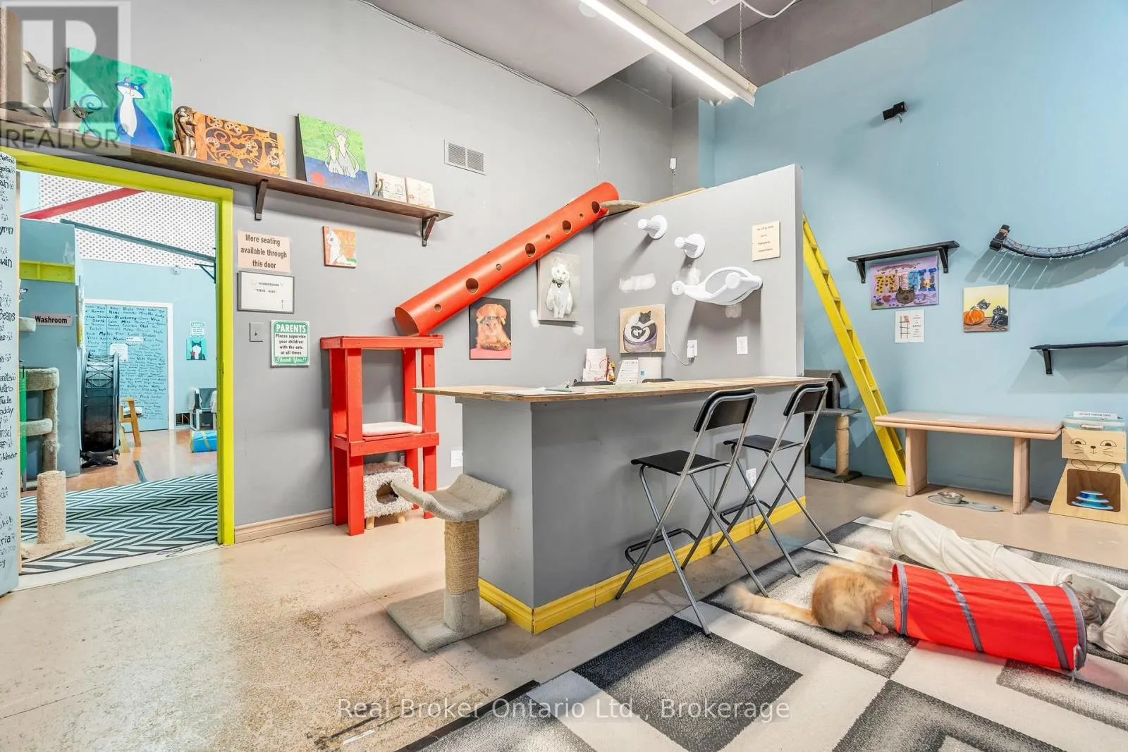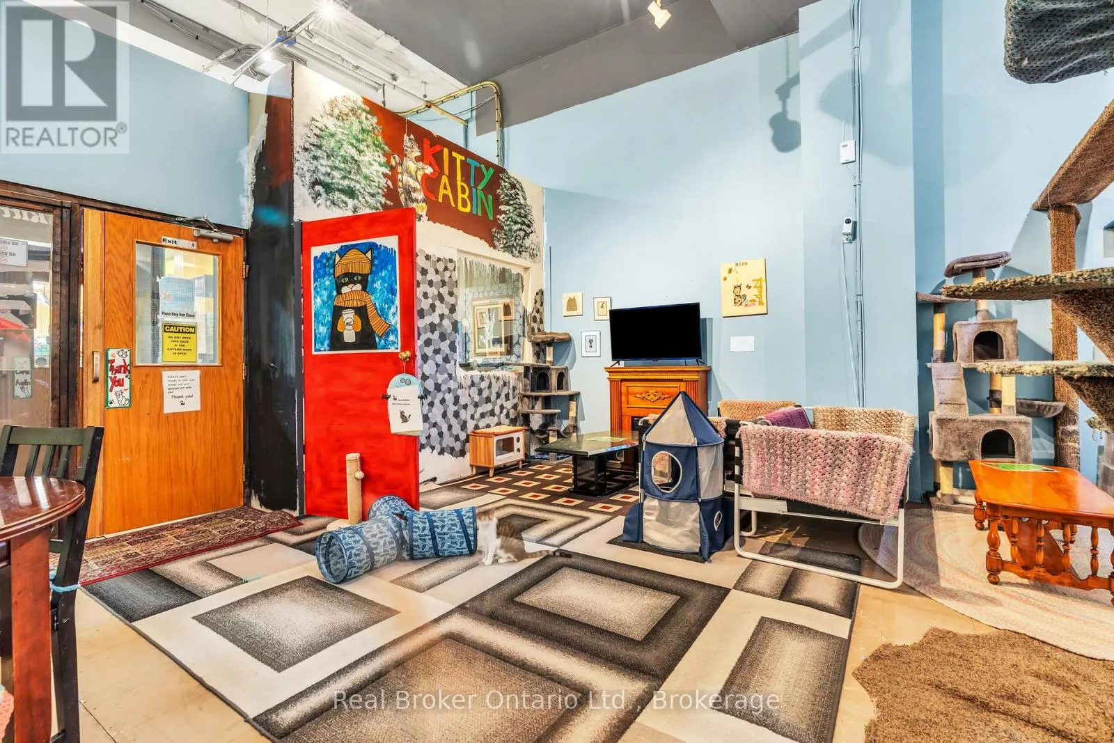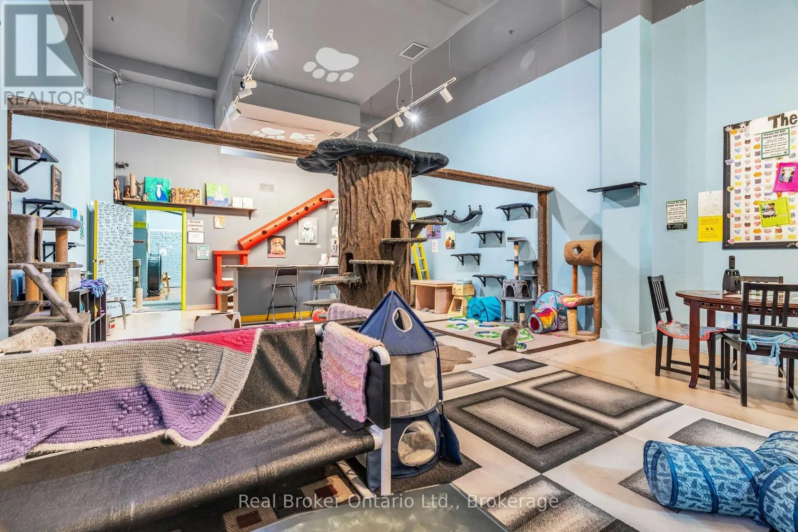 Woolwich St and Wyndham St N Turn your passion for animals into a thriving business opportunity with the sale of My Kitty Café - Ontario's first-ever cat café, ideally located in the heart of Downtown Guelph! This well-established, one-of-a-kind business combines a cozy café experience with a playful cat lounge, offering a welcoming environment for animal lovers and visitors from all over. With a loyal customer base, strong community support, and a successful track record of cat adoptions in partnership with local rescues, My Kitty Café is more than just a business - it's a destination. The café features a charming, themed interior, a fully built-out cat lounge with custom play structures and cozy seating areas, and an operational café space for serving beverages and snacks. The business includes all equipment, branding, website, social media presence, and goodwill - allowing for a seamless transition to new ownership. Profitable and turn-key, this is a rare opportunity to take over a well-loved business with a solid revenue stream, strong brand identity, and tremendous heart and purpose. Continue the legacy, grow the brand, and be part of something truly meaningful. (id:27476)