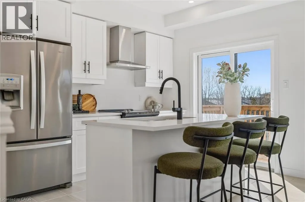 Grange to Sora Lane Welcome to 2 Sora Lane, nestled in a warm and welcoming enclave in Guelphâs highly sought-after east end. This vibrant, family-friendly community is known for its parks, trails, and exceptional quality of life, offering the perfect balance of nature and everyday convenience. Built by Fusion Homes, this brand-new, never-lived-in end-unit townhome offers 1,425 sq. ft. of beautifully finished living space, featuring 3 bedrooms, 2.5 bathrooms, and an attached garage. Designed for modern living, the bright open-concept main floor is ideal for both entertaining and daily life, showcasing hardwood flooring, quartz countertops, premium stainless-steel appliances, and designer-selected finishes throughout. With nearly $50,000 in upgrades, this home delivers exceptional style and value. The chef-inspired kitchen flows seamlessly into the living and dining areas, creating a welcoming space for gatherings with family and friends. Upstairs, the spacious primary suite offers a walk-in closet and spa-inspired ensuite. Two additional well-sized bedrooms and a modern shared bathroom complete the upper level. The walk-out basement provides incredible flexibility for future living space, a home office, gym, or recreation area. Enjoy the Fusion Homes difference, including their industry-leading warranty program averaging twice the industry standard. With private garage parking and close proximity to schools, shopping, parks, and trails, this home combines comfort, style, and location. Bonus: Designer furniture included, making this an exceptional move-in-ready opportunity in one of Guelphâs most desirable communities. (id:27476)