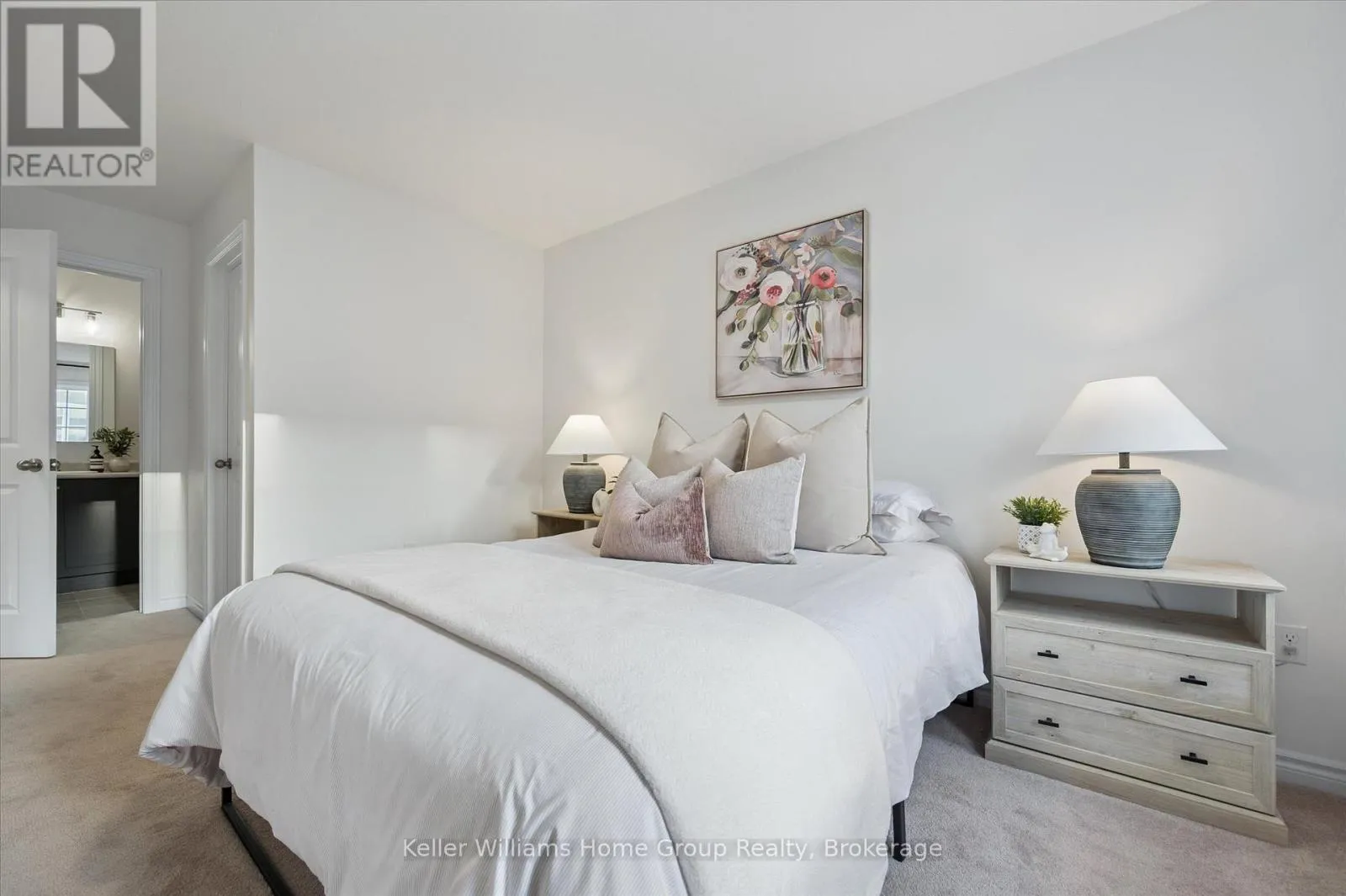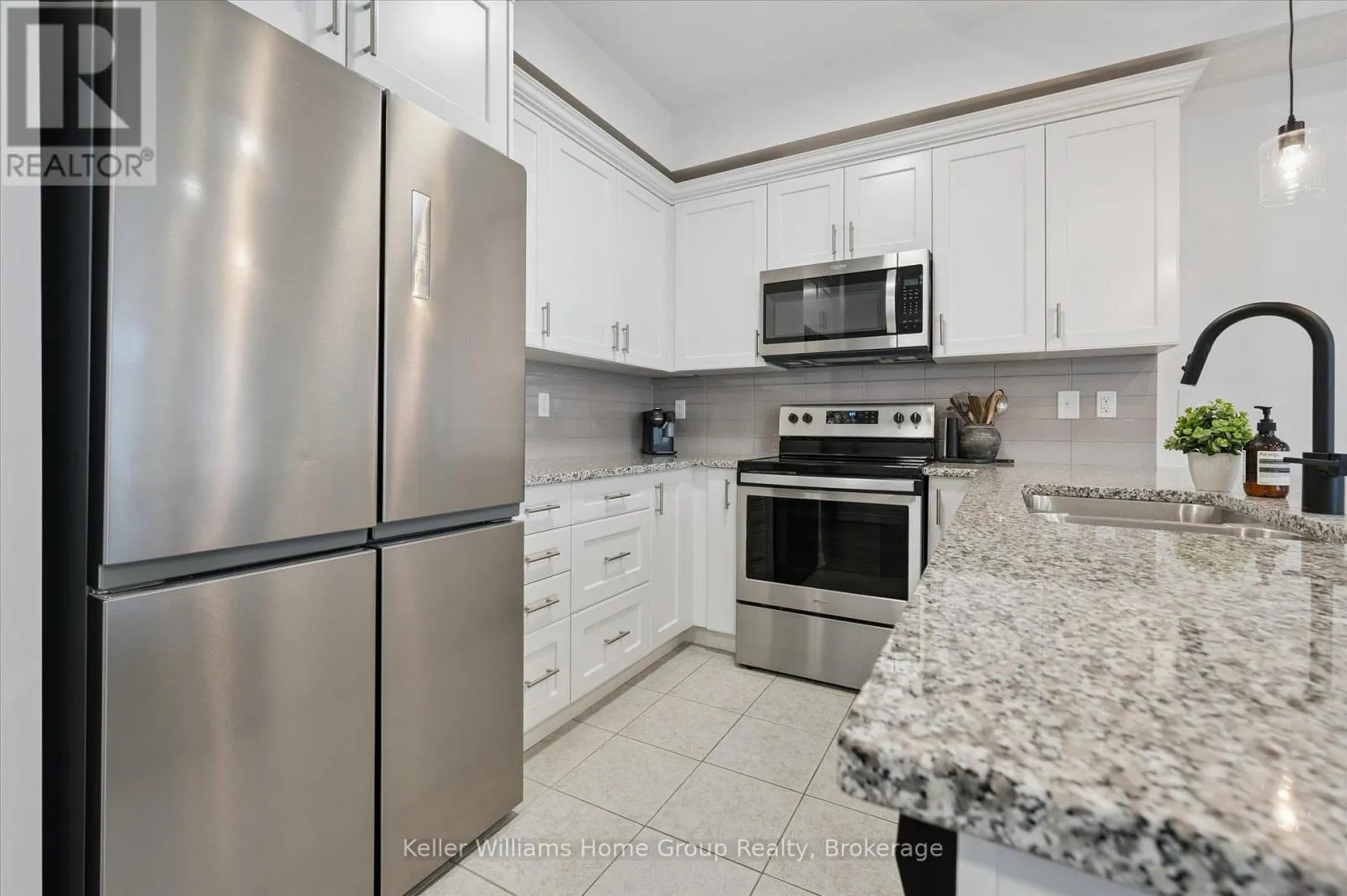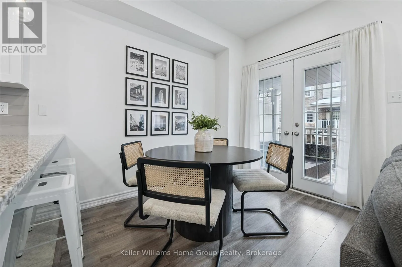 Cross Streets: Victoria/ DeCorso. ** Directions: Victoria to DeCorso. AFFORDABLE 2 BEDROOM FREEHOLD TOWNHOME IN SOUTH GUELPH: This modern freehold townhome is tucked into a quiet South End enclave and offers an easy, low-maintenance lifestyle in a fantastic location. Built in 2019 this home is bright, functional, and move-in ready.The open-concept main level is filled with natural light and features a stylish kitchen with quartz countertops, stainless steel appliances, and a breakfast bar that flows into the living and dining areas. Sliding doors lead to a covered balcony - a great spot for summer BBQs or relaxing at the end of the day.Upstairs, you'll find two well-sized bedrooms, including a primary bedroom with a walk-in closet and private ensuite, plus a second full bathroom and convenient upper-level laundry. SMART home features allow you to control lighting, the garage door, and HVAC with ease. Located close to trails, parks, schools, shopping and accessible to the University of Guelph via transit, this South End location makes everyday living simple. A great opportunity to step into a newer home with modern finishes! Updates include new front door (2025) and washer/dryer (2024) (id:27476)