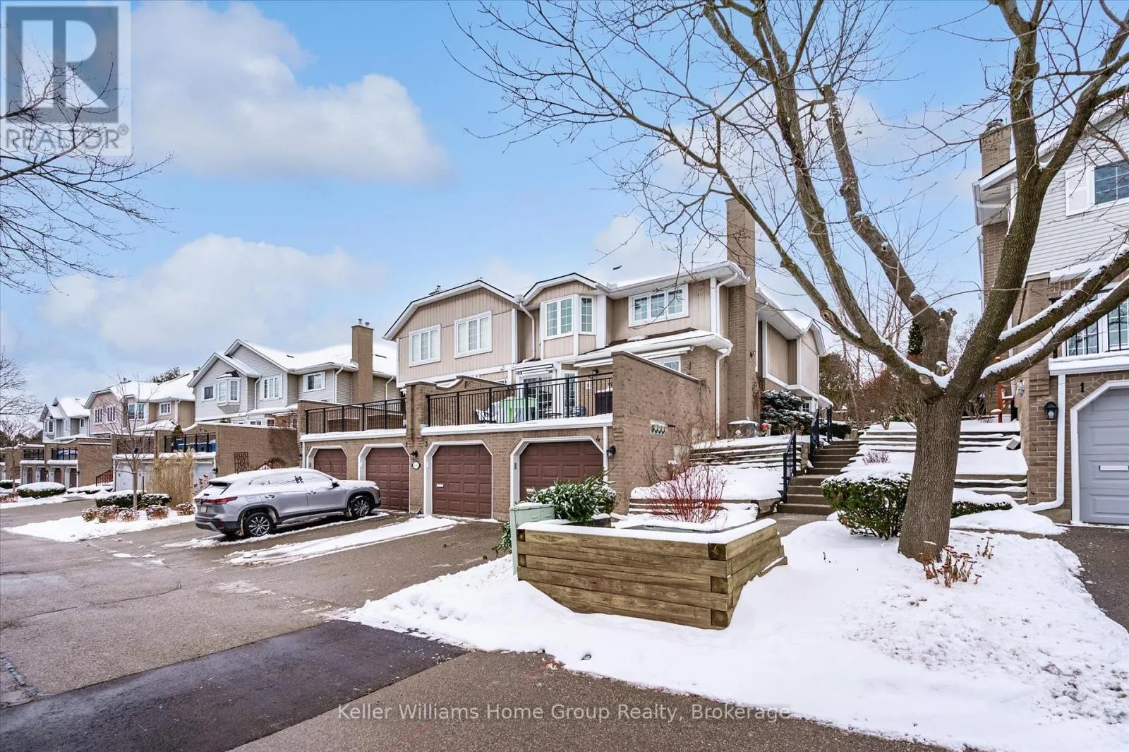 Cross Streets: Woolwich and Woodlawn. ** Directions: Woolwich & Woodlawn Rd E. Bright, Spacious & Perfectly Located - Welcome to River Ridge Living in Guelphs North End. This beautifully updated condo offers the comfort of a freehold feel with the low-maintenance lifestyle of condo living all set in one of Guelphs most peaceful and amenity-rich communities. Inside, the sun-filled main level features gleaming hardwood floors and an inviting living room with a custom gas fireplace. The dining area, enhanced by full-length built-in cabinetry, is perfect for hosting or displaying your favorite pieces with style. The kitchen offers a clean, modern aesthetic with white cabinetry, a breakfast peninsula, built-in microwave, and ample storage. Step outside to your oversized private terrace, a true extension of your living space, featuring two retractable awnings ideal for shaded afternoon lounging or summer evening BBQs. Upstairs, the spacious primary bedroom boasts hardwood flooring, a charming bay window, walk-in closet, and semi-ensuite access to the main bathroom. The finished basement expands your living options with a versatile rec room, dedicated office nook, 3-piece bathroom, laundry area, and direct access to the garage a practical bonus during wet weather. What truly sets this home apart is its access to River Ridges outstanding outdoor amenities: enjoy a refreshing swim in the private residents pool, challenge your friends to a game on the tennis or pickleball courts, or step outside your door to explore some of the city's most scenic riverside trails and parks, just minutes away. Close to Riverside Park, a historic golf course, local shops, dining, and transit this is not just a home, its a lifestyle. (id:27476)