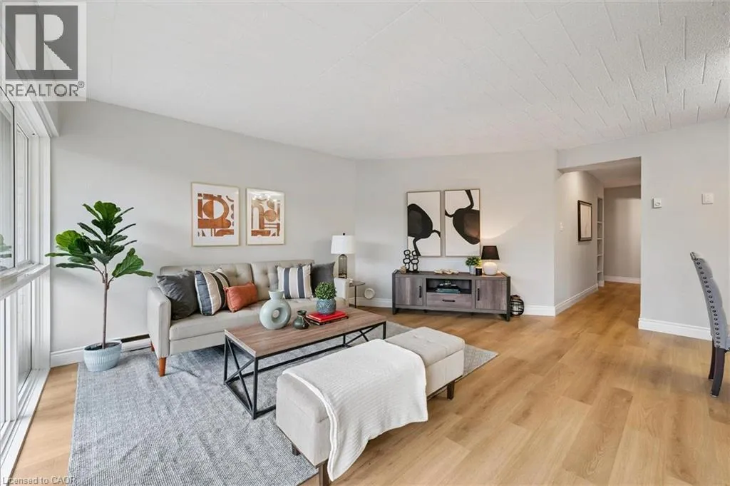 College Ave W Welcome to 102-105 Conroy Crescent, a bright, NEWLY RENOVATED, 2-bedroom condo backing onto peaceful green space and scenic trails that lead to the river! With a completely refreshed interior and a location surrounded by everyday conveniences, this home offers unbeatable value for first-time buyers, investors and downsizers alike. Step inside and youâll immediately notice the brand-new flooring and the tastefully renovated kitchen, featuring crisp white shaker cabinetry, butcher-block countertops, subway tile backsplash, modern black hardware and a sleek black sink. The thoughtful addition of open shelving and in-suite laundry makes this kitchen as functional as it is stylish. The spacious living and dining area is flooded with natural light from a full wall of windows. Freshly updated with neutral wide-plank flooring, this open-concept space is perfect for both relaxing and entertaining. Sliding doors lead to your large private balcony overlooking greenery-an ideal spot for your morning coffee or unwinding at the end of the day. The generously sized primary bedroom offers plenty of room for a king-size bed, while the second bedroom is perfect for guests, a home office or a roommate. A modern 4-piece bathroom completes the unit with updated vanity, fixtures and finishes. This condo includes an oversized parking spot located right next to the back building entrance, plus a convenient storage locker. The unit is situated on the main floor in a building with no elevator, making grocery trips and daily access a breeze. Just steps away is a bus stop with a direct route to the University of Guelph. Youâre also minutes from Stone Road Mall, LCBO, Shoppers, restaurants, banks, Dovercliffe Park and quick access to the Hanlon Parkwayâperfect for commuters. Freshly renovated, move-in ready and set in a peaceful yet central locationâthis is an opportunity you wonât want to miss! (id:27476)