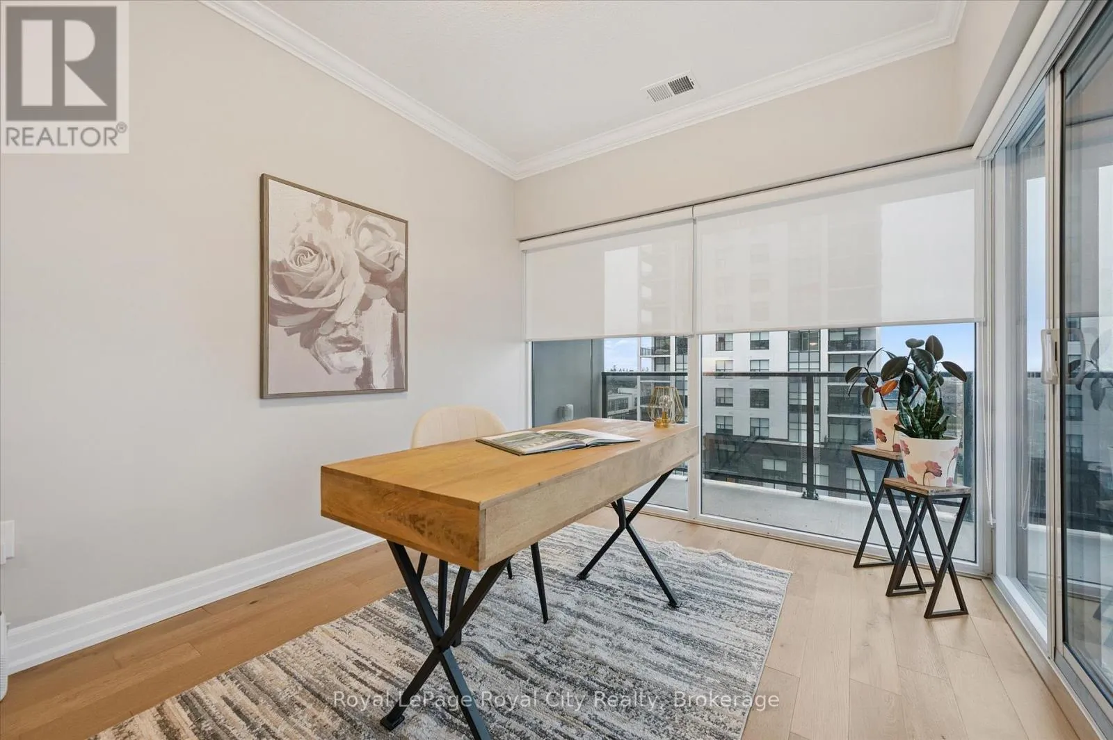 Cross Streets: Gordon St and Clair Rd W. ** Directions: Gordon St to Clair Rd W. Situated in the prestigious Gordon Square Towers, Suite 505 is an exceptional executive 2 bedroom + den corner residence that is a show stopper! Designed for those who value elevated living, this luxurious condominium showcases floor-to-ceiling windows framing breathtaking views from every room, flooding the space with natural light and highlighting the soaring ceilings and rich engineered hardwood . The beautifully appointed kitchen flows effortlessly into the open-concept living area, creating a refined yet comfortable setting ideal for entertaining, working from home, or simply unwinding at the end of the day. The expansive primary suite offers a peaceful retreat with a gorgeous ensuite, while the versatile den provides flexibility as a home office, guest space, or media room. Perfectly suited for professionals, down sizers seeking turnkey luxury, or executive buyers craving low-maintenance living without compromise. Residents of 1800 Gordon enjoy an unmatched lifestyle with thoughtfully curated amenities including a fitness centre, golf simulator, and an impressive SkyLounge with billiards and a wet bar, plus a lovely guest suite, all designed to extend living beyond the suite itself. Set in South Guelph's most sought-after, amenity-rich neighbourhood, this remarkable residence offers a rare blend of sophistication, convenience, and community - a truly elevated way of life. (id:27476)