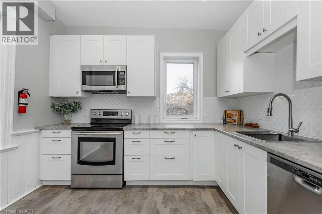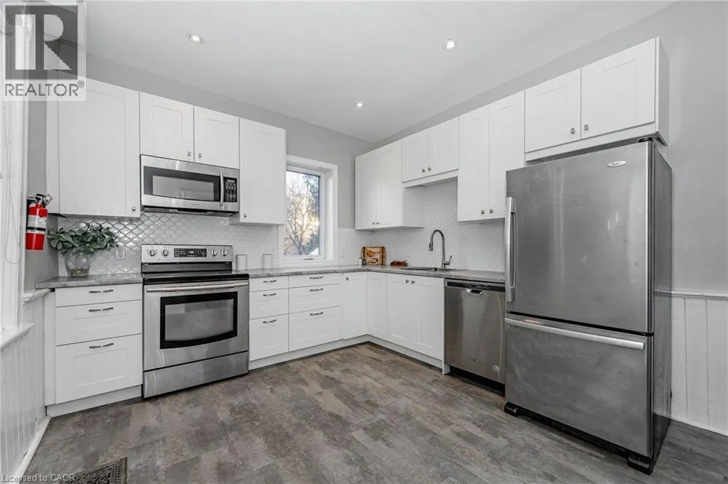 Wyndham St S Welcome to 103 Surrey St E, beautifully renovated century home nestled in one of Guelph's most desirable locations, short stroll from vibrant downtown! This 3-bdrm property offers excellent upside W/the potential to add a 4th bdrm, making it especially attractive for student housing, rental investors or parents purchasing for their students. Positioned within walking distance to downtown, GO Train & University, the home sits in a high-demand rental corridor consistently sought after by students & young professionals. With student rents on the rise, prices having adjusted-rare opportunity to own a semi-detached home under $500,000, lower interest rates & City of Guelph loosening restrictions, this represents one of the most favourable markets in recent years for student rentals & an excellent time to act. Upon entry you're greeted by bright & airy living room featuring solid hardwood floors & multiple windows. The living room flows effortlessly into spacious dining room ideal for hosting family gatherings or dinner parties with friends. Eat-in kitchen is a showstopper with fresh white cabinetry, beautiful backsplash & S/S appliances. Charming wainscoting adds character & direct access to the deck makes outdoor entertaining a breezeâperfect for BBQs with friends & family. Upstairs you'll find 3 spacious bdrms all with hardwood floors, high baseboards & large windows. Modern 3pc bath features sleek vanity & convenient stackable laundry. With room to add a 4th bdrm & zoning that allows for future possibilities, this home offers incredible flexibility! Property also includes detached garage at the back, perfect for add'l storage & parking. Home has been mechanically updated: newer furnace, wiring, windows & plumbing along with cosmetic upgrades such as the kitchen, bathroom & flooring. This property's location is unbeatable: walking distance to restaurants, boutiques, nightlife & more! Local gems like Sugo on Surrey & Zen Gardens are at your doorstep! Being sold as is. (id:27476)