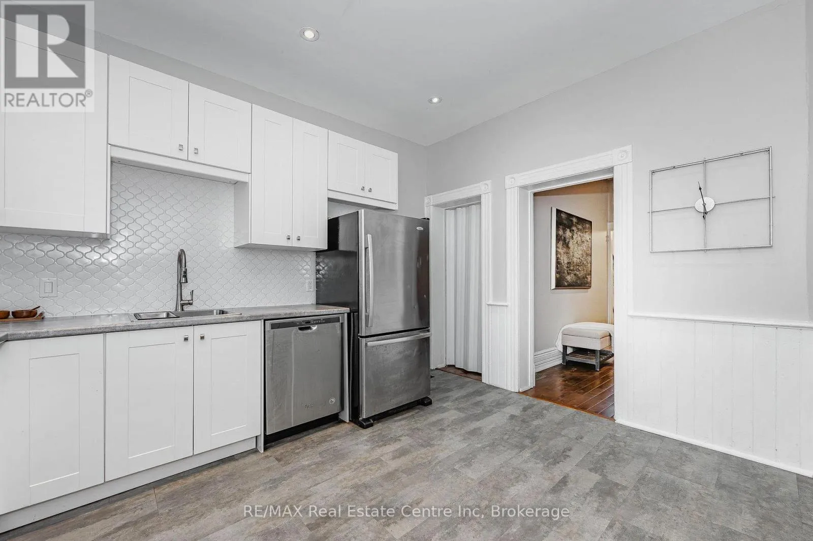 Wyndham St S Welcome to 103 Surrey St E, beautifully renovated century home nestled in one of Guelph's most desirable locations, short stroll from vibrant downtown! This 3-bdrm property offers excellent upside W/the potential to add a 4th bdrm, making it especially attractive for student housing, rental investors or parents purchasing for their students. Positioned within walking distance to downtown, GO Train & University, the home sits in a high-demand rental corridor consistently sought after by students & young professionals. With student rents on the rise, prices having adjusted-rare opportunity to own a semi-detached home under $500,000, lower interest rates & City of Guelph loosening restrictions, this represents one of the most favourable markets in recent years for student rentals & an excellent time to act. Upon entry you're greeted by bright & airy living room featuring solid hardwood floors & multiple windows. The living room flows effortlessly into spacious dining room ideal for hosting family gatherings or dinner parties with friends. Eat-in kitchen is a showstopper with fresh white cabinetry, beautiful backsplash & S/S appliances. Charming wainscoting adds character & direct access to the deck makes outdoor entertaining a breeze-perfect for BBQs with friends & family. Upstairs you'll find 3 spacious bdrms all with hardwood floors, high baseboards & large windows. Modern 3pc bath features sleek vanity & convenient stackable laundry. With room to add a 4th bdrm & zoning that allows for future possibilities, this home offers incredible flexibility! Property also includes detached garage at the back, perfect for add'l storage & parking. Home has been mechanically updated: newer furnace, wiring, windows & plumbing along with cosmetic upgrades such as the kitchen, bathroom & flooring. This property's location is unbeatable: walking distance to restaurants, boutiques, nightlife & more! Local gems like Sugo on Surrey & Zen Gardens are at your doorstep! Being sold as is. (id:27476)