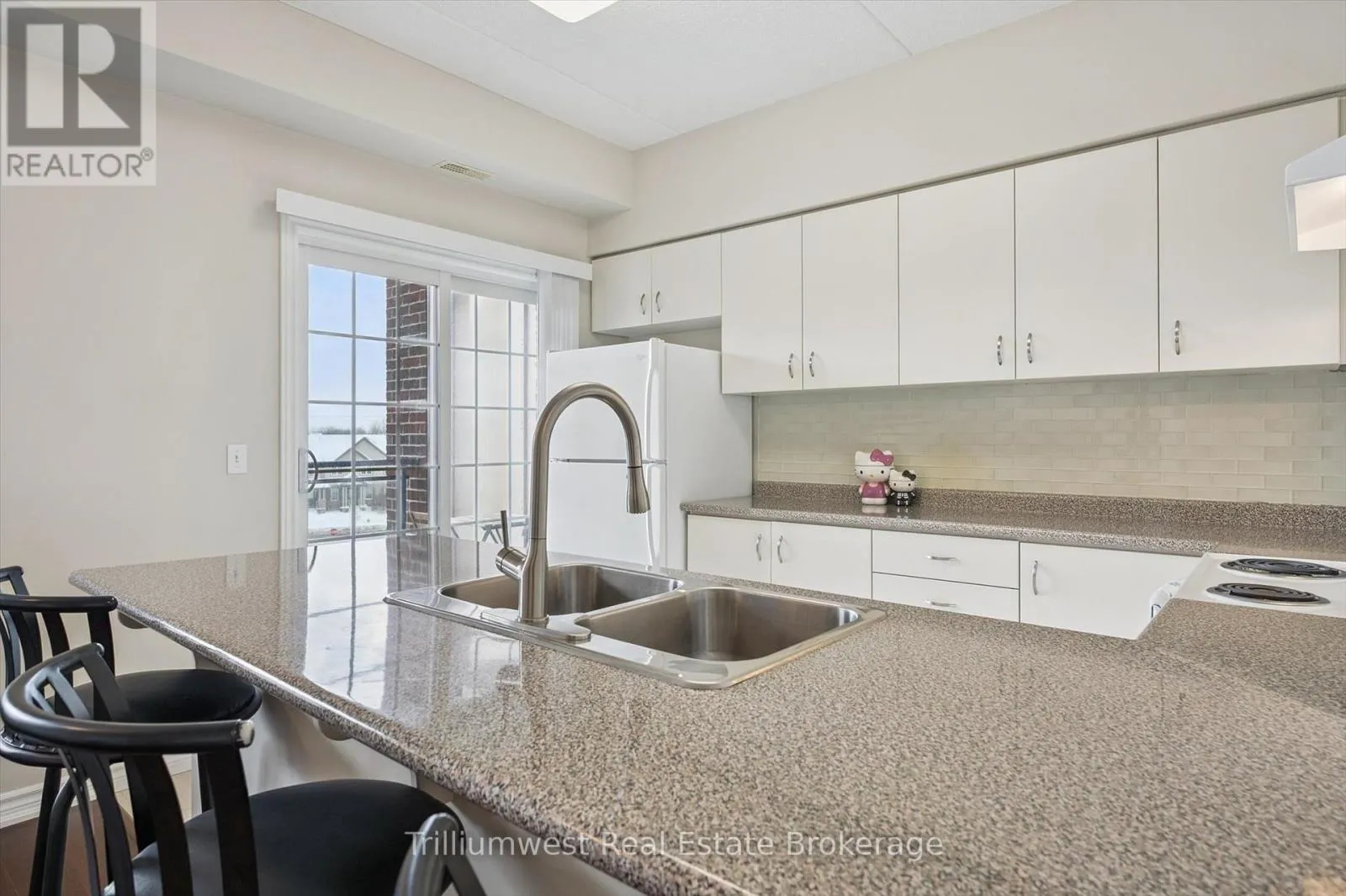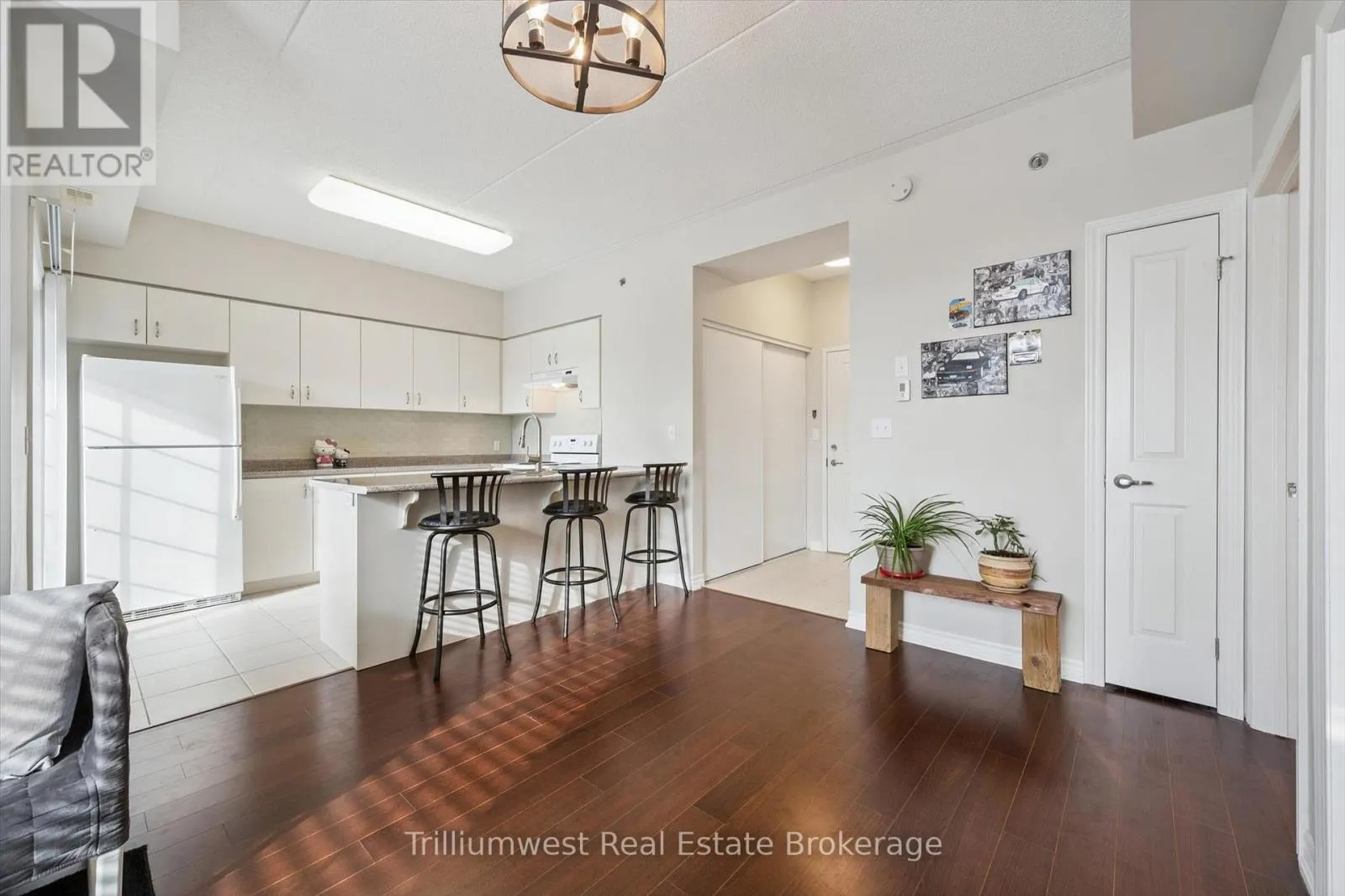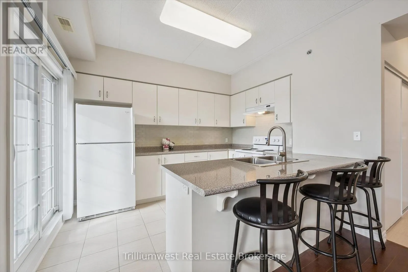 Cross Streets: Gordon/Arkell. ** Directions: East. Located in the popular Grandview building in Guelph's South End, this well-appointed 1-bedroom condo offers 9' ceilings, a breakfast bar, and plenty of cupboard space for easy everyday living. Enjoy the convenience of in-suite laundry and a storage locker right on the same floor, plus a covered west-facing patio for relaxing at the end of the day. Perfect for a student, bachelor, or couple, this home is on a direct bus route to the University and Downtown, and close to trails, parks, and all the shopping and dining options near Clair Rd and Gordon St. (id:27476)