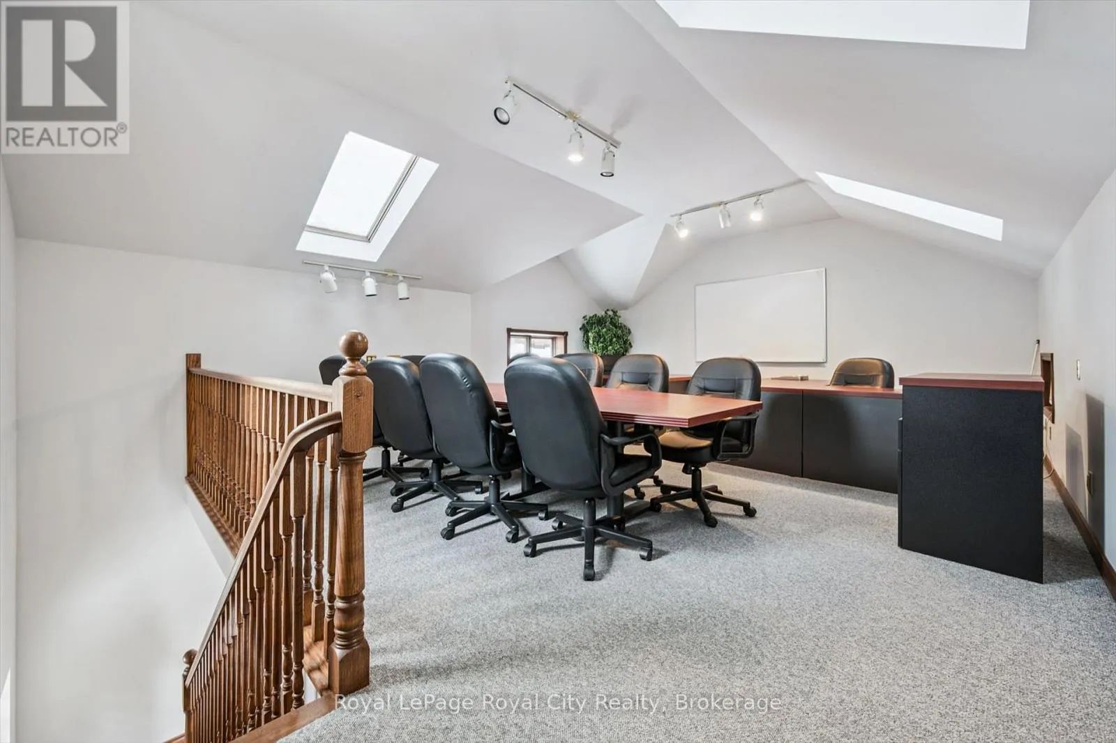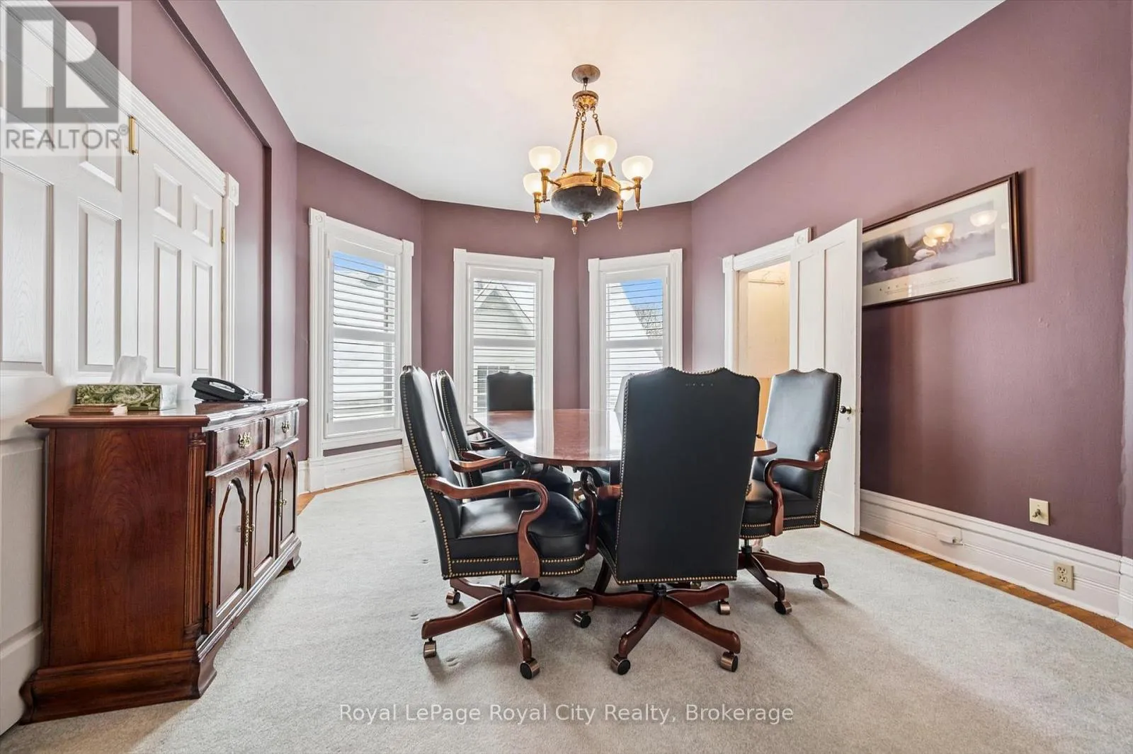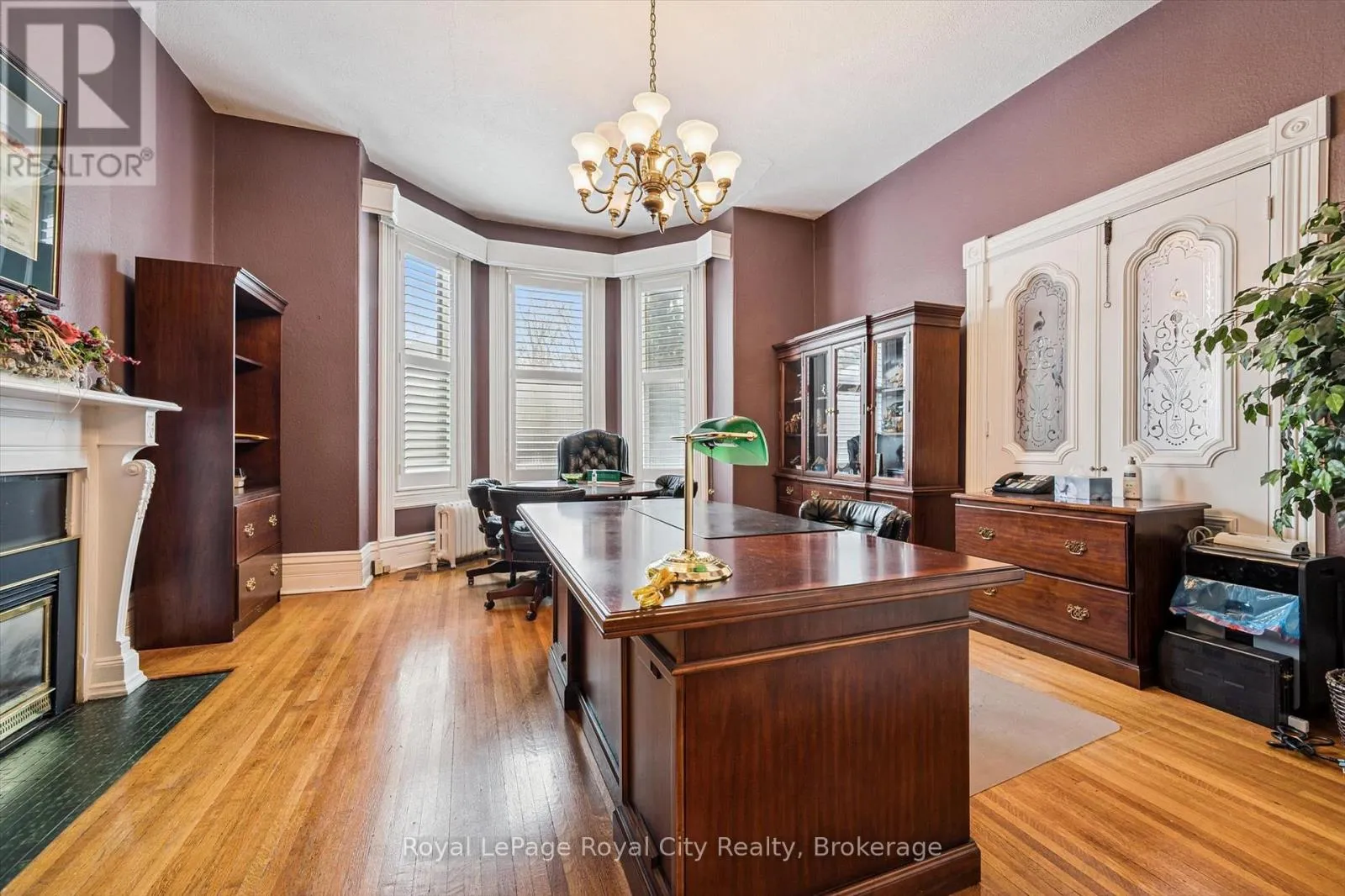 Cross Streets: Norfolk and Liverpool. ** Directions: Oxford St. and Liverpool St. 143 Norfolk Street is a truly iconic downtown Guelph property, offering a rare blend of historic charm and exceptional versatility. Zoned D2 (Specialized Downtown), this unique space opens the door to a variety of living, working, or mixed-use opportunities, perfect for those thinking of having a residential/work space under one roof or creating something truly special. Imagine a stunning second-floor apartment, with offices, retail, or a beauty business on the main floor. With approximately 4,010 sq. ft. of finished space, plus a finished third-floor storage area and additional lower-level storage, the layout offers both scale and flexibility. Just steps from the soon-to-be-completed Guelph Central Library and Baker District redevelopment, and surrounded by the vibrancy of downtown, the location simply can't be beat. Adding even more value is a finished 600 sq. ft. coach house, complete with electrical, ideal for an additional office, studio, or potential "accessory dwelling". The interior of the main building is rich with original character, featuring a charming stained glass keyhole window, soaring ceilings, pocket doors, high baseboards, a grand sweeping staircase, and the most whimsical turret, details that make this property truly unforgettable. Outside, a pretty courtyard framed by wrought iron fencing provides a private and inviting outdoor space, a rare find in the downtown core. Distinctive, flexible, and full of history, 143 Norfolk Street is a standout opportunity in the heart of Guelph. Commercial mls# X12716492 (id:27476)