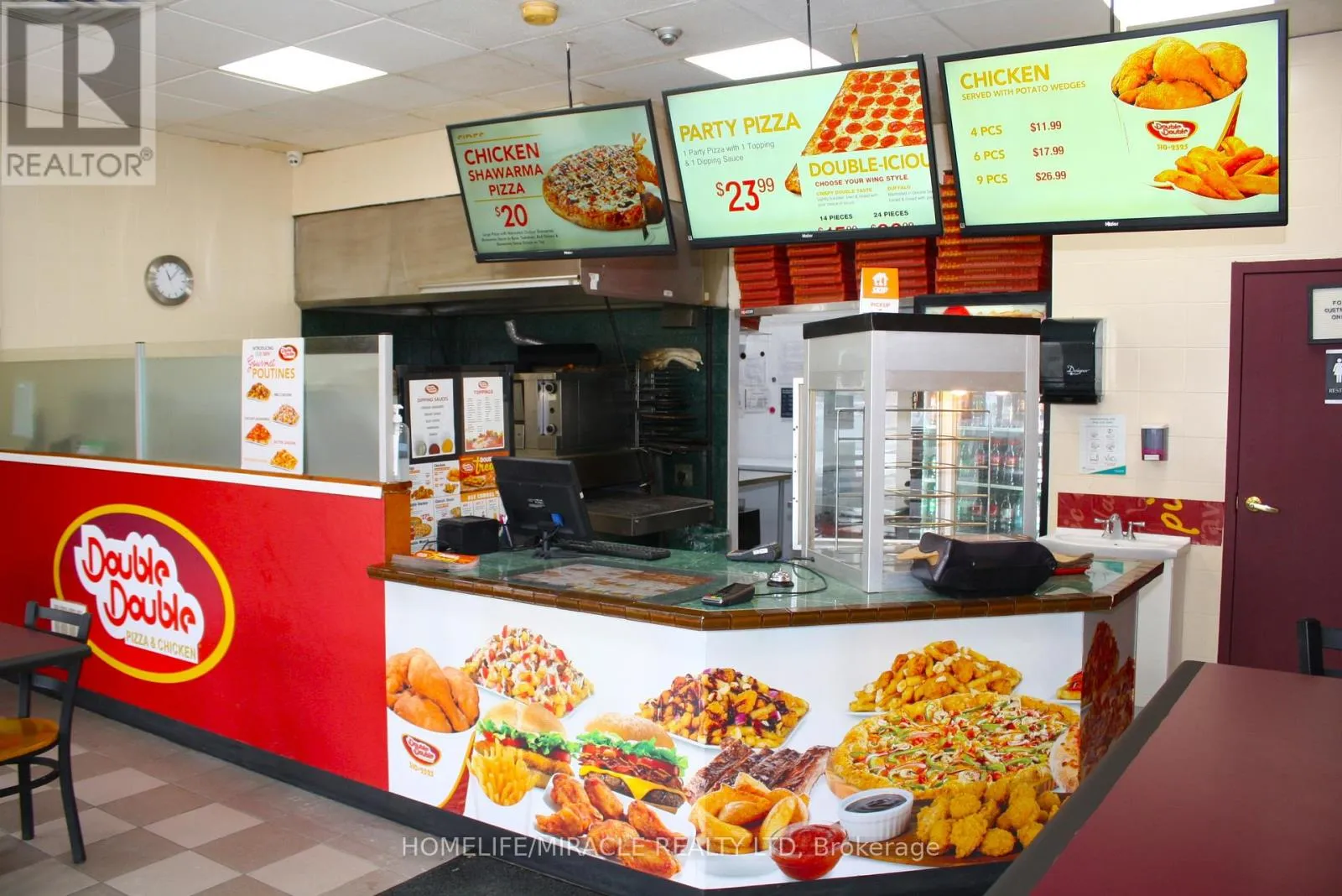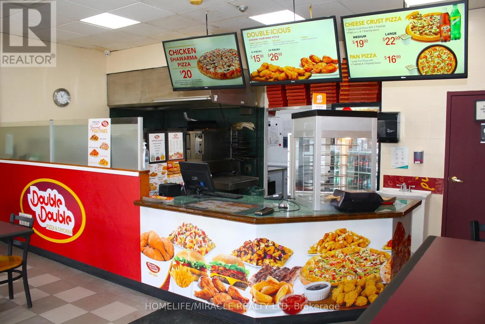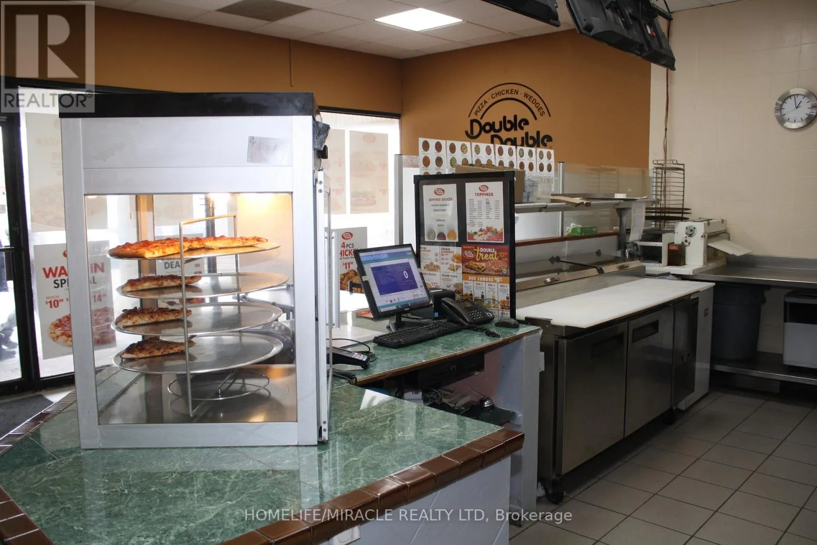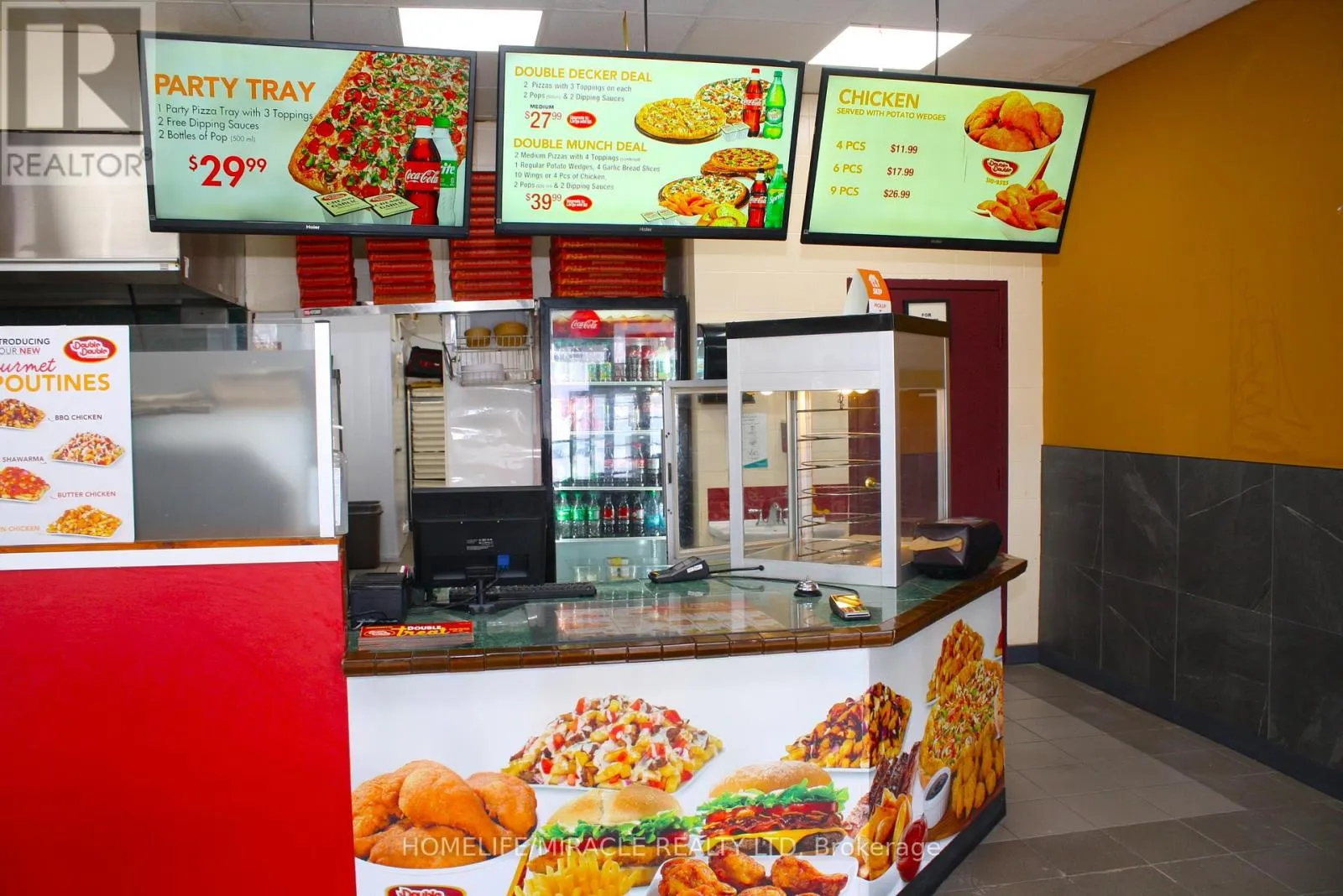 Woolwich St/Speedvale Ave Excellent turnkey franchise opportunity to own a well-established Double Double Pizza & Chicken at the busy intersection of Woolwich Street and Speedvale Avenue in Guelph. This location offers immediate possession, making it ideal for owner-operators or investors looking for a seamless transition. The business operates from a 1,121 sq. ft. space with an all-inclusive monthly rent of $3,710.45 (TMI & HST included). The current lease is secured until September 30, 2027, with the added benefit of a five-year renewal option, providing long-term stability. The franchise transfer fee is $25,000 plus tax, shared equally between buyer and seller. The only rental item is a Reliance hot water heater at $32.99 per month plus tax, keeping ongoing costs minimal. A rare opportunity to acquire a turnkey operation in a high-traffic, sought-after location. (id:27476)