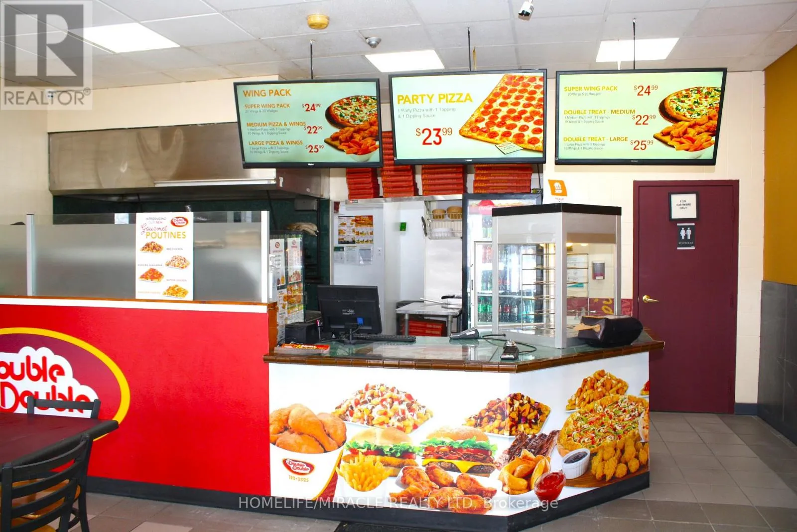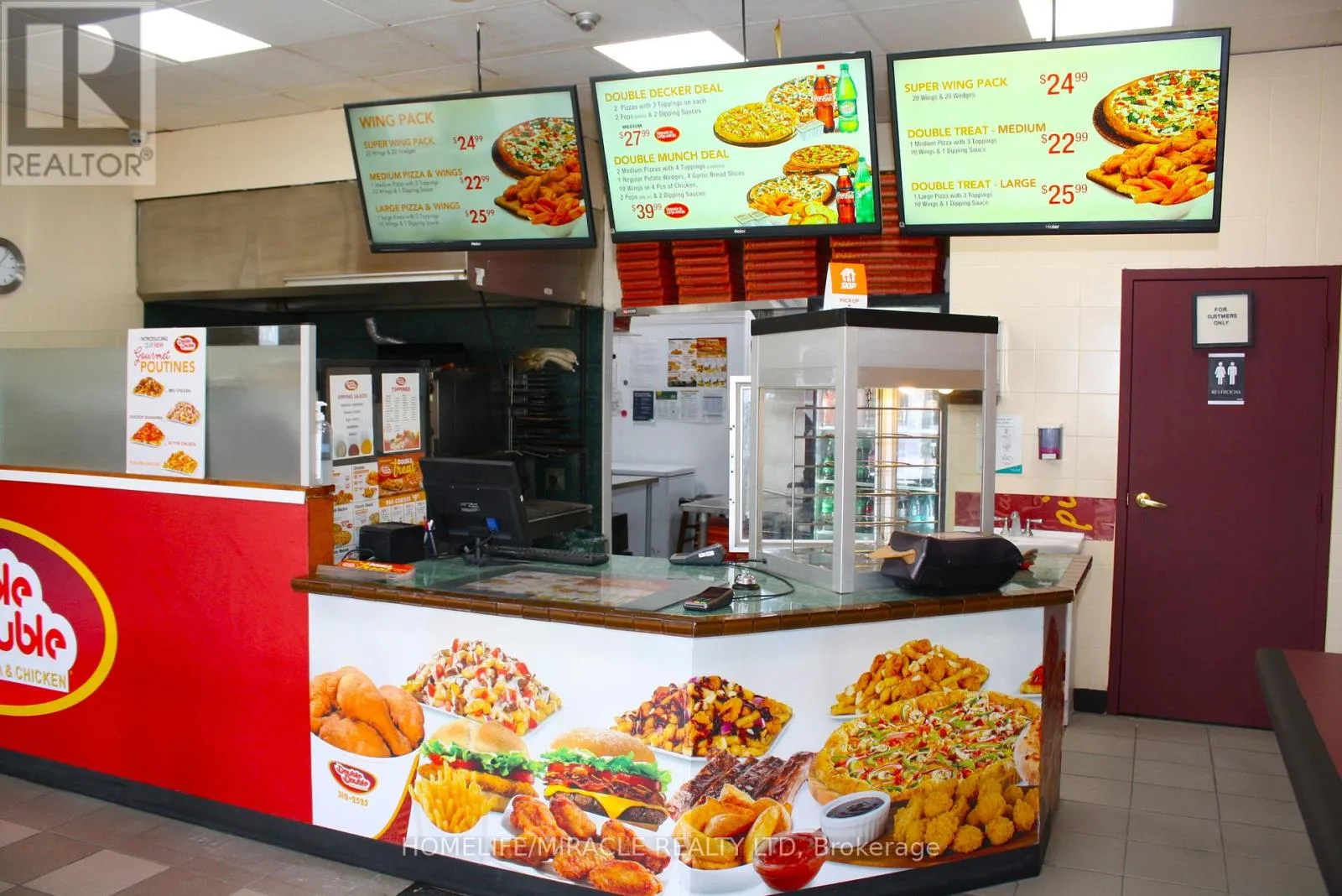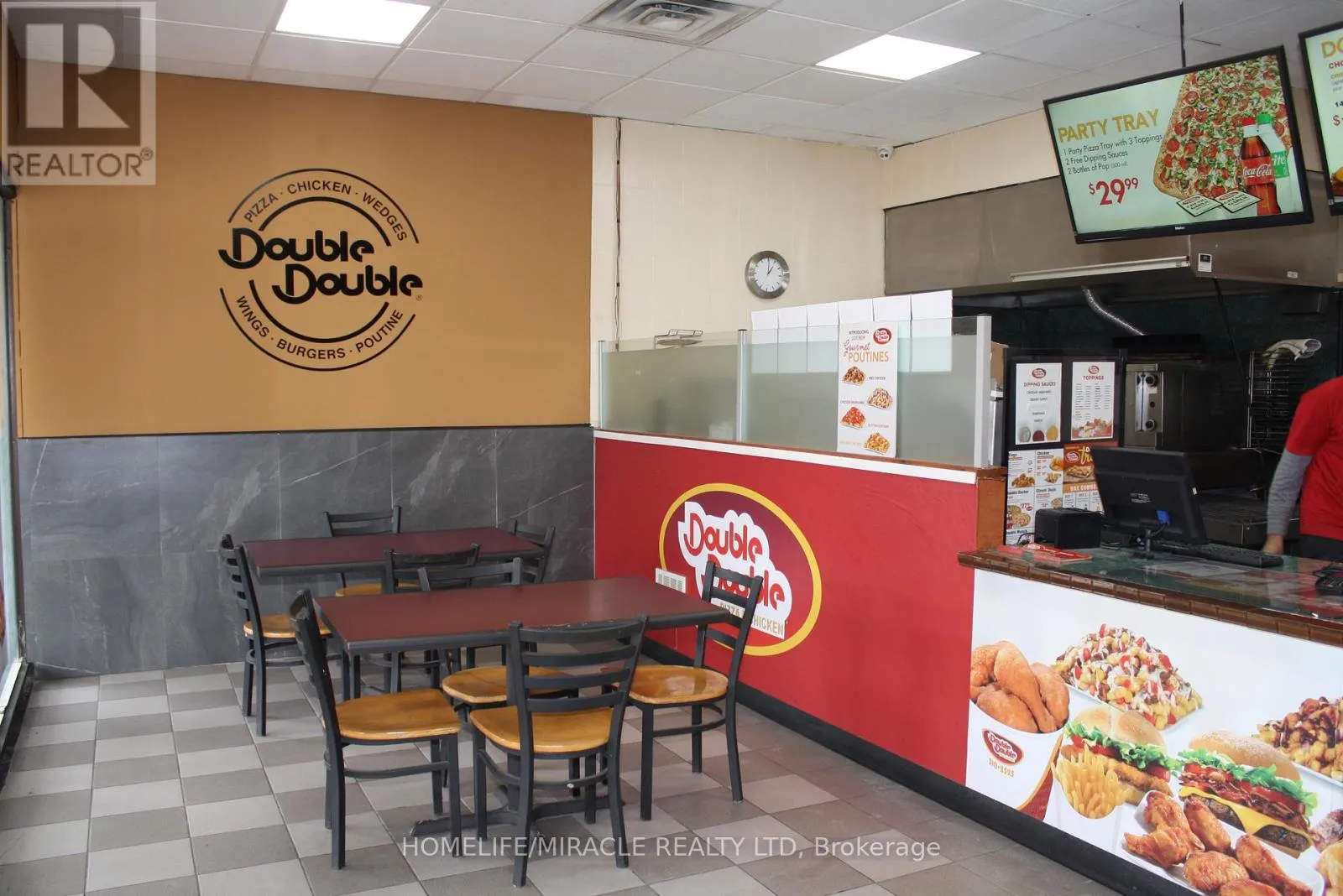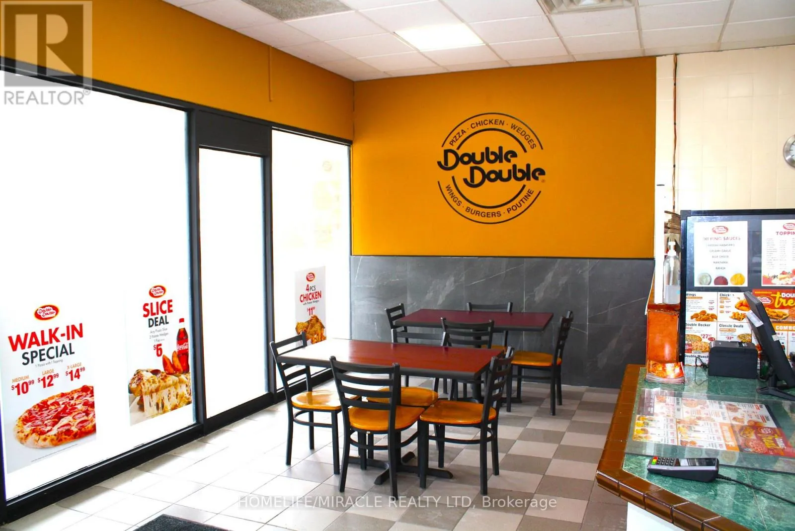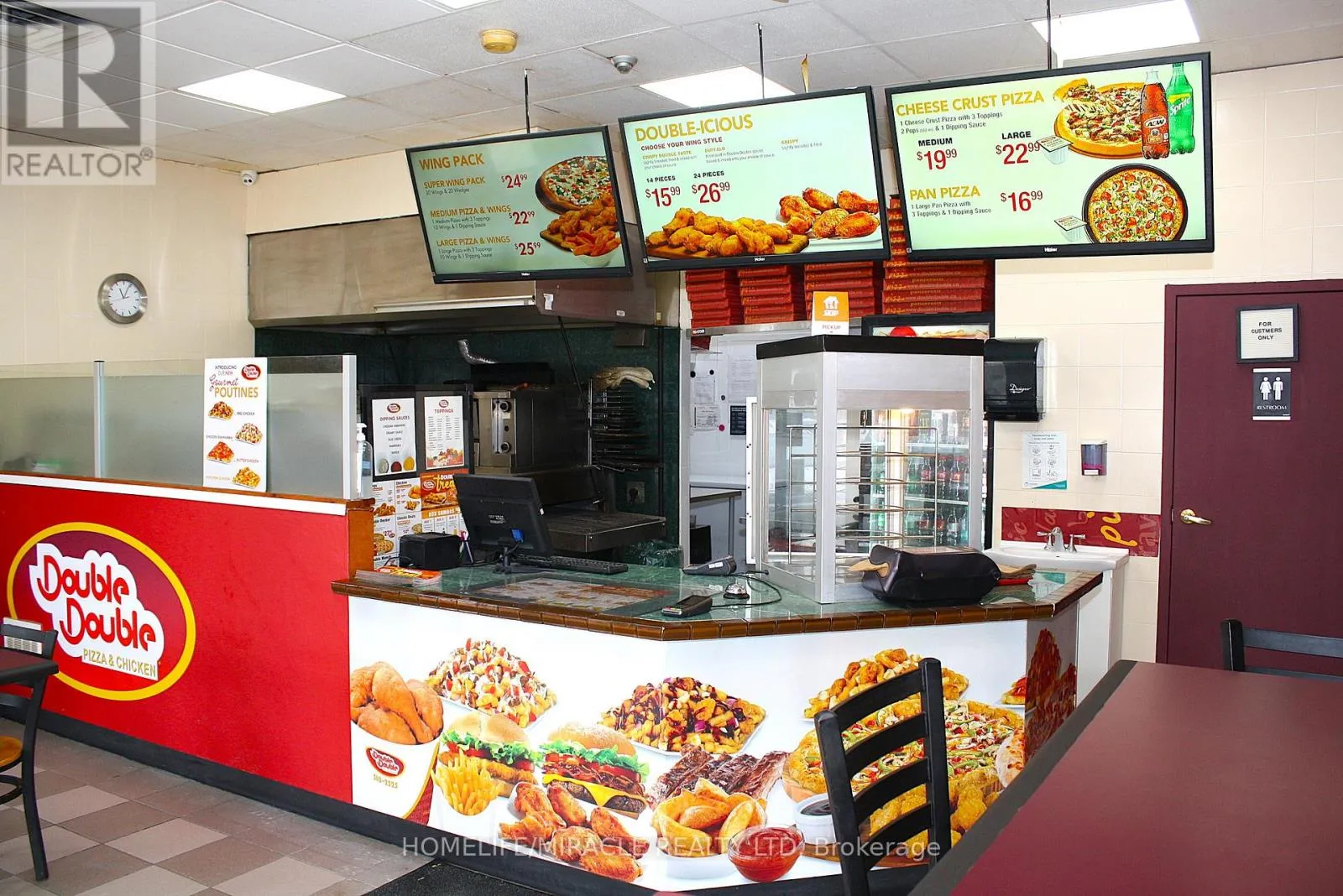 Woolwich St/Speedvale Ave Excellent turnkey franchise opportunity to own a well-established Double Double Pizza & Chicken at the busy intersection of Woolwich Street and Speedvale Avenue in Guelph. This location offers immediate possession, making it ideal for owner-operators or investors looking for a seamless transition. The business operates from a 1,121 sq. ft. space with an all-inclusive monthly rent of $3,710.45 (TMI & HST included). The current lease is secured until September 30, 2027, with the added benefit of a five-year renewal option, providing long-term stability. The franchise transfer fee is $25,000 plus tax, shared equally between buyer and seller. The only rental item is a Reliance hot water heater at $32.99 per month plus tax, keeping ongoing costs minimal. A rare opportunity to acquire a turnkey operation in a high-traffic, sought-after location. (id:27476)