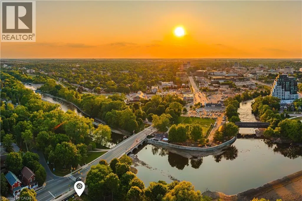 Gordon & Wellington St W *SECOND PARKING SPACE AVAILABLE* An unprecedented and exclusive luxury offering in an unparalleled location. Welcome to elevated sophistication at 180 On The River - where every day offers breathtaking views and unforgettable moments. Wake up to sunlight spilling across your rooftop terrace while sipping your morning coffee, or go for a walk along the riverfront and pop into your favourite café just around the corner. Life here flows with ease, whether working from home in your spacious, light-filled interior or heading just minutes into the heart of downtown. Step into over 2,050sqft of refined space across four beautifully designed levels - complete with 3 spacious bedrooms, 3 luxury bathrooms, and a private elevator for effortless living. Inside, youâll find thoughtfully designed interiors featuring natural oak stairs with coordinating oak handrails, elegant 5.5 baseboards, and 2.5 casing throughout. Shaker-style doors with satin-nickel hardware and premium off-white paint create a sophisticated ambiance in every room. The open-concept kitchen is a chefâs dream, boasting Shaker-style cabinetry with extended uppers, quartz countertops, ceramic subway tile backsplash, under-cabinet lighting, generous island with breakfast bar, premium Bosch stainless-steel appliances including a 36â French door fridge, slide-in range, dishwasher and microwave. Retreat to the luxurious primary suite, complete with a walk-through closet and spa-inspired 5-pc ensuite featuring a soaker tub, double vanity, private water closet, and oversized glass shower with floor-to-ceiling tile and recessed lighting. All bathrooms offer quartz countertops and Moen fixtures. A full laundry area with washer and dryer adds everyday convenience. Nestled within the exclusive enclave of Old University, this idyllic neighbourhood epitomizes luxury living and natural beauty, offering an unparalleled lifestyle in Guelph - truly a once-in-a-lifetime opportunity. (id:27476)