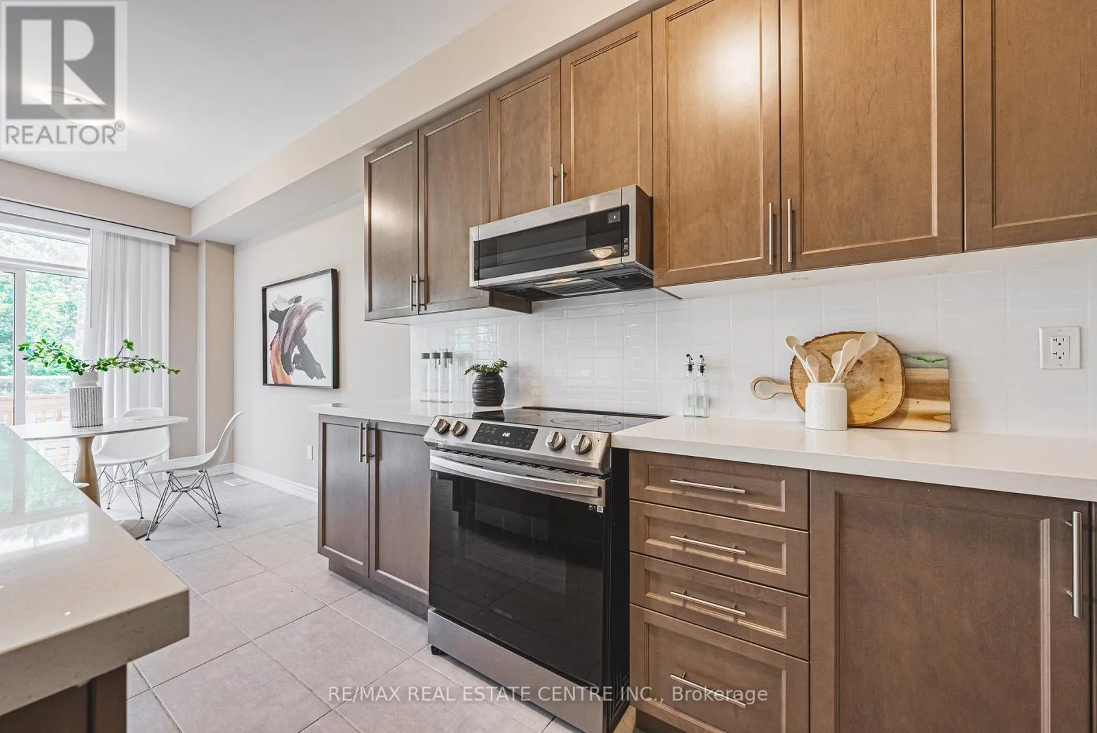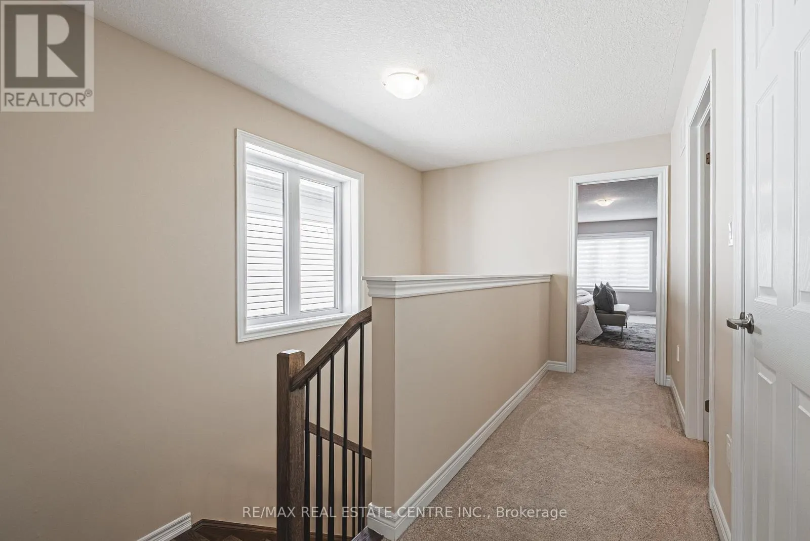 Cross Streets: Stephanie Dr/Deerpath Dr. ** Directions: Imperial Rd S to Stephanie Dr to Deerpath Dr. Welcome to this modern executive end-unit townhome in the heart of Guelph. Offering 3 bedrooms and 3 bathrooms across two well-designed levels, this home is located in a quiet, family-friendly neighbourhood and backs onto a private ravine, providing rare privacy and a tranquil setting. The main floor features hardwood flooring and a solid wood staircase. The open-concept kitchen includes quartz countertops, a centre island, stylish backsplash, and upgraded stainless steel appliances-ideal for entertaining and everyday living. Upstairs, the spacious primary bedroom offers a walk-in closet and a full ensuite. Two additional west-facing bedrooms provide generous space, double closets, and excellent natural light. Built in 2022, this home offers modern construction and energy efficiency. Convenient access to Highways 6, 7, and 401, close to top-rated schools, and minutes to University of Guelph (12 min), Conestoga College (7 min), and Centennial College (5 min). Enjoy central Guelph living without big-city congestion. Book your showing today. (id:27476)