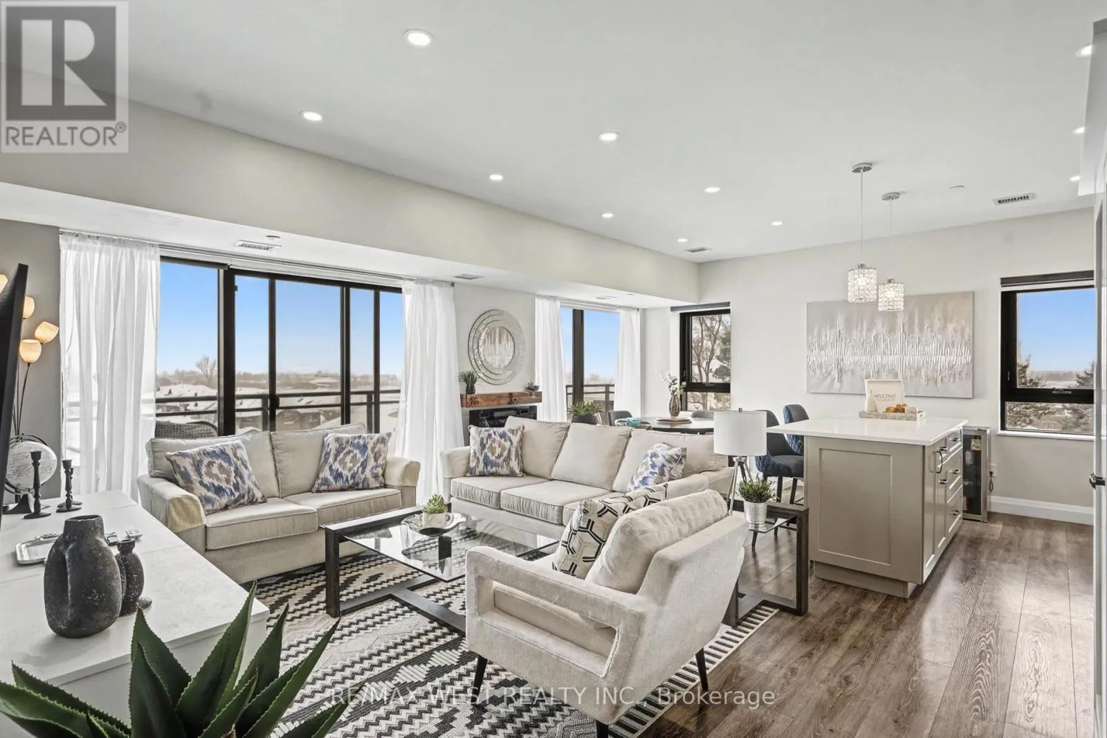 Cross Streets: Gordon Street South and Gosling Gardens. ** Directions: 401 w to Brock Rd. S. merge to Wellington 46,take 2nd exit, continue on Gordon st. Left on Gosling Gardens. Elevated Living awaits in this prestigious South Hill Condominium Complex. This luxurious 2-bedroom, 2-bath corner suite offers an exceptional blend of style, comfort, and convenience in a prime south-end location. The bright, open-concept layout features soaring ceilings, elegant pot lighting, a modern neutral palette, and sleek luxury vinyl plank flooring throughout-no carpet. The chef-inspired kitchen showcases crisp white cabinetry, quartz countertops, designer backsplash, stainless steel appliances, and a large island perfect for entertaining. Sun-filled living spaces flow seamlessly to an impressive 24-ft west-facing balcony, where you can unwind while enjoying afternoon sunshine and stunning sunset views. The spacious primary bedroom is a true retreat, complete with a spa-like 3-piece ensuite featuring quartz counters and a walk-in glass shower. A generous second bedroom, stylish 3 -piece bath, in-suite laundry, and thoughtfully designed built-in closet organizers provide both comfort and practicality. Residents enjoy resort-style amenities including a fitness centre, party room, wrap-around outdoor terrace with yoga and lounge areas, outdoor kitchen, and even a dog spa. Steps to groceries, dining, entertainment, trails, and everyday conveniences, with transit at your door and easy access to the 401. Includes one underground parking space and storage locker. (id:27476)