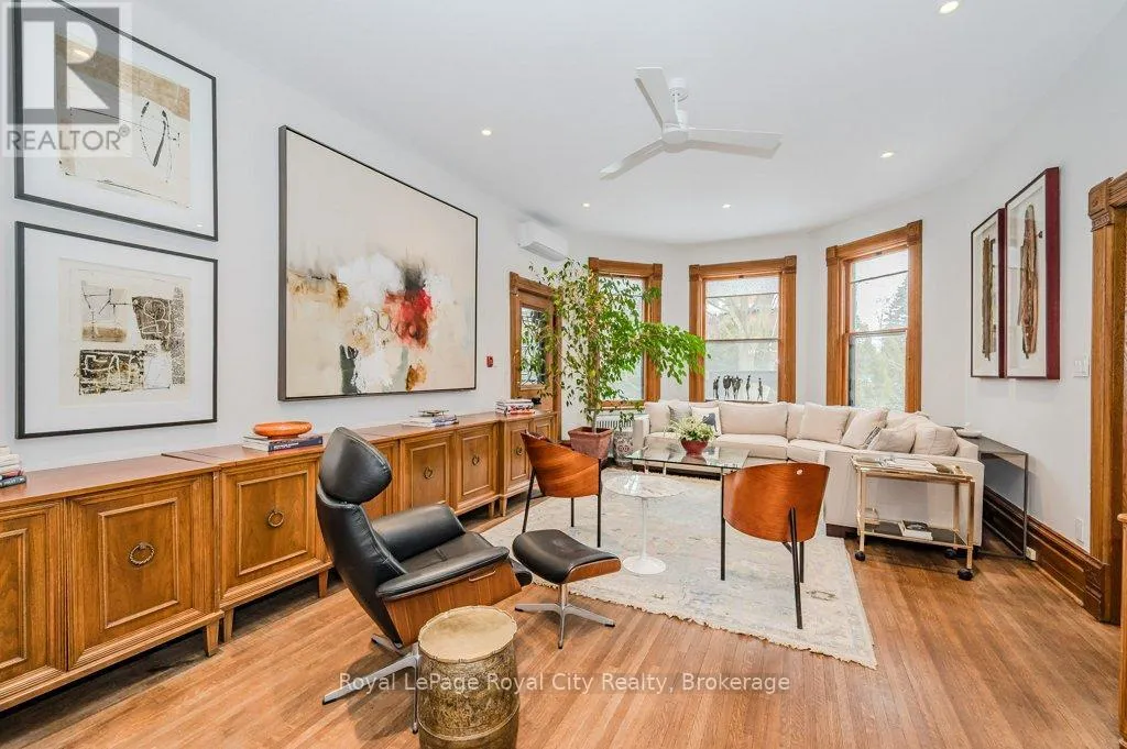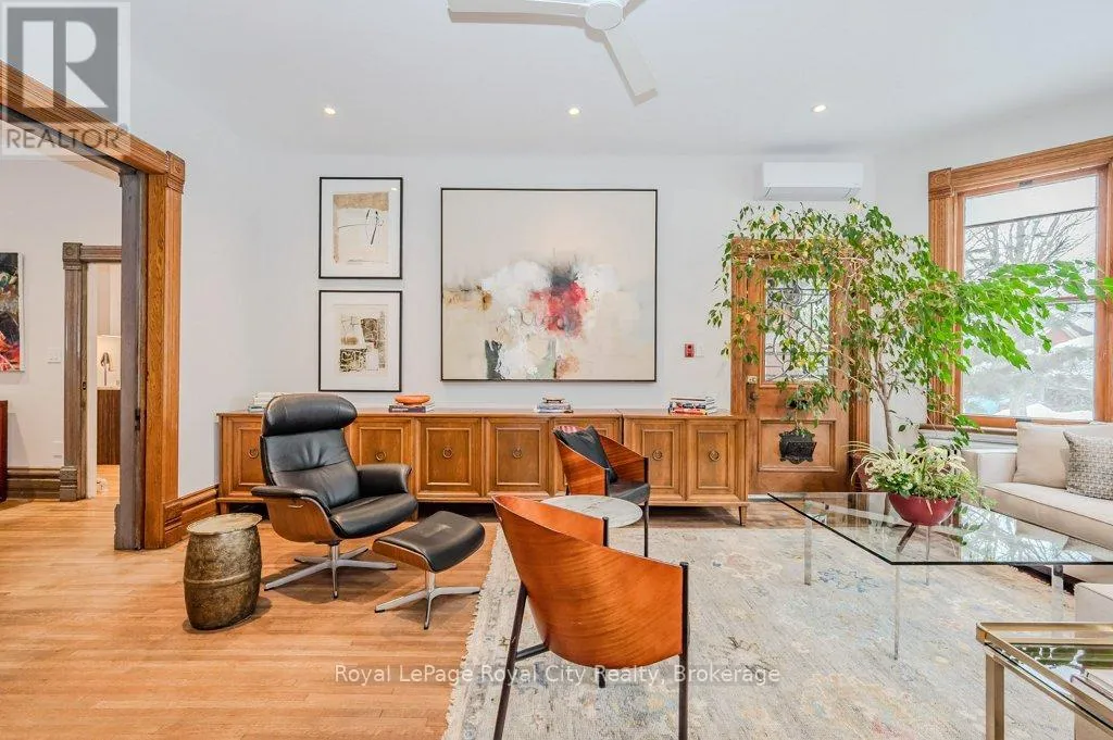 Cross Streets: Just West of London & Norfolk. ** Directions: At the corner of Park Ave. Historical Elegance Meets Modern Versatility. Imagine the possibilities: ARCHITECTURAL HISTORIC CHARM: Century Home with charming character and modern conveniences Heritage Victorian with Slate Roof Stained Glass Windows Original Burled Oak woodwork (12" oak baseboards) Covered Wrap-Around Porch PRIME LOCATION: Downtown Guelph just a 10 minute walk to shops, dining, library Across from Exhibition Park with playground, tennis and sports fields Established Quiet Prestigious Neighbourhood LIFESTYLE FUNCTIONALITY: Magnificent Family Home Spacious Multi-Generational Home Rental Opportunity for Air BnB or Bed and Breakfast Mortgage Helper Professional Work/Live Property; suitable for small office space such as legal, accounting, counselling, work at home or home based business Magnificent living space in family with fireplace or living room LIVING SPACES Chef Designer Kitchen with High End Appliances Expansive Entertainment Space 7 Bedrooms and 7 Baths Heat Pumps (9) and Radiant Heating for Supreme Comfort Private Oasis backyard with Fish Pond and Covered Pergola IMPORTANT FEATURES: Professional designed upgrades Well Maintained Parking for 7 vehicles Entire property with lush gardens serviced by irrigation system All underground wiring Solid construction with thick walls for climate and noise control (id:27476)
