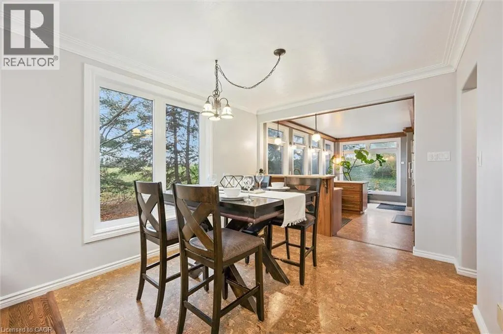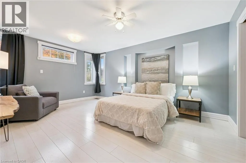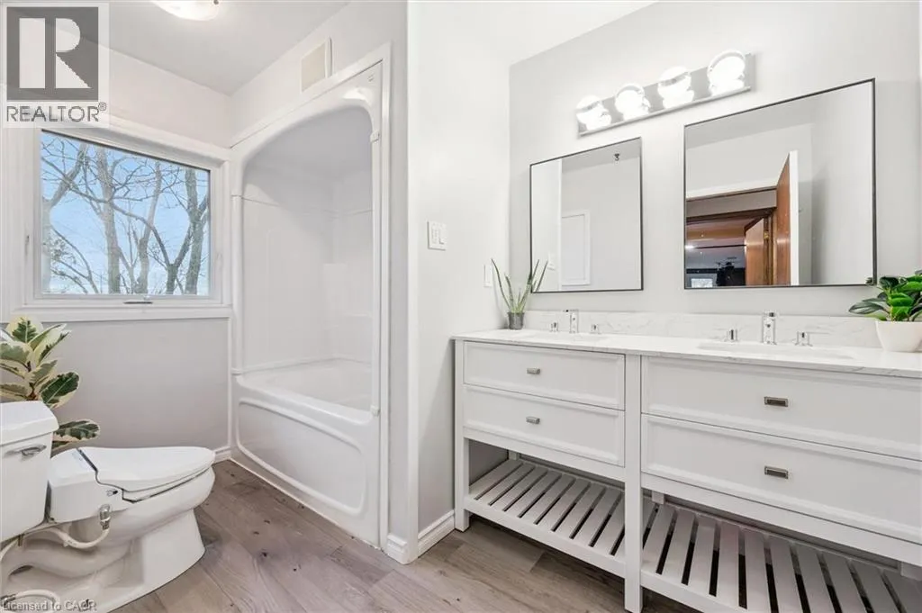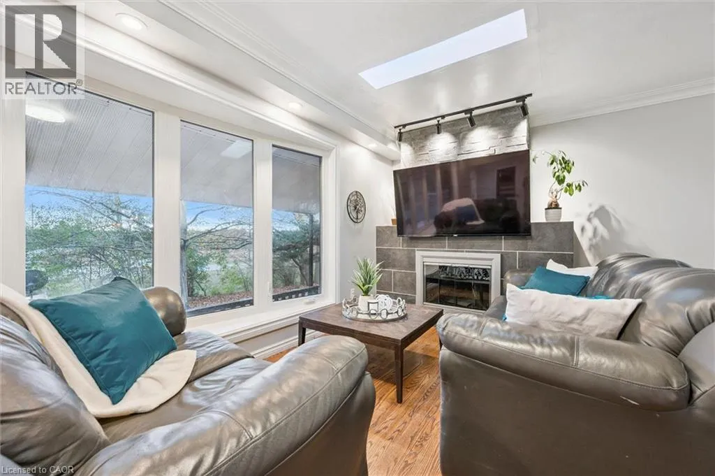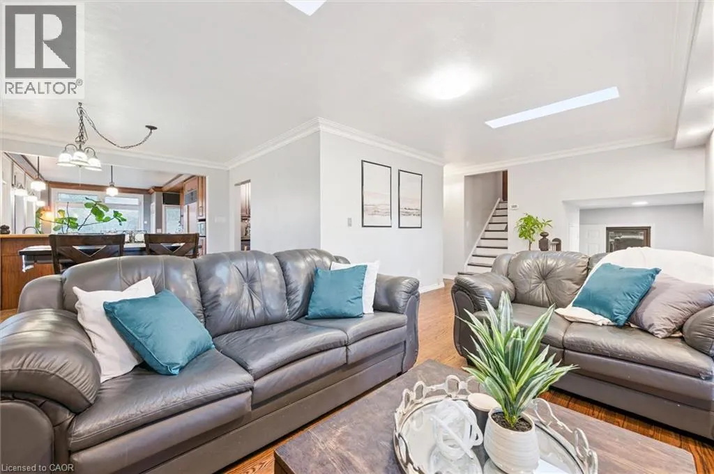 Watson/Stone Rd. Right on Corner of Stone Rd & Watson, East side of Watson 500 Watson Pkwy S is a versatile 3+1 bdrm home W/over 3100sqft of living space W/perfect layout for main floor in-law or income suite W/its own private entrance! This home offers best of both worlds: peaceful country-style living with scenic views while being mins to UofG, Stone Rd Mall, groceries, schools & trails! Ideal fit for multigenerational families, blended households or savvy buyers looking for flexible living arrangements & rental potential. Step inside to living room W/rich hardwood, picture windows & 2 skylights. Adjacent dining area W/cork flooring opens to kitchen W/panoramic windows, custom wood cabinetry, butcher block counters, farmhouse sink & sleek panel-ready fridge that blends seamlessly into the design. For entertainers & chefs the add'l prep kitchen provides storage, beverage fridge & 2nd sink-perfect for hosting holidays or everyday life. Sitting nook leads to back patio-perfect spot to enjoy morning coffee while listening to the birds. On opposite wing, 2nd living room W/fireplace & B/I bench seating sets the stage for family evenings. This wing also offers kitchenette, renovated 4pc bath W/soaker tub, W/I shower & bdrm with W/I closet-ideal for in-law suite or private guest quarters. Upstairs the primary bdrm offers large windows, private balcony & W/I closet W/custom organizers. Off the primary is flexible office space or dressing area & massive bonus room-currently set up as theatre & games room with 3-way fireplace, B/I speakers & projector system. There is another bdrm & 5pc bath W/dual sinks & tub/shower. Finished bsmt W/4th bdrm, 3pc bath, sauna & storage. Outside the large yard has multiple entertaining areas: back patio, private side deck, greenhouse & shed. With triple-wide driveway + add'l driveway thereâs more than enough room for guests, work vehicles, trailers & toys. Can easily park 10+ cars! Mins to Starkey Hill & Smith Property Loop for weekend hikes & bike rides. A warm inviting space with room to grow & space for everyone! (id:27476)