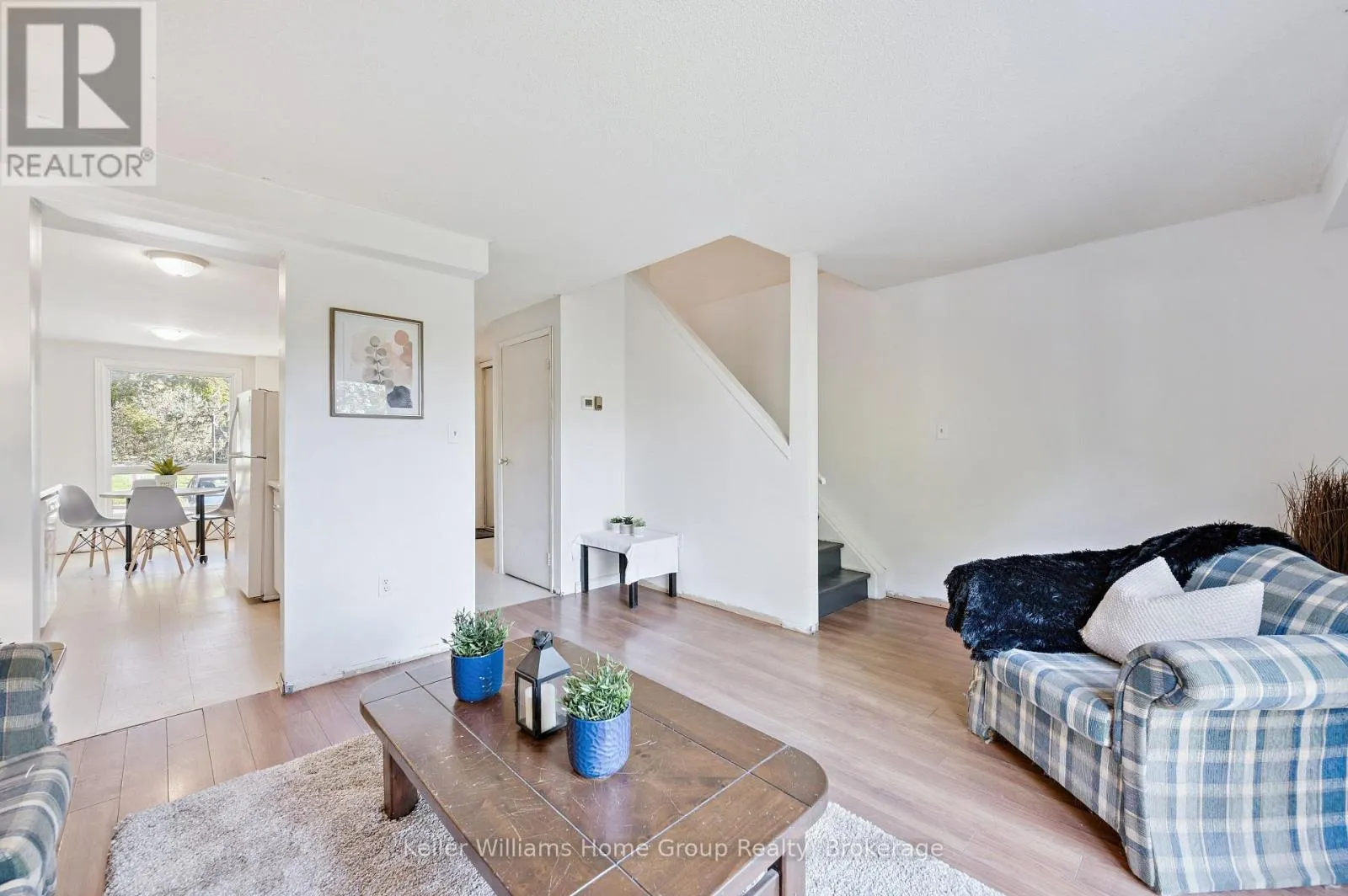 Cross Streets: Imperial Road N / Paisley Road. ** Directions: On Imperial between Willow Road & Ferman Drive. Welcome to 40 Imperial Road N Unit 39!! Located in a well-maintained complex, this freshly painted 3-bedroom, 1-bath end-unit townhome offers modern comfort and unbeatable value! The main floor features a well-laid-out design, a bright living room, and a walkout to a private, tree-lined backyard perfect for relaxing or entertaining. The kitchen offers ample counter space, with an adjoining dining area that provides a warm, welcoming flow.Upstairs, you'll find new flooring throughout and three generous bedrooms, plus a 4-piece bath. This home also features a forced-air furnace, central A/C, and an owned water heater for year-round comfort and peace of mind.Ideally located just minutes from Costco, Zehrs, West End Rec Centre, schools, parks, and transit, this end unit combines style, convenience, and a great location perfect for first-time buyers or investors alike. Lets get you in for a peek! (id:27476)