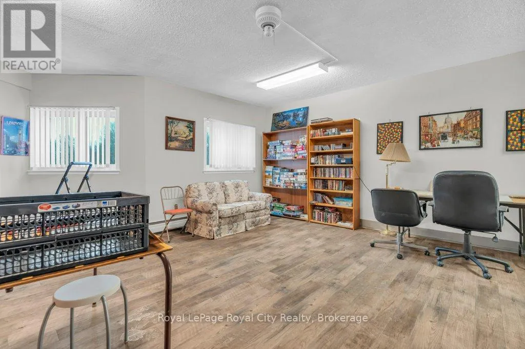 Woolwich St Welcome to 614-19 Woodlawn Rd E, a bright corner unit with peaceful views overlooking Riverside Park. Filled with natural light, this well-laid-out home offers comfortable, low-maintenance living in a highly desirable Guelph location. The well-managed building is known for its exceptional amenities that support an active and social lifestyle. Residents enjoy access to a seasonal outdoor pool, sauna, fully equipped gym, pickleball courts, library, pool room, workshop, and a large communal kitchen and gathering space-ideal for hobbies, wellness, and entertaining. Located steps from Riverside Park with its trails and green space, and close to shopping, transit, and everyday conveniences, this home offers an outstanding blend of lifestyle, community, and location. (id:27476)
