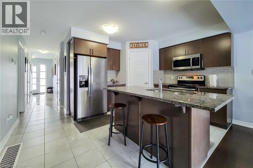 Gordan & Poppy Welcome to this modern 3-bedroom, 3.5-bath condo townhouse, ideally situated on a premium lot with no backing neighbours and an upgraded backyard deck. Offering over 1,800 sq ft of finished living space, this home combines style, comfort, and everyday convenience.The open-concept main floor is perfect for entertaining, featuring a spacious Great Room, a dedicated dining area, and a walk-out to the backyard. The bright eat-in kitchen is beautifully appointed with stainless steel appliances, granite countertops, tiled backsplash, a large island with breakfast bar, and a walk-in pantry.Upstairs, the generous primary bedroom boasts dual closets and a 4-piece ensuite bath. Two additional well-sized bedrooms, a full bath, and the convenience of bedroom-level laundry complete this floor.The finished basement adds valuable living space with a comfortable recreation room and a3-piece bathroom, ideal for guests or family movie nights. Located within a well-maintained complex featuring an on-site parkette, this home is close to schools, parks, and public transit, and is within walking distance to all major amenities. A fantastic opportunity to enjoy modern townhouse living in a highly desirable location. (id:27476)