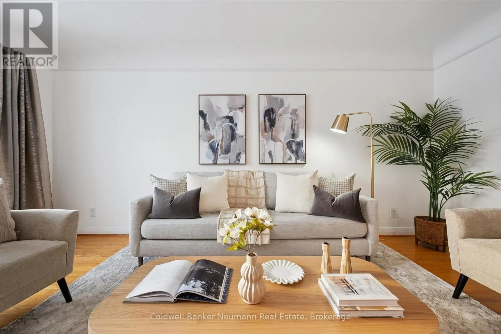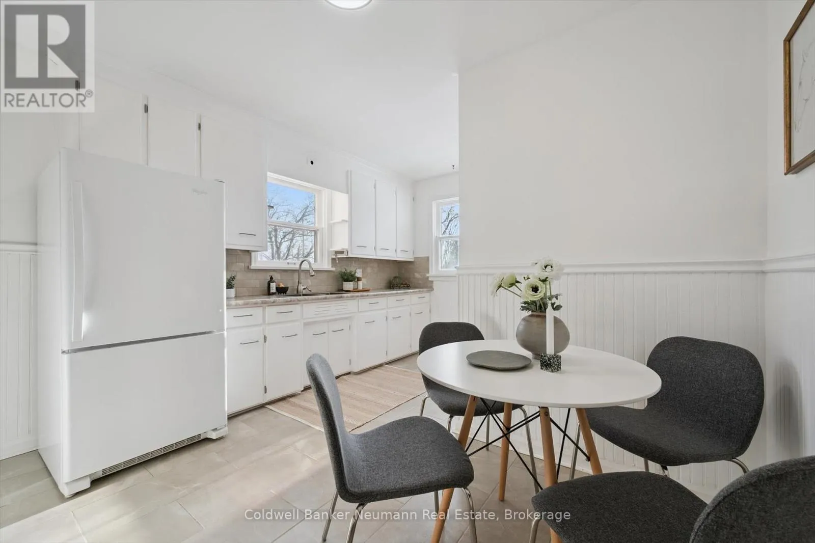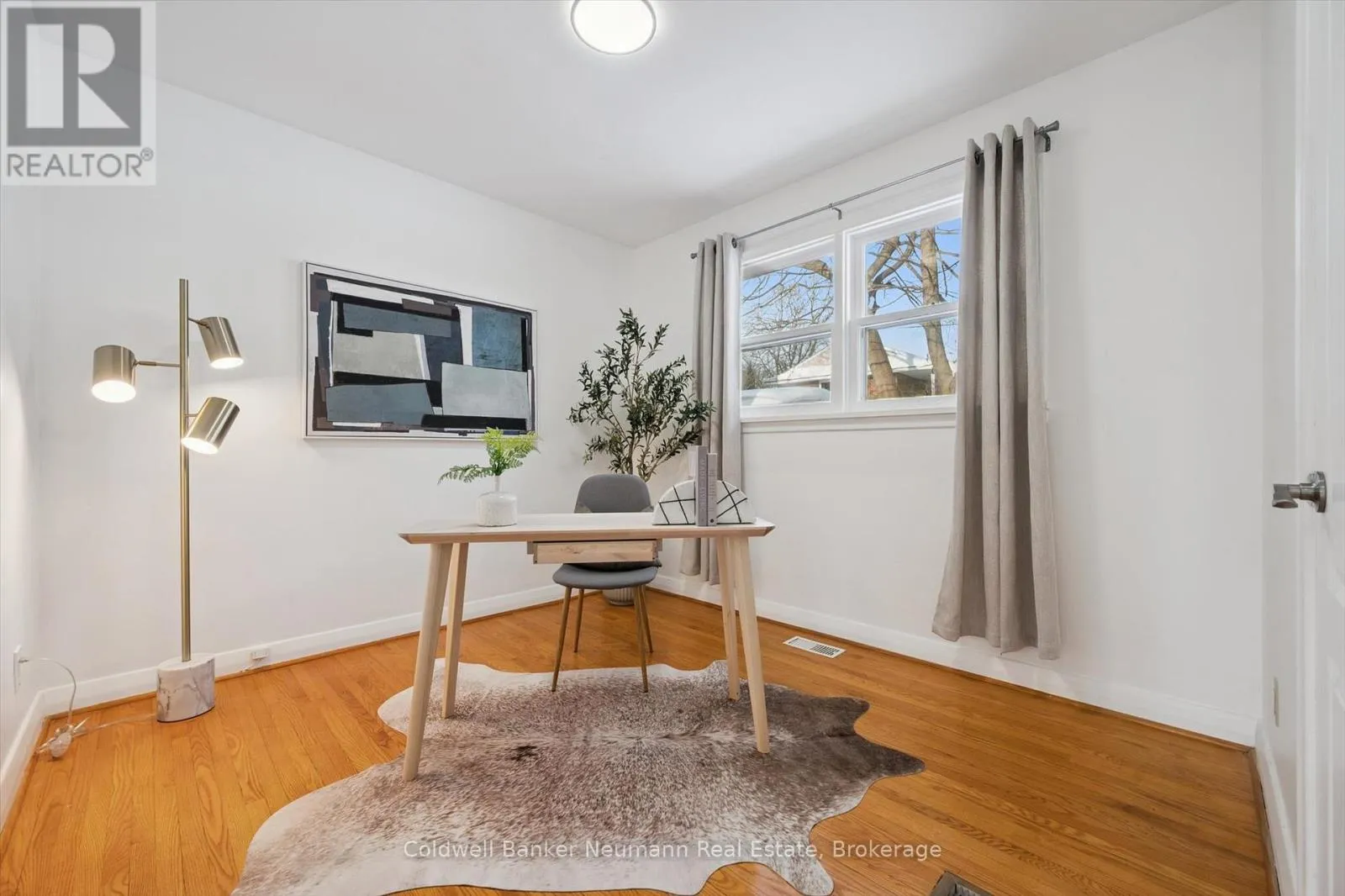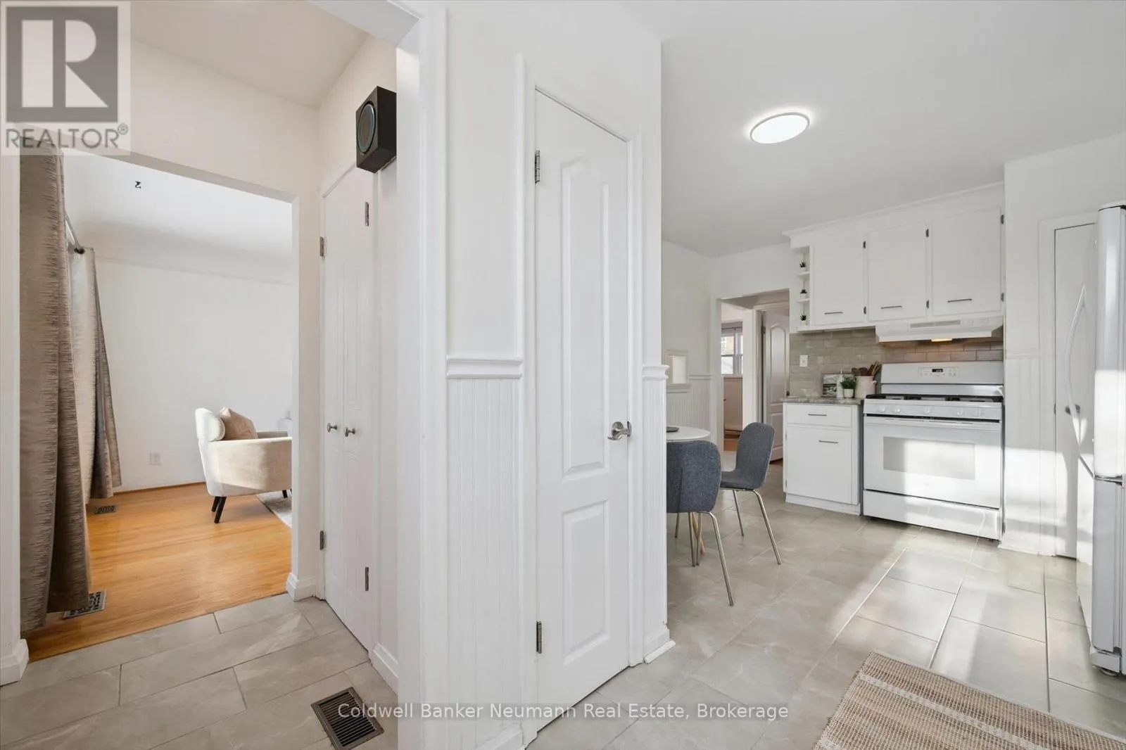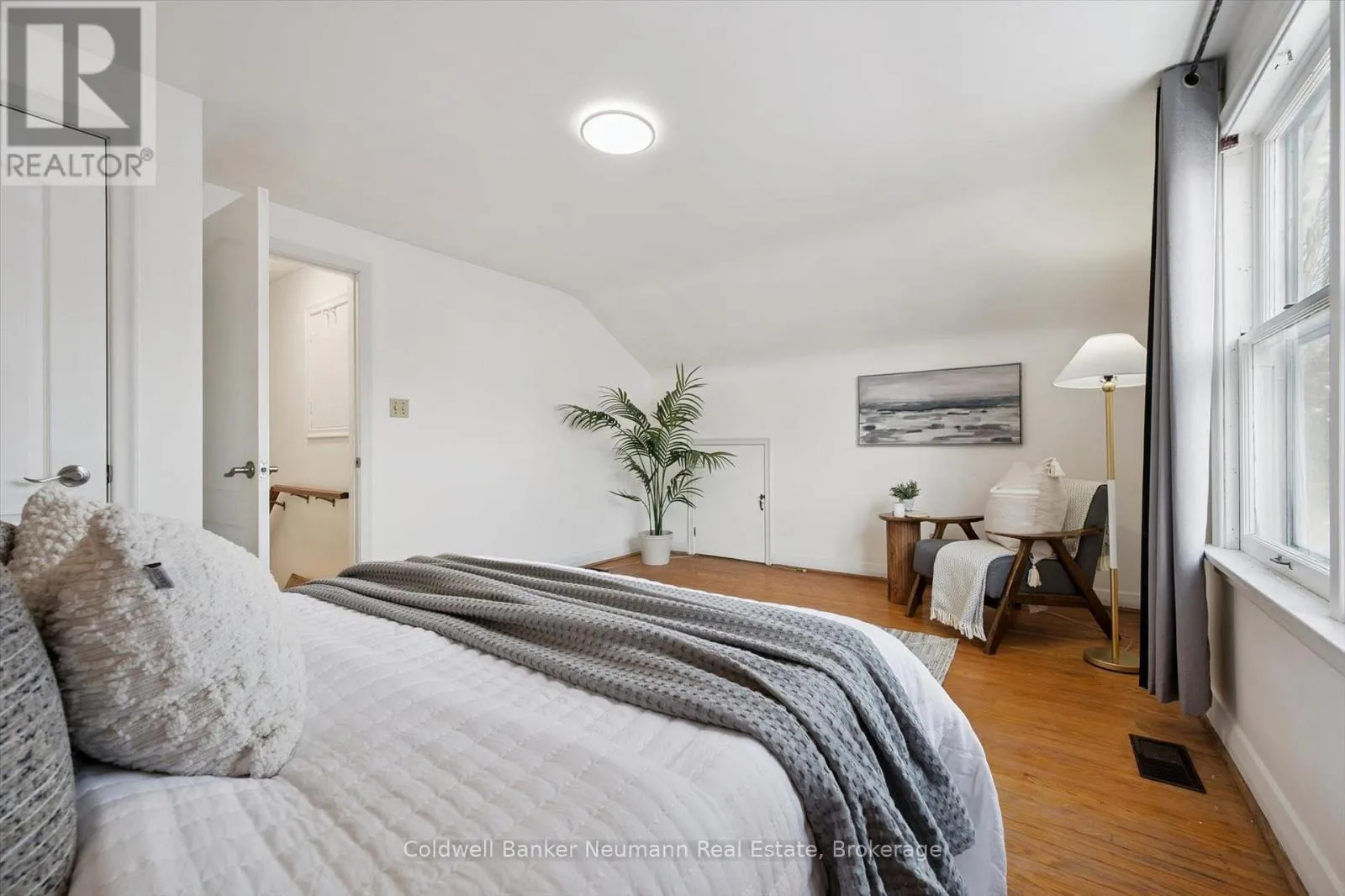 Cross Streets: Kensington St. ** Directions: Metcalfe to Shaftesbury Ave to Collingwood. Or Kensington St. to Collingwood. Located in the beautiful Riverside park neighbourhood, this well maintained bungaloft has a functional, bright layout and thoughtful updates throughout. This home offers three bedrooms, including two on the main floor and a newly renovated 4-piece bathroom, plus a large, private third bedroom on the second level above the garage. Hardwood and ceramic flooring run throughout the main and upper floors with no carpet, complemented by new light fixtures, generous storage, and exceptional natural light throughout. The kitchen cabinets have been refinished, with newer counters and ceramic backsplash. The finished basement features a separate entrance, new luxury vinyl flooring, and a second fully renovated 3-piece bathroom, offering flexibility for a future in-law suite or basement apartment. Additional updates include a new furnace (2026), water softener, central air, and a new front deck and entryway. Outside, enjoy a fully fenced 50' x 110' private lot with patio space, mature trees, and plenty of future potential. A single-car garage and parking for three vehicles complete the property. Set on a quiet, tree-lined street in a sought-after Guelph 'family and dog friendly' area, just steps to Riverside Park, trails, schools, golf, groceries, transit, and restaurants, this is an excellent opportunity and solid investment. (id:27476)