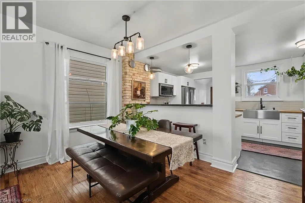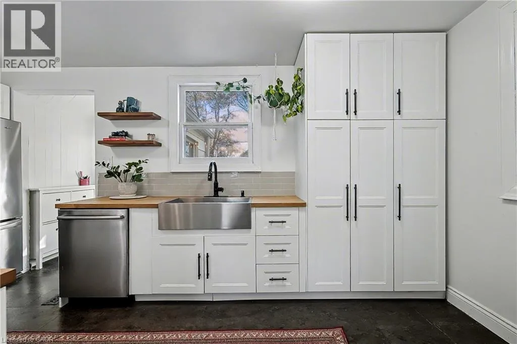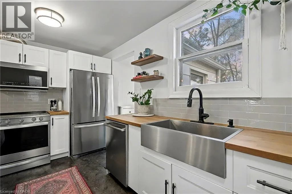 York Rd to Lawrence, laneway just around the corner on Lawrence, and veer right to laneway behind homes. When you see the ight green shed and new back fence, that is the property. Lockbox on fence handle for back door entry Charming Circa 1912 home in the heart of the downtown core. This home has been beautifully renovated throughout, offering an open concept main level with a gourmet style kitchen, that includes timeless white cabinetry, sleek stainless steel appliances, butcher block counter top, and a casual breakfast bar...plus eye catching exposed brick. Original hardwood flooring flows seamlessly through the dining area, and in to the cozy living room, filled with streams of natural light. Upstairs, 3 generous sized bedrooms are perfect for a growing family, and an updated bath tops off this incredible home. Outdoors, relax on your private deck, with a fully fenced yard, ideal for the kids at play. Just steps to Eramosa River Park, you can take in a volleyball game, paddle downstream in your kayak, or simply enjoy nature, with the walking trails that surround this fantastic area (id:27476)