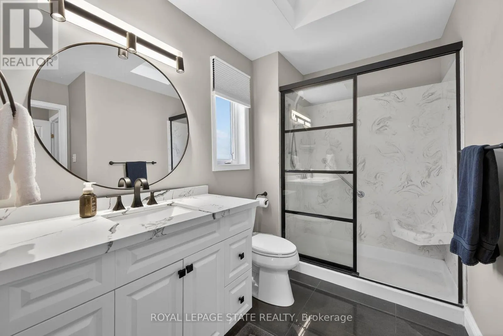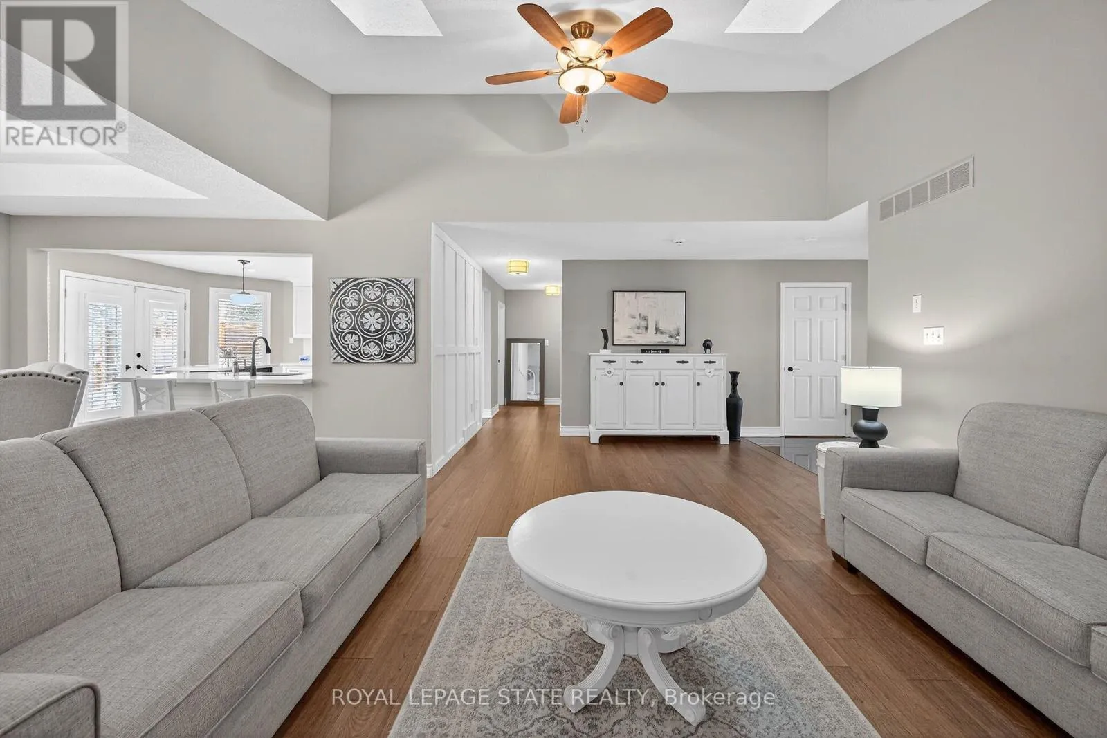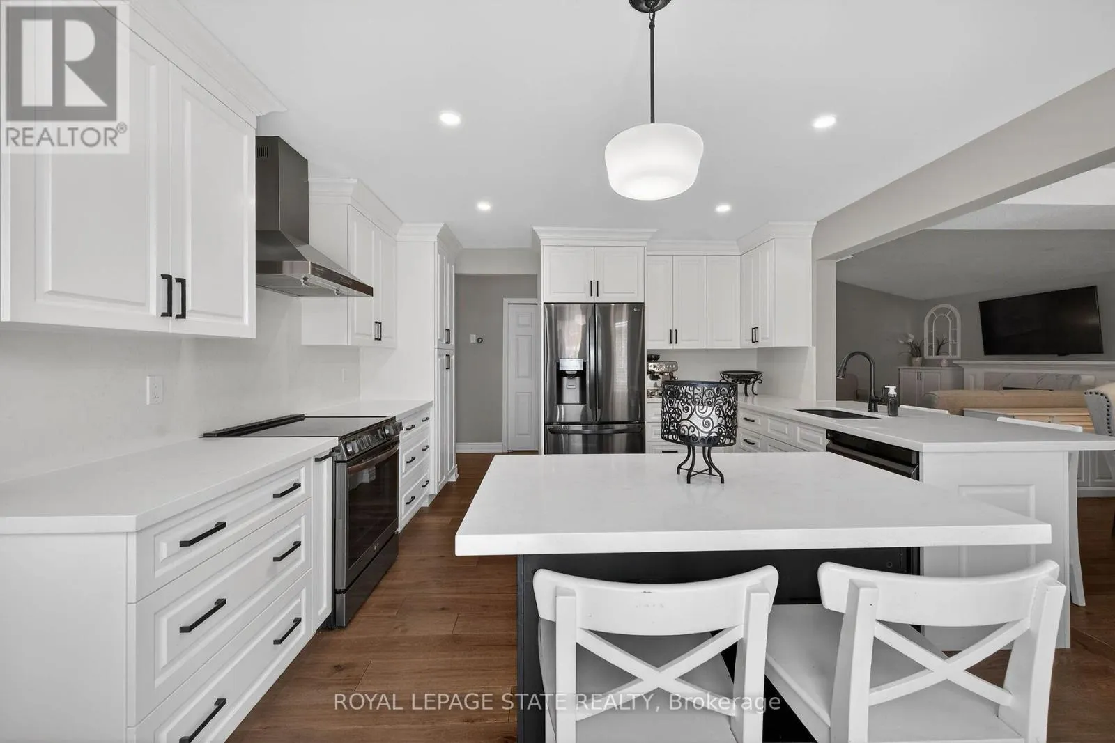 Gordon St to Kortright Rd E Welcome to 90 Kortright Road East located in one of Guelph's most sought after south end neighbourhoods. From the moment you step inside you will be impressed by this beautifully finished 2+3 bedroom, 3-bath bungalow with a fully self-contained accessory apartment. The main level features a bright, open-concept living and dining area with cathedral ceilings, skylights, a gas fireplace and custom built-in cabinetry - an ideal space for entertaining. The gourmet kitchen offers an island and peninsula, quartz countertops and backsplash, and French doors leading to the back deck. The spacious primary bedroom includes a walk-in closet and a luxurious 4-piece ensuite with soaker tub and separate shower. A second bedroom offers two large closets and ensuite privileges to a 3-piece bath. Convenient main-floor laundry completes this level. The lower-level accessory apartment is equally impressive, featuring two bedrooms plus an additional bedroom/den, all with closets, an open-concept kitchen and family room, a 3-piece bath, second laundry area, and ample storage. Enjoy outdoor living in the fully fenced backyard with deck, gazebo, and BBQ gas line. Parking is plentiful with a four-car driveway and double garage, which includes two interior entry points-one providing direct access to the basement apartment. Extensive updates over the past four years include kitchens, primary ensuite, built-in dining cabinetry, garage door, fascia, eavestroughs, and select flooring throughout. Ideally located close to schools, parks, and unique shopping and dining experiences. A truly exceptional home-don't miss your opportunity to make it yours. (id:27476)