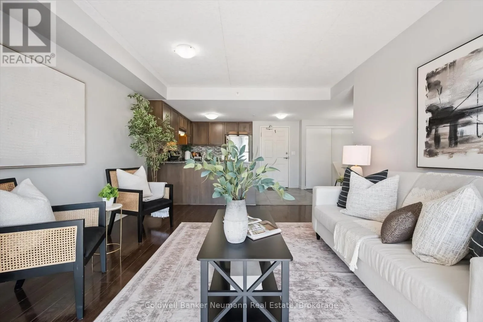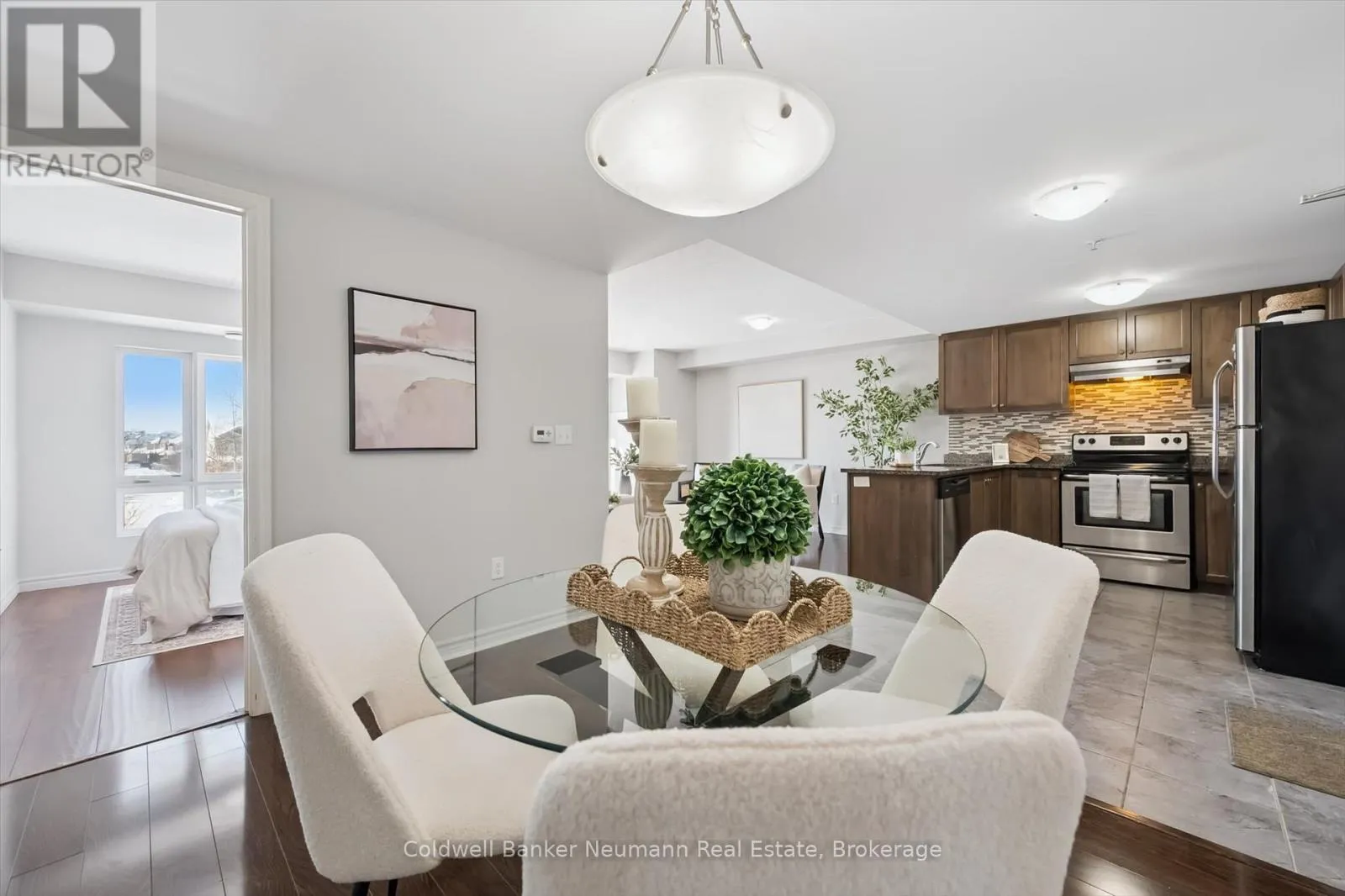 Cross Streets: Victoria Rd. S & Frederick Dr. ** Directions: Victoria Rd. Frederick Dr. Kingsbury. Welcome to 209-45 Kingsbury Sq! This bright and well-maintained 2 bedroom + den condo offers a smart, functional layout in the heart of South Guelph. The den has been thoughtfully converted into a dedicated dining space, opening up the living area and improving flow for everyday living and entertaining. The kitchen features granite countertops, modern cabinetry, a mosaic backsplash, and stainless steel appliances. Both bedrooms are generously sized, and the unit includes convenient in-suite laundry. Hard surface flooring runs throughout the entire home-completely carpet-free-with tasteful dark finishes, complemented by fresh paint throughout. Ideally located with quick access to the 401 and the major amenities along Clair Road and Gordon Street, and within walking distance to trails, schools, shopping, and parks-this is a move-in-ready opportunity in one of Guelph's most convenient neighbourhoods. (id:27476)
