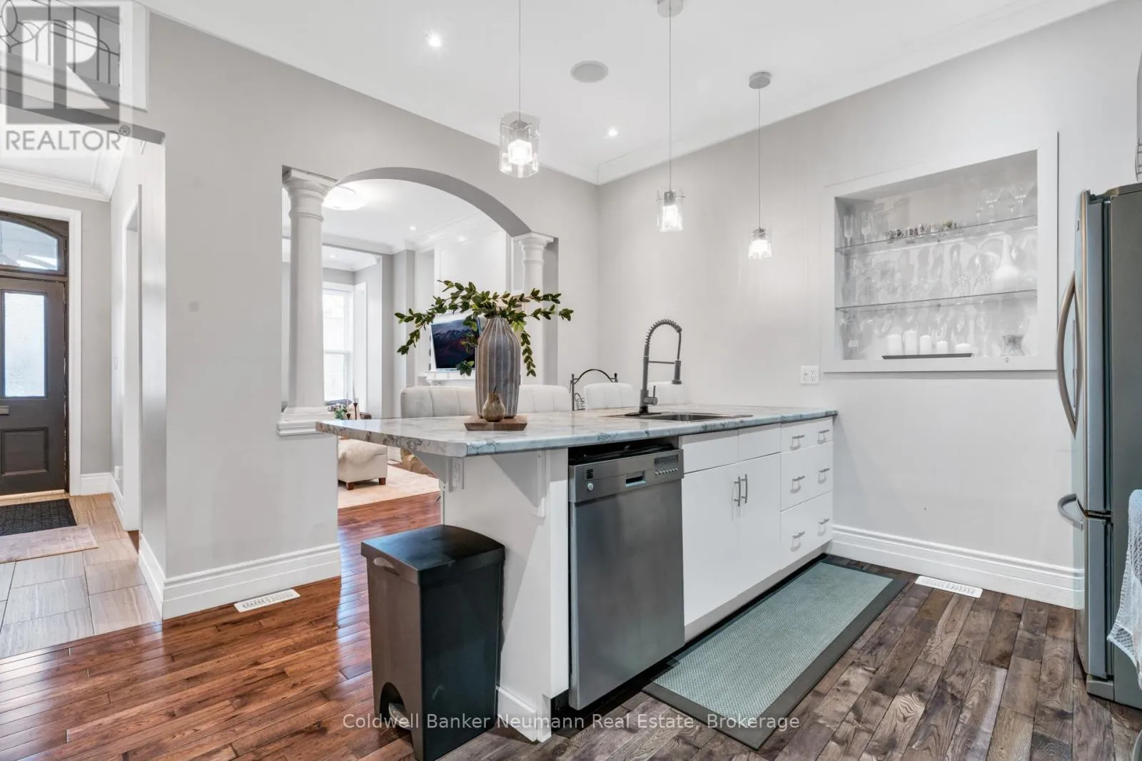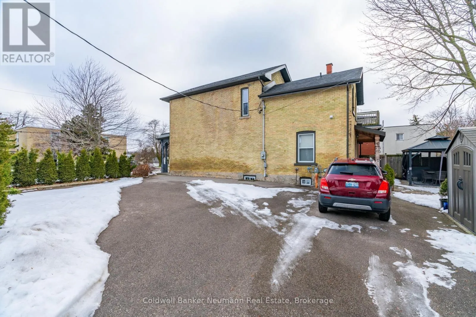 Cross Streets: Woolwich St and Tiffany Street West. ** Directions: Corner of Tiffany Street West and Woolwich Street. Charming and Versatile in Exhibition Park. 394 Woolwich Street a beautifully updated yellow brick century home located on the corner of Woolwich and Tiffany Street W, in the heart of Guelphs sought-after Exhibition Park neighbourhood. Fully renovated just 10 years ago, this timeless 2-storey home blends historic charm with modern functionality. Outside, the paved driveway offers parking for six vehicles, while the professionally landscaped patio and covered back porch provide private, low-maintenance outdoor living spaces perfect for entertaining or relaxing. Step inside to 10-foot ceilings and a warm, inviting living room featuring a gas fireplace framed by custom built-ins. The living area flows into a bright, functional kitchen ideal for both family life and hosting. A standout feature off the kitchen is the versatile rear room with separate exterior access and a 3-piece bath. A perfect space for a home business, Airbnb suite, fourth bedroom, or additional sitting/dining room. With office-residential zoning, the options are endless. Upstairs, you'll find three spacious bedrooms, including a light-filled primary bedroom with ensuite privilege to a stylish 4-piece bathroom.Perfectly positioned just steps to Exhibition Park, downtown, schools, and transit, 394 Woolwich Street offers flexibility, character, and location all in one tidy package. (id:27476)