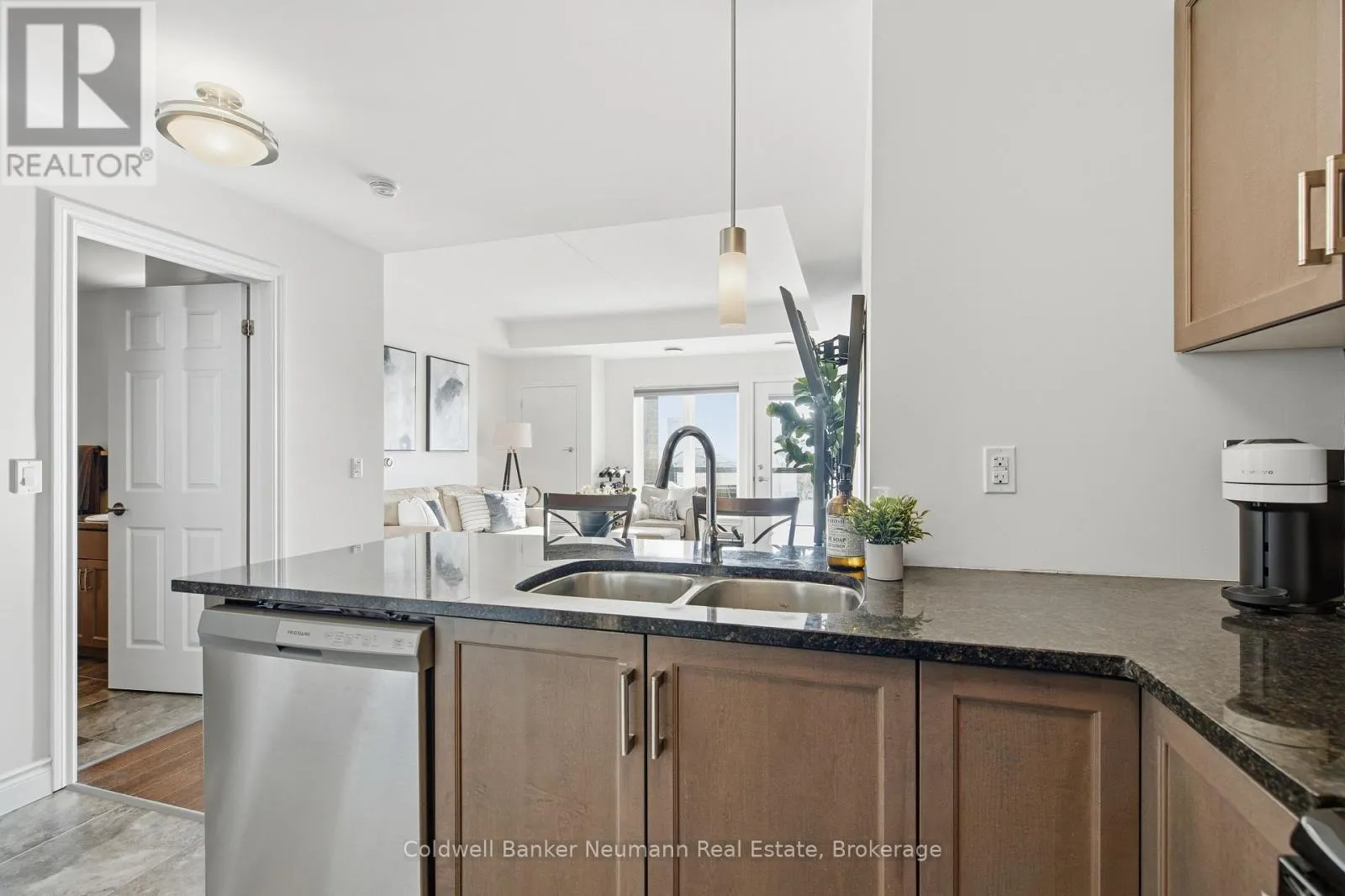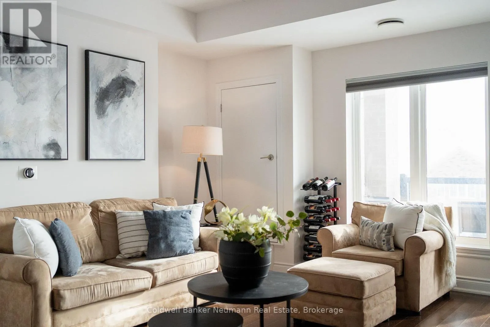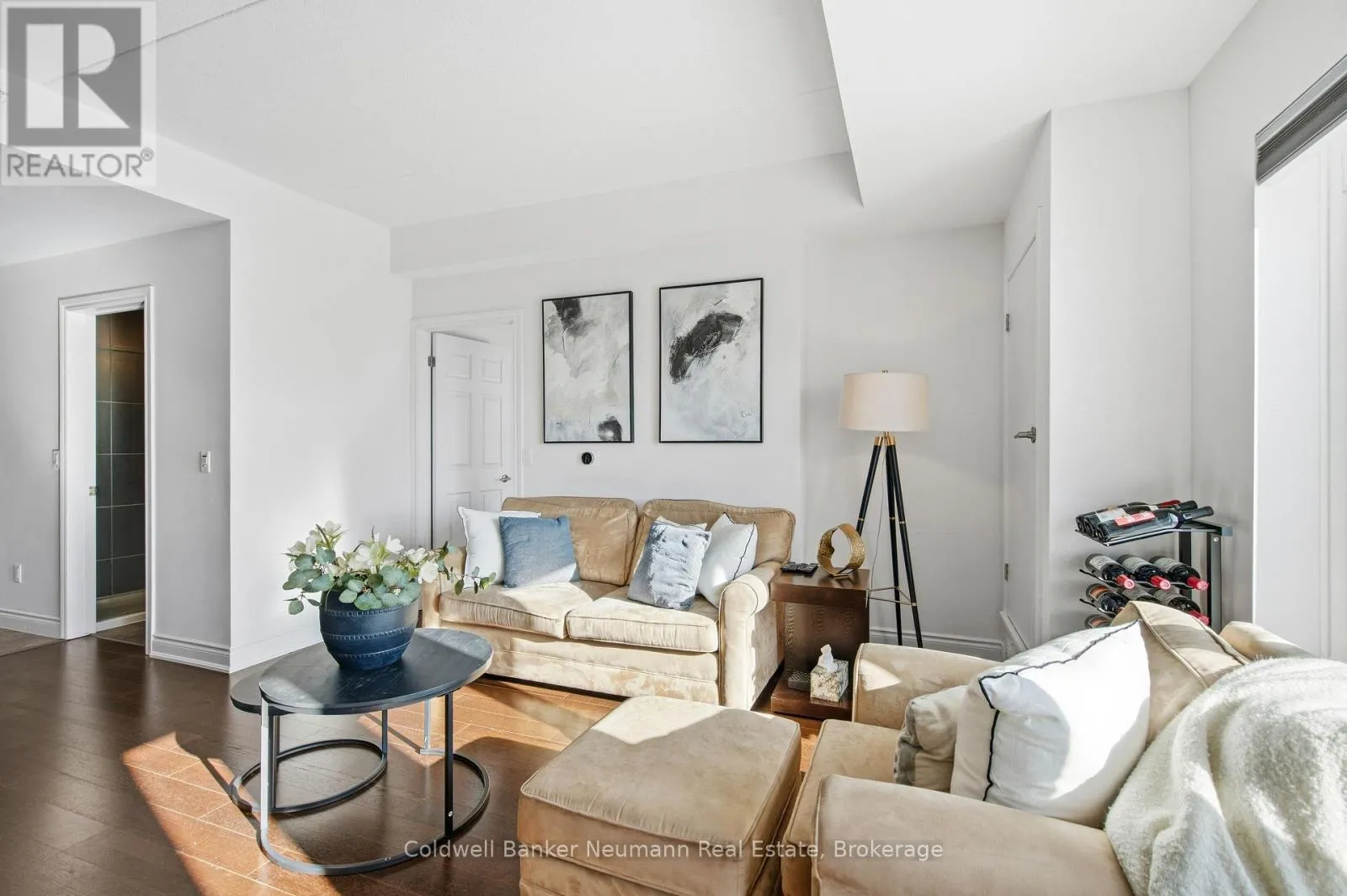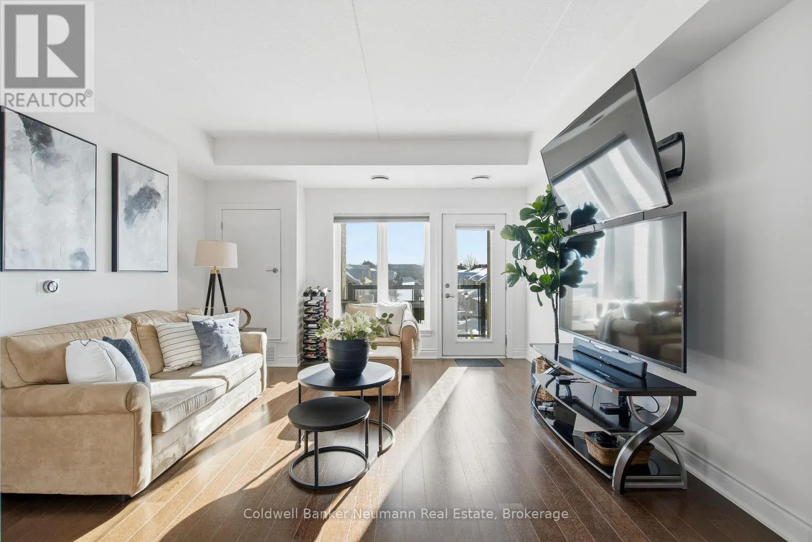 Cross Streets: Victoria/Bard. ** Directions: Victoria to Bard. Welcome to Suite 311 at 106 Bard Blvd, an elegant 1-bedroom plus den residence offering elevated condo living in one of South Guelph's most desirable communities. This sun-filled suite enjoys a coveted south-east exposure, allowing natural light to pour in throughout the day. The open-concept layout is anchored by a beautifully updated kitchen featuring updated stainless steel appliances, refreshed cabinetry, and seamless flow into the living and dining areas-ideal for both everyday living and entertaining. Updated hardwood flooring adds warmth and sophistication throughout the living room. The spacious primary bedroom offers comfort and calm, while the versatile den is perfectly suited for a home office or guest area. The updated bathroom showcases a modern low profile shower, completing the suite with a polished finish. Step out to your private balcony and enjoy bright mornings and sun-soaked afternoons. Residents benefit from excellent building amenities, including a gym, party room and rooftop terrace with community barbecue, all set moments from parks, trails, shopping, and transit. Whether you're purchasing your first home, looking to simplify, or adding a low-maintenance investment in a sought-after area, this condo offers flexibility, strong value, and a great sense of community. It's the kind of space that feels right the moment you step inside. (id:27476)