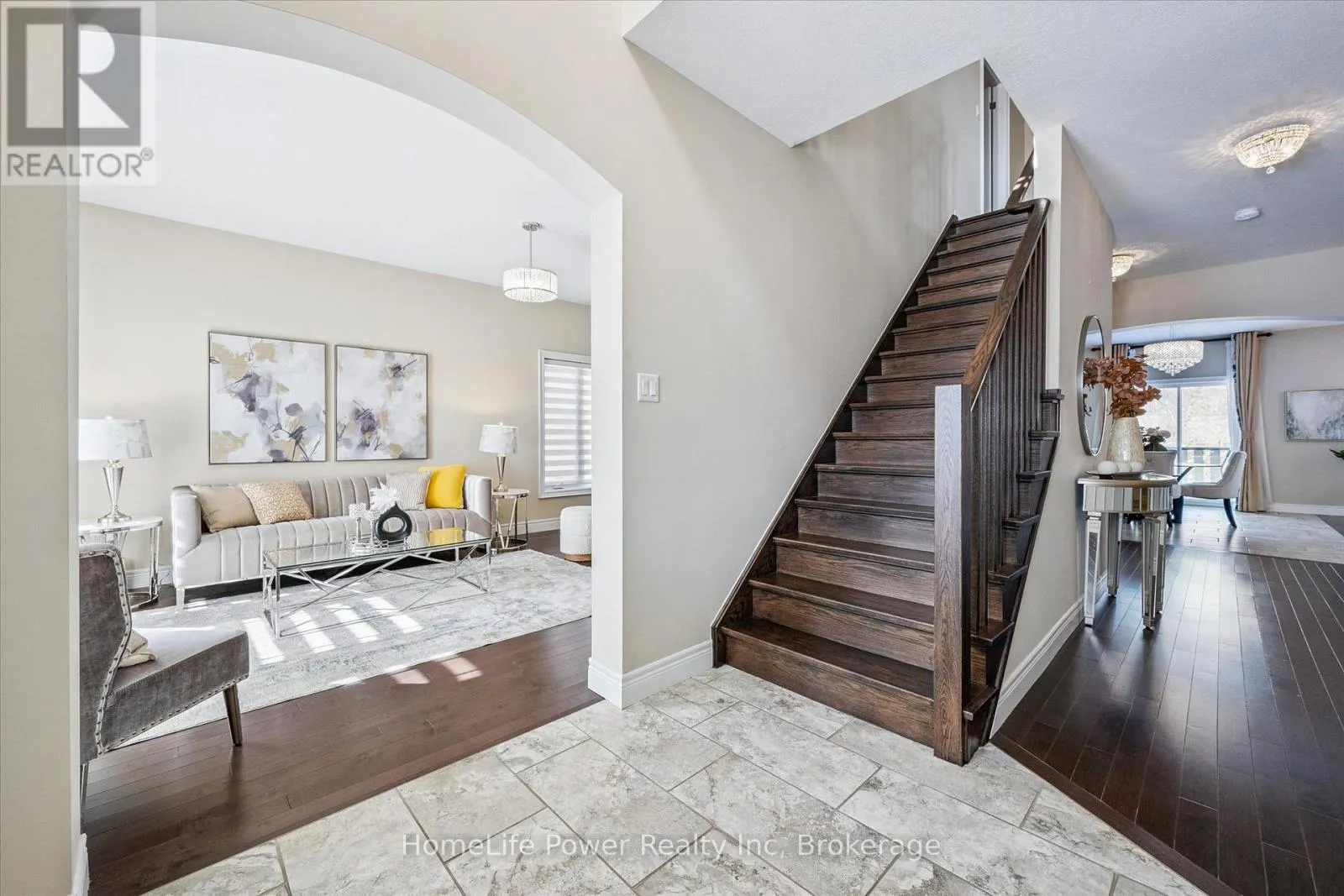 Cross Streets: Tovell Dr. ** Directions: Off Tovell Dr. Set on a premium lot backing onto conservation and greenspace, this former model home (built in 2015) offers approximately 4,080 sq. ft. of total living space, including 2,880 sq. ft. above ground and 1,200 sq. ft. in the walk-out basement, ideal for growing families. The main floor features a spacious open-concept layout with soaring ceilings, highlighted by an oversized kitchen with a large dinette that seamlessly flows into the great room with gas fireplace. Step directly from the dinette onto a generous deck and enjoy unobstructed forest views. The home also offers a formal dining room, perfect for entertaining, and a bright, private living room located just off the foyer. The second level boasts four spacious bedrooms and 2 full bathrooms, including a primary retreat with a luxurious 5PC ensuite and large walk-in closet. The finished walk-out basement has building permits with large recreation room with electric fireplace, an additional bedroom, and a full bathroom with a sauna. Additional features include hardwood flooring throughout, with brand-new hardwood installed on the second level in 2025, and a large deck, fully fenced, private backyard backing onto conservation. Conveniently located close to schools, library, recreation centre, Costco, and shopping amenities, this exceptional property offers both comfort and convenience-an ideal place to call home. (id:27476)
