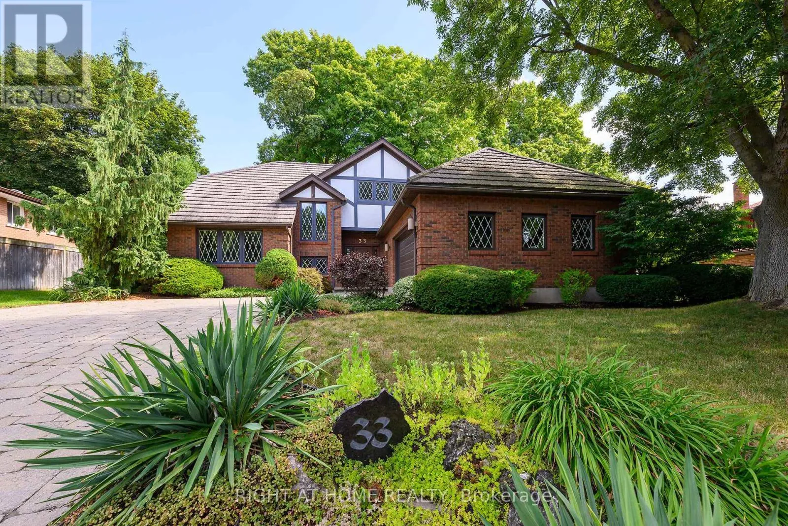 Stevenson St N & Walnut Dr Offered for the first time, 33 Walnut Drive is a timeless Tudor-style residence, custom designed & carefully curated to exceed expectations. Boasting over 4,800 sq ft of thoughtfully designed interior space, this home is a true blend of character, craftsmanship, & comfort. From the moment you arrive, the curb appeal is undeniable - a stone walkway, mature trees, & professionally landscaped gardens create a picture-perfect first impression. Step inside to a gracious entry way & grand two-story living room featuring soaring ceilings, striking fireplace, & views of the private backyard. The dining room offers serene vistas of a cascading waterfall & includes a walkout to the private oasis with lush gardens & an expansive deck, ideal for entertaining or peaceful mornings with coffee. The chef's kitchen includes a generous eat-in area & opens to the family room, creating a warm, inviting space for gatherings. The main-floor primary suite is a private retreat, complete with walk-in closet & luxurious ensuite. Also on the main level is an executive office featuring custom millwork & built-in shelving, ideal for working from home. Upstairs, you'll find 3 additional spacious bedrooms, full bath, & a bright open loft, ideal as a secondary office, artists studio, or playroom. The lower level offers a large recreation space ready to be customized into a games room, home theatre, or gym. There is ample storage throughout. Additional features include double garage with inside access, main floor laundry, steel roof, 200 AMP service, new furnace & A/C. Ideally situated in an established neighbourhood, walkable to shopping & top notch schools. Floor plans & detailed construction specifications, which exceeded standard building codes, are available upon request. Built for the original family who has lovingly maintained it since 1984, this home has been the setting for a lifetime of memories. Now, it's ready for you to begin your own chapter. (id:27476)
