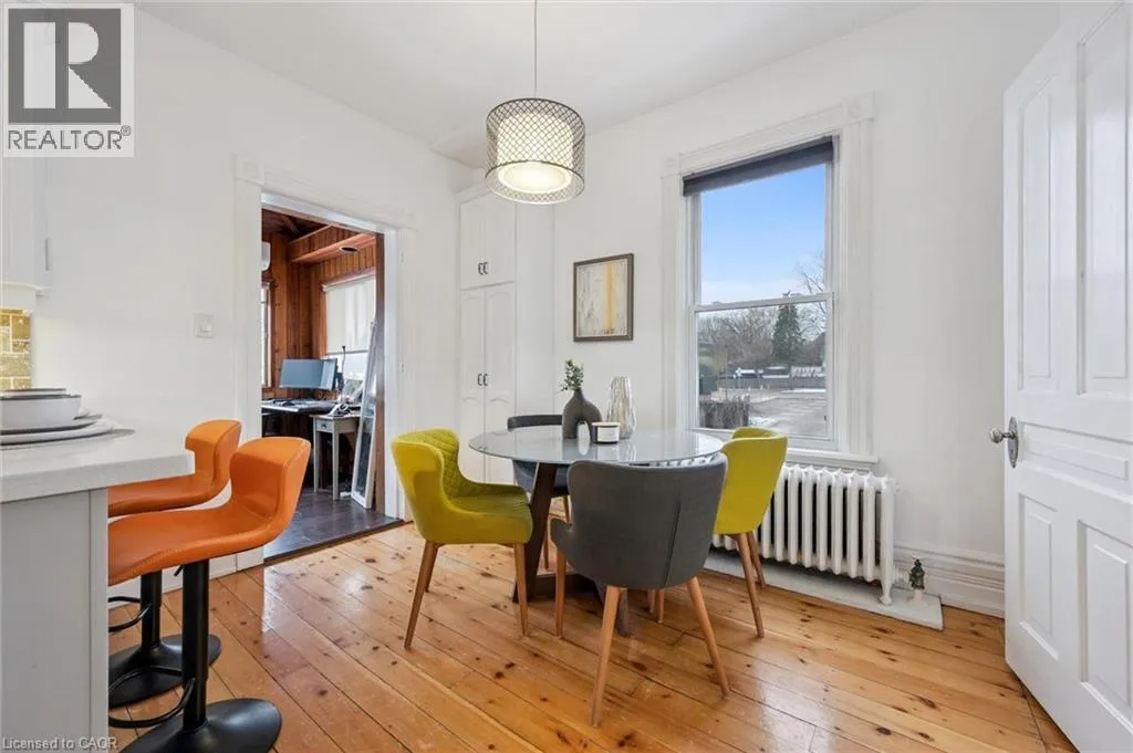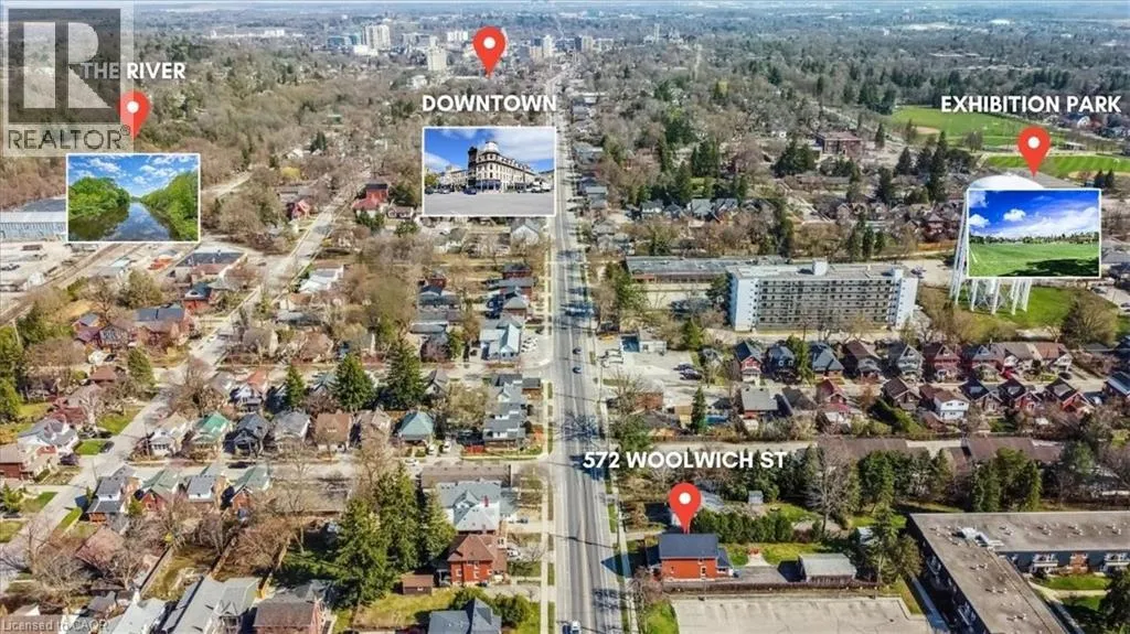 Speedvale Ave W Youâve been looking for a property that adapts to your life, not the other way around. This is it! 60 X 160 lot W/detached 2-car garage & ample parking in heart of Guelph, this century home immediately stands out. What sets the home apart is detached 2-car shop W/pit! Dream setup for car enthusiasts, contractors or anyone needing serious workspace. Combined W/ample on-site parking & effortless turnaround youâll never worry about backing onto Woolwich or squeezing in work trucks or client cars. Add in prime downtown exposure & visibility, this becomes an exceptional opportunity for at-home business. Front LR can be converted into office or space for massage therapy, physiotherapy or similar professions. For investors the upside is just as compelling! Existing floor plan allows LR & DR to be easily reconfigured into add'l bdrms creating 4 or 5-bdrms! See attach for income pro forma for 5-bdrm rental. Lot size & layout support ADU & home sits on bus route to UofG W/walkability to downtown, major draw for tenants. Red-brick exterior & front porch deliver timeless character. Inside home blends original details W/thoughtful updates. LR W/hardwood, high baseboards, fireplace & picture windows. It flows into DR creating perfect setting for family meals & entertaining. Renovated kitchen W/timeless cabinetry, quartz counters, backsplash, B/I appliances, breakfast bar & dining nook. Sun-room at rear is ideal as reading nook, office or studio. Solid wood stairs lead up to 3 bdrms W/hardwood & large windows. Updated bathroom W/glass tub-shower, vanity & backsplash. Backyard offers expansive lot for kids, pets, entertaining & relaxing. Walk to downtown shops, restaurants & nightlife. Steps from Royal Rec Trail, Exhibition & Riverside Park. This isnât just a home, it's a place where you can live, work, invest & grow! Property gives you options today & powerful upside tomorrow. Downtown homes rarely offer this level of space, parking, versatility & income potential, this one does! (id:27476)