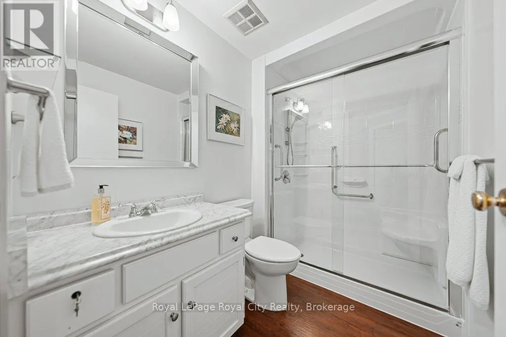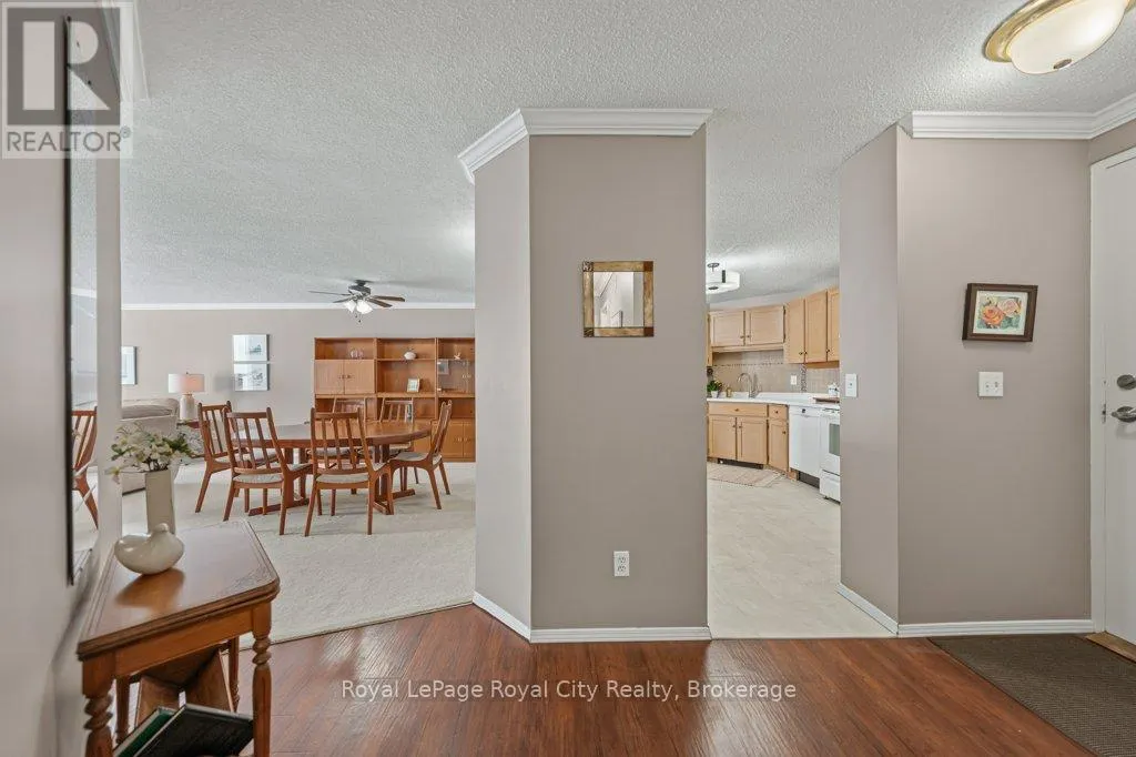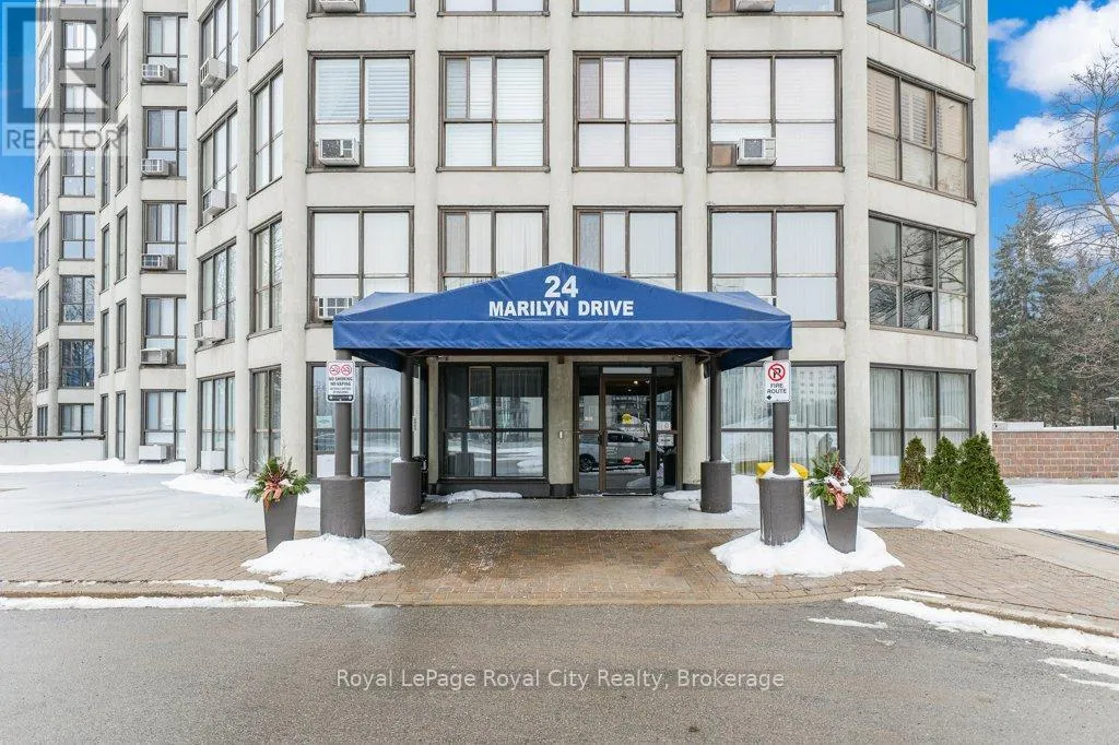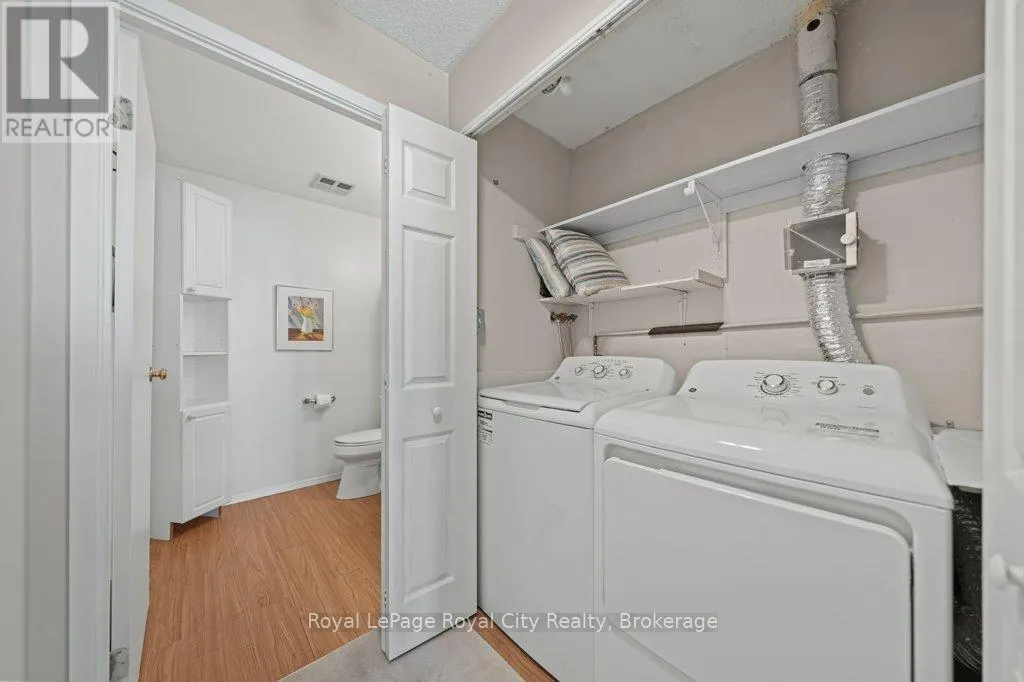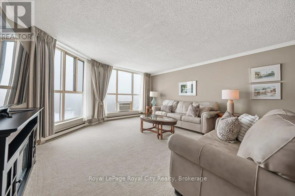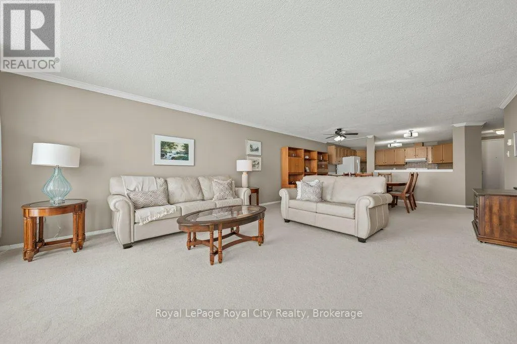 Woolwich Welcome to 1005-24 Marilyn Dr! This bright and spacious unit is located on the top floor, overlooking Riverside Park. Each floor to ceiling window features an interrupted view of the beautiful park below, allowing plenty of natural light to flow throughout the home. The classic open-concept design is perfect for entertaining friends and family or relaxing and enjoying a quiet evening in. The spacious kitchen boasts loads of counter and cabinet space. Off of the kitchen, sits the living area, with space for a dining room in between. Down the hall, you'll discover a generous primary suite with two-piece ensuite and laundry. In addition to the primary, there is a sizeable second bedroom with large closet and a three-piece washroom. This unit features underground parking and a storage locker. Located in a quiet, friendly and well-maintained building close to amenities, shopping, golf, parks, trails, senior centre, restaurants and more. (id:27476)