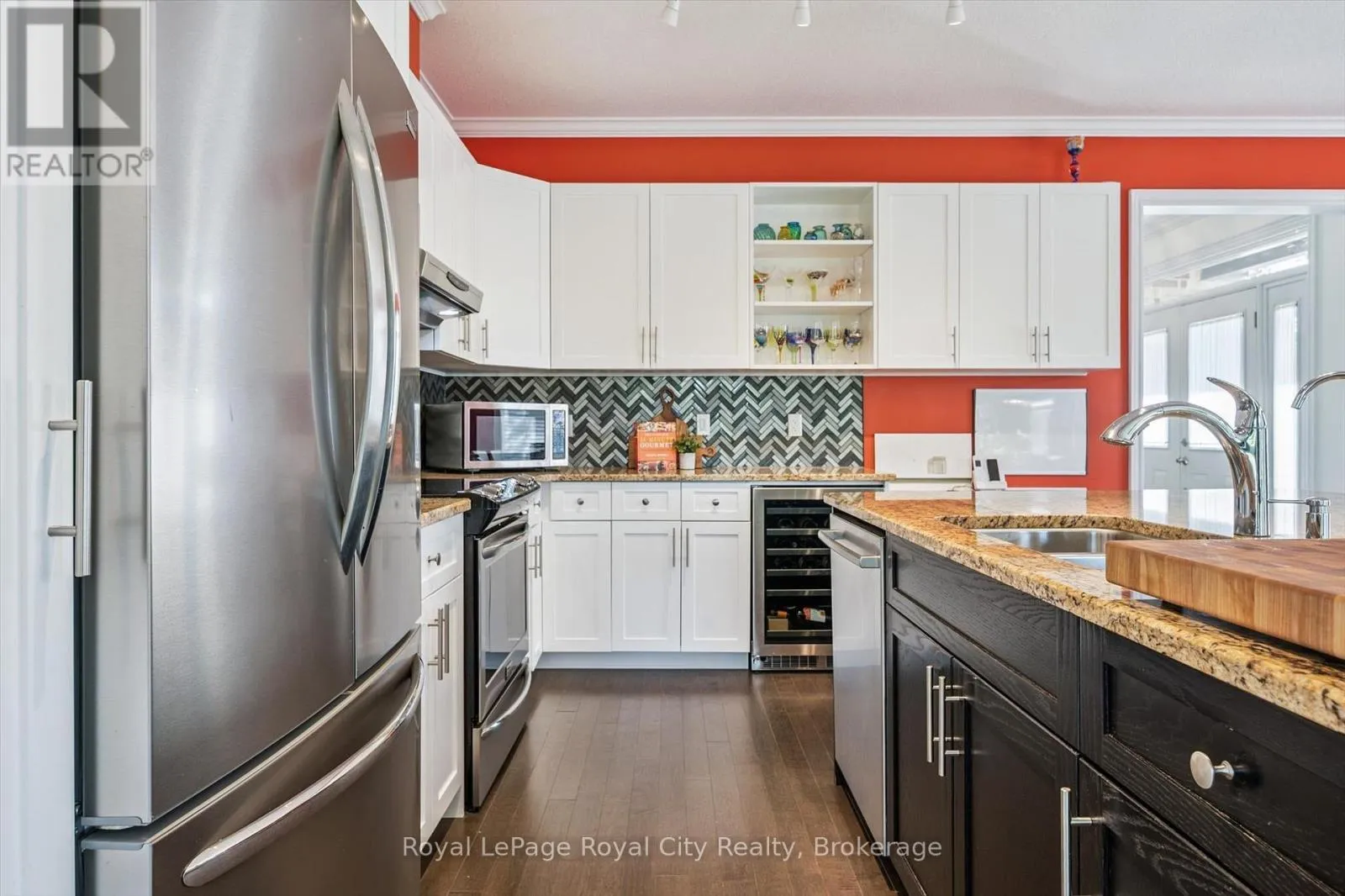 Cross Streets: Poppy Drive E. ** Directions: Poppy Drive E to Kay Crescent. Backing directly onto a lovely park, #1-39 Kay Crescent offers the perfect blend of space, style, and low-maintenance living. With over 1,800 sq ft of beautifully finished space, this end-unit townhome is designed for those who love to host family or entertain friends, yet want the ease of condo-style living without the compromises. The bright, open-concept main floor flows effortlessly from the elegant dining area to the chef-inspired kitchen, featuring a large granite-topped island, high-end stainless steel appliances, and a beverage fridge ideal for gatherings. The living room is anchored by a striking marble-surround gas fireplace and framed by picture windows overlooking the park - a private, natural backdrop youll appreciate year-round! Flexibility is built in with an impressive guest suite/home office on the main floor, complete with walk-out patio access, four-piece bath, and walk-in closet. Tucked away for privacy, the primary suite feels like a retreat with two walk-in closets and a spa-like ensuite featuring a standalone soaker tub. The lower level, already equipped with a full bathroom, offers future space for a rec room, gym, or extra bedrooms. Outside, the patio is the perfect spot to watch grandchildren play in the park or enjoy a quiet morning coffee. Ideally located in Guelphs sought-after south end, youre steps from amenities, dining, and entertainment, with quick access to major highways. Whether youre downsizing but still want room for family gatherings, or upsizing from a condo for more space and privacy without the upkeep of a detached home, this property offers the best of both worlds. (id:27476)