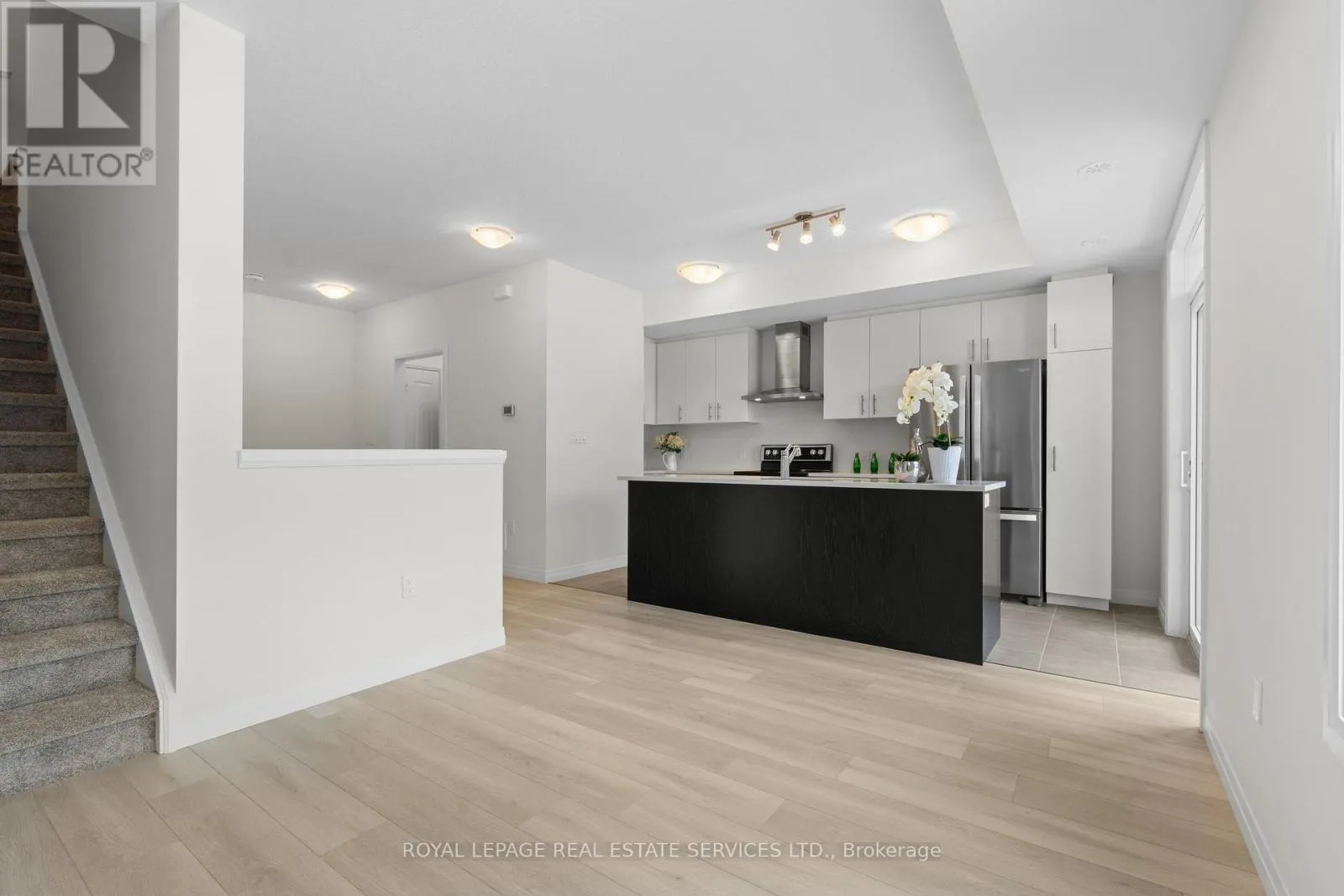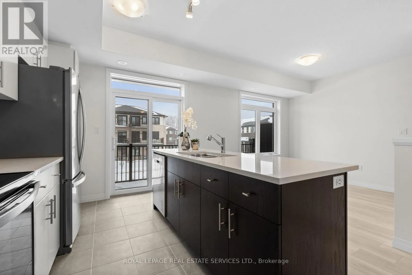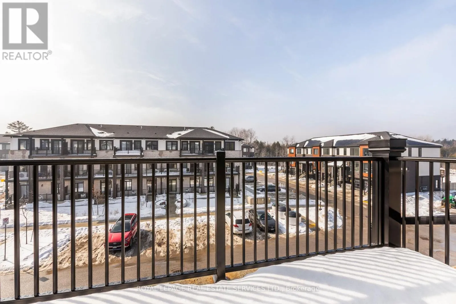 Cross Streets: MacAlister & Victoria Rd S. ** Directions: Victoria Road S to property just north of MacAlister Blvd. Brand new, never lived-in 2 bedroom, 3 bathroom upper-level townhome by Fusion Homes. This beautifully designed residence offers 2 private balconies, a covered front porch, and 1 dedicated parking space. The main level features a bright open-concept layout with walk-out to a private balcony, a modern white kitchen complete with a large island with integrated sink, premium stainless steel appliances, stylish backsplash, and a convenient powder room & ensuite laundry for added functionality. Upstairs, the spacious primary bedroom includes a walk-in closet, private balcony, and a 3pc ensuite. The second bedroom is generously sized and complemented by its own 4 piece bathroom. Located in a brand-new community with future amenities including a planned high school, community BBQ areas, firepit, parks, and nearby schools. A perfect opportunity to live in a contemporary home in a growing neighbourhood. (id:27476)