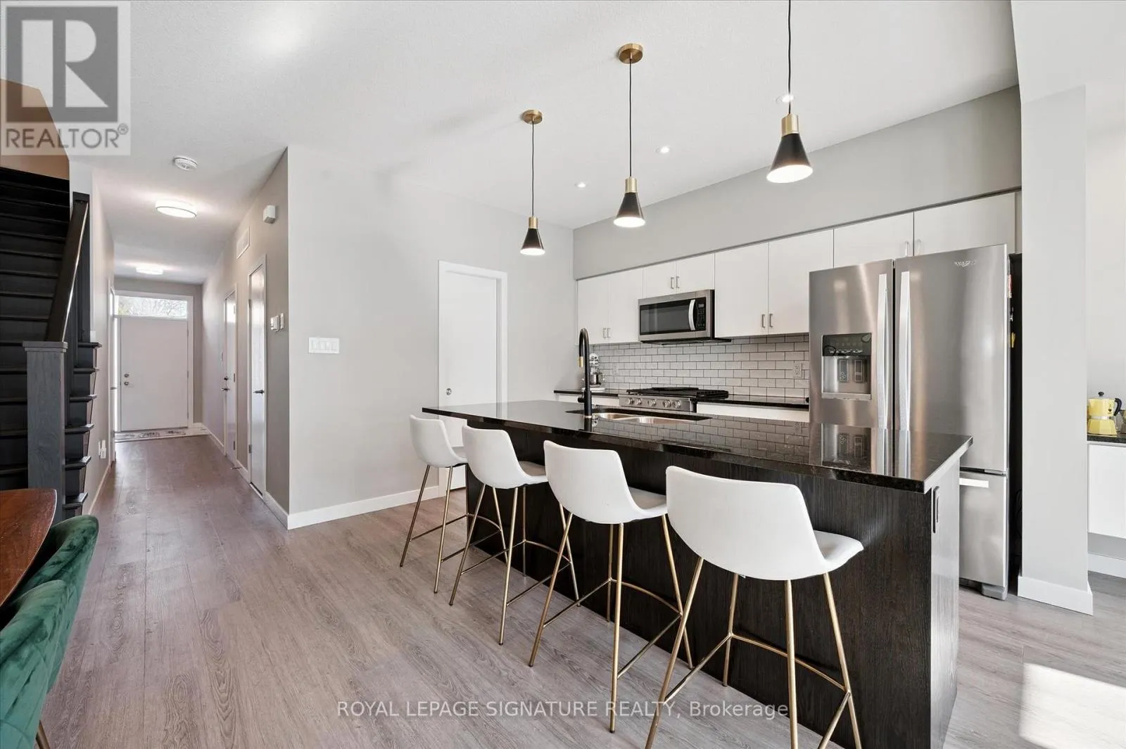 Highway 6 & Wellington St W Welcome to this absolutely stunning 3+1 bedroom townhouse built by Granite Homes, where modern elegance blends seamlessly with everyday comfort. Meticulously maintained and exceptionally clean, this luxurious home features 9 ft ceilings and a bright, spacious open-concept layout enhanced by desirable east-west exposure, filling the home with natural light from morning to evening. The chef-inspired kitchen is designed to impress, showcasing granite countertops, a huge center island, stainless steel appliances, a gas range, and a walk-in pantry - offering both style and exceptional functionality. Thoughtfully laid out for cooking, gathering, and entertaining, it flows effortlessly to your private terrace where BBQs are allowed, creating seamless indoor-outdoor living for hosting family and friends. Upstairs, the versatile +1 space offers flexibility as a family room, home office, or additional sleeping area. The primary bedroom features two walk-in closets and a beautifully upgraded bathroom with a clean, modern finish. Convenient upper-floor laundry completes the level, making everyday routines simple and efficient. Parking for 3vehicles (2 driveway, 1 garage). Located near parks, trails, schools, highways, shopping, and dining. A beautiful blend of luxury, space, and functionality- It's more than just a house, it's a Lifestyle! (id:27476)