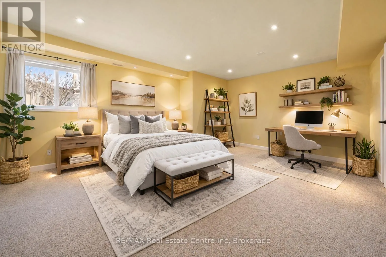 Farley Dr 12 Eugene Dr is a 4-bdrm (W/potential to easily add a 5th) FREEHOLD townhome backing onto protected greenspace! This property can generate over $5,000 in rental income or serve as exceptional family home. W/easy access to UofG & steps from all amenities this home presents exceptional opportunity for investors & student parents. Why pay rent for 4yrs when you can purchase an appreciating asset? Located in one of South Guelph's desirable neighbourhoods & walking distance to parks, large trail system, schools & access to 401 this home is equally appealing to families. Property offers rare advantage of being attached only at garage on one side, meaning shared interior walls only on one side & privacy comparable to a semi-detached home at a far more accessible price. Foyer leads into open-concept main floor. Living room W/laminate floors & large window. Dinette has access to elevated deck overlooking greenspace, ideal for morning coffee & quiet evenings. Kitchen with S/S fridge & 2-tier breakfast bar for casual dining. 2pc bath completes main level. Upstairs primary bdrm W/3 windows incl. arched feature window & his-&-hers closets. The primary is so large that it can potentially be divided to create a 5th bdrm helping maximize rental income. 2 add'l bdrms W/dbl closets & windows facing greenspace. 4pc main bath offers tub/shower. Finished bsmt W/4th bdrm, egress window, W/I closet & updated 3pc bath. Add'l storage in bsmt: large closet with B/I shelves & enclosed room under the stairs. Unwind on deck overlooking greenspace, ideal for BBQs or relaxing while taking in peaceful views. Steps to Clair Park W/access to trails throughout neighbourhood. Walking distance to top-rated schools. Bus stop is around the corner W/access to UofG. At the end of the street is Zehrs, LCBO, restaurants, fitness & more. Less than 10-minto 401! Whether you're an investor building long-term equity, parents planning for UofG living or young family seeking space & convenience, this home delivers (id:27476)