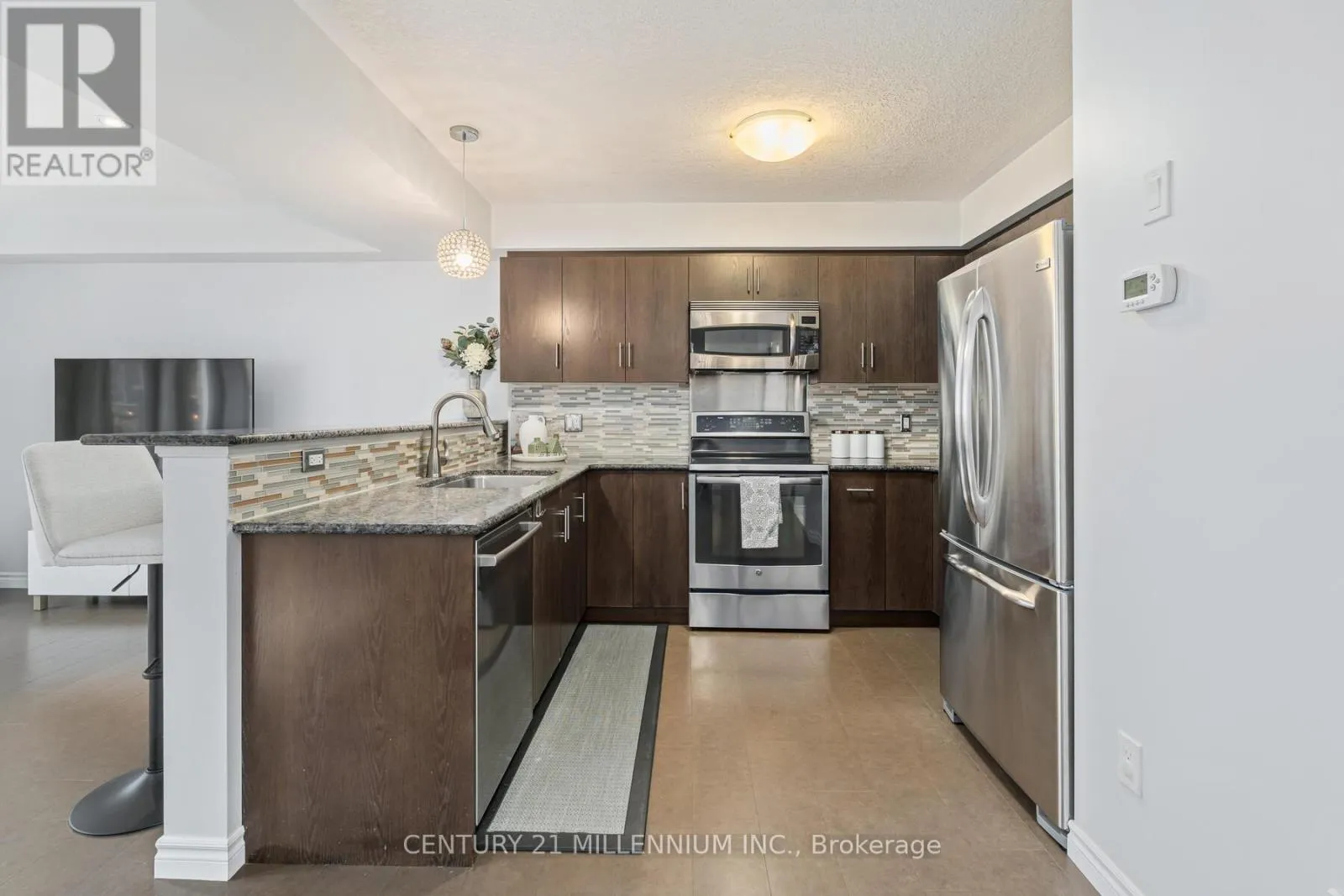 Gordon St./Arkell Rd Open the front door, before you step inside, and let your eyes lead you straight ahead through the arched entranceway to a main living space overflowing with windows and natural light. As you step inside this home, you're welcomed by a soaring 17-foot ceiling that stretches from the main floor to the second level, a stunning architectural statement framed by extraordinary oak square pillars and beautiful hardwood stairs. Above, a modern light fixture draws your gaze upward, perfectly complementing the open, airy design. Continue through the open-concept living area, where you can easily walk out to your backyard patio perfect for BBQs, relaxing, and entertaining. At the end of the day, retreat to your primary suite with its 11-foot cathedral ceiling, striking chandelier, and three bright windows that welcome the fresh air. Cozy up on the built-in window bench and enjoy the best view in the complex, overlooking the trees. With an oversized walk-in closet, 3pc ensuite bathroom, second-level laundry, and spacious second and third bedrooms, there's room for everyone to live comfortably. The basement awaits your personal touch, complete with bathroom rough-in, oversized windows, and great ceiling height - the perfect canvas for your future plans. Located minutes from schools, parks, conservation areas, shopping, restaurants, and the renowned University of Guelph, this home blends design, convenience, and lifestyle into one exceptional address. (id:27476)
