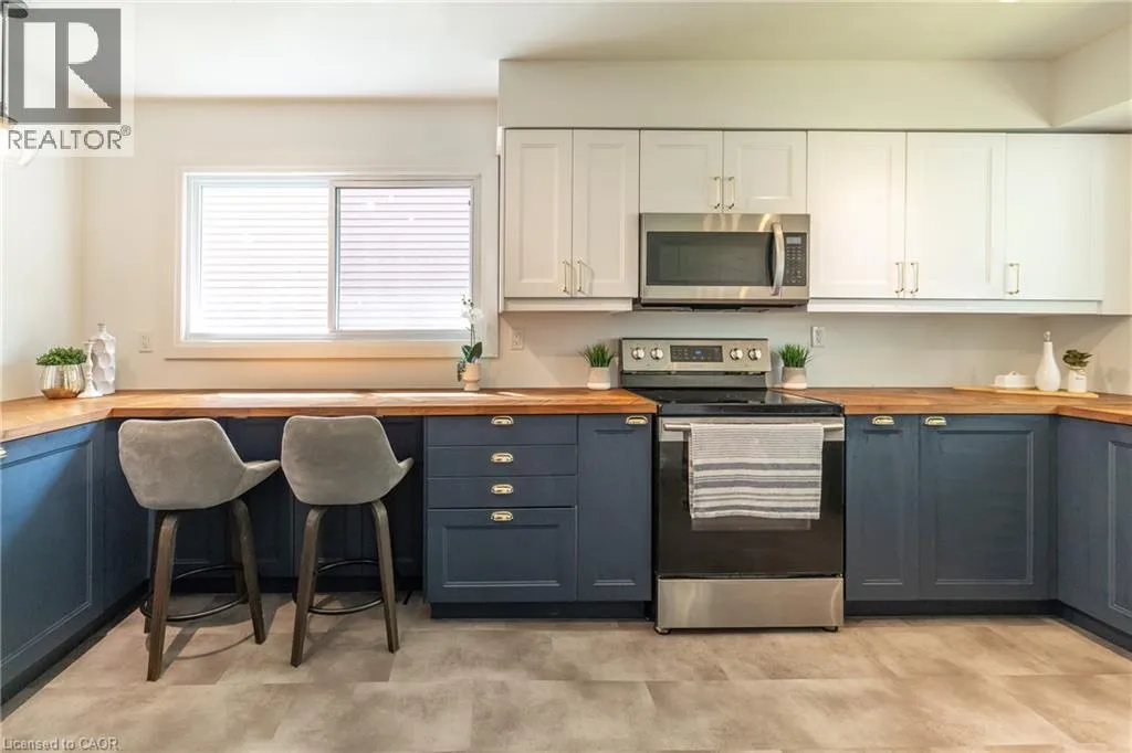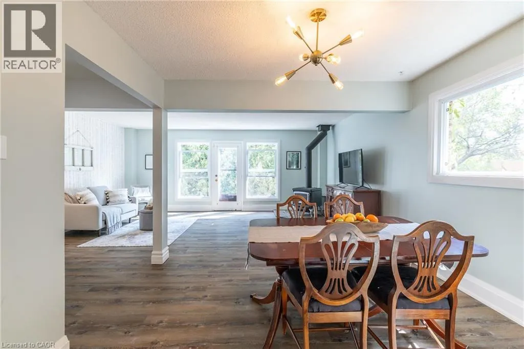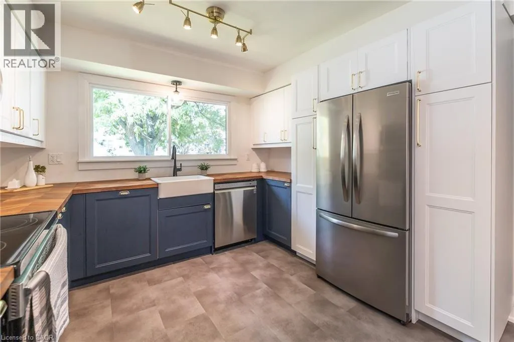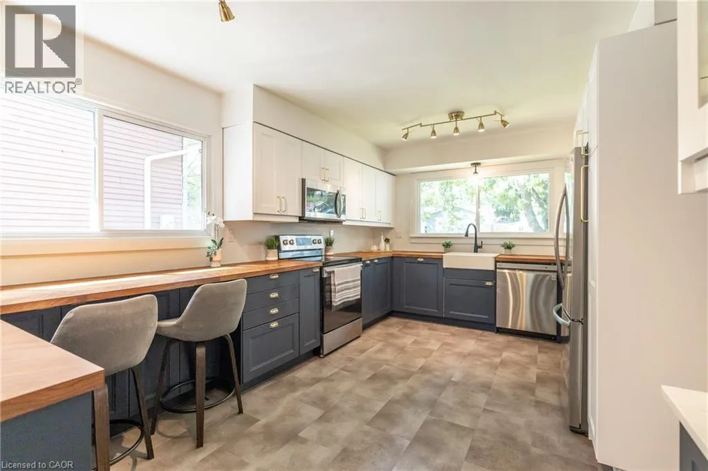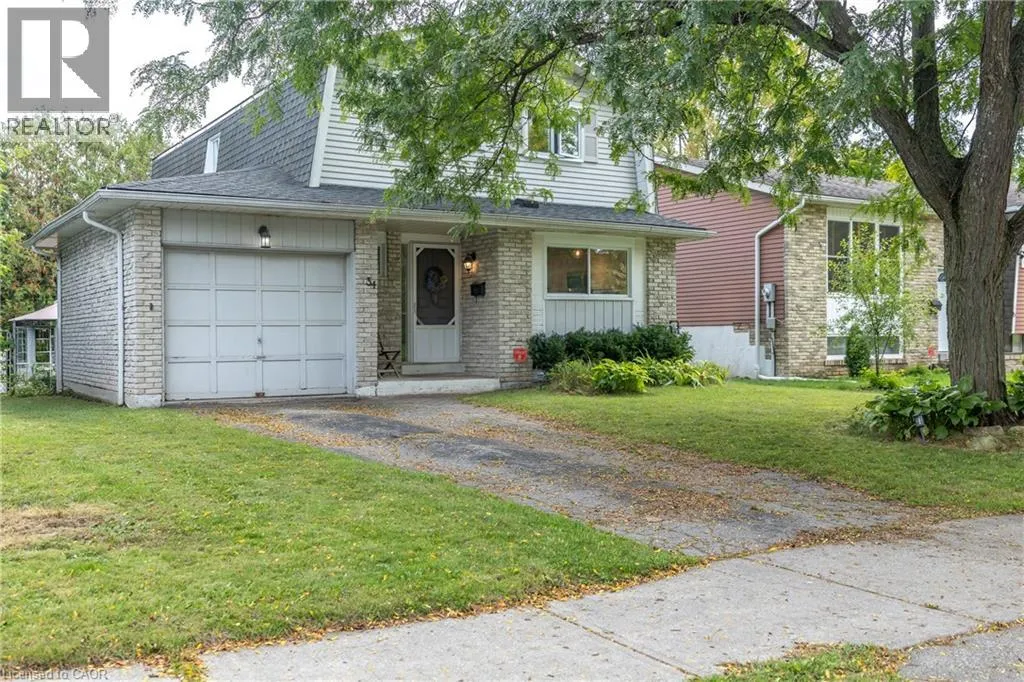 Whitelaw Welcome to 34 Woodridge Crescent! Tucked away in one of Guelphâs well-established neighbourhoods, this charming 2-storey home offers 4 bedrooms, 3 bathrooms and over 2,225 sq. ft. of living space. Just steps from shopping (Costco, Zehrs), banks, the West End Rec Centre, schools and parks. Quick access to HWY's 6, 7 & 124 makes commuting much easier. As you step inside you'll be welcomed by a spacious, fully renovated chefâs kitchen, featuring ample custom cabinetry, expansive wood countertops, and a bright breakfast nook, all thoughtfully designed. Oversized windows throughout the home flood the space with natural light. The dining area flows seamlessly into a spacious living room highlighted by a cozy wood-burning fireplace, ideal for family time. A convenient side entrance provides direct access to the walk-up basement and the deckâideal for multi-generational living, teenagers or those in need of added privacy. As you go up the stairs, youâll find 3 very spacious bedrooms and a full 4-piece bathroom. The primary bedroom is exceptionally large, featuring a deep closet for ample storage. The fully finished basement features a generous Rec room, an additional bedroom/den, a 3-piece bathroom, and a large utility room that includes the laundry area. Youâll enjoy relaxing and entertaining loved ones in the fully fenced backyard, which features a large main deck and a convenient side deck. As a bonus, the hot tub and two storage sheds are also included. List of upgrades: professionally renovated kitchen 2023 with luxury vinyl plank flooring (new insulation, studs, drywall and wiring), new windows by Nordik Windows 2023, shingles Nov 2019 by Platinum Roofing (50 yr transferable warranty), upstairs bath/shower & basement shower by Bath Fitter Feb 2025, new electrical panel Jan 2023, wood stove by Fergus Fireplace 2009 (triple wall pipe, fire rated wood stove tile pad) and SS appliances. One car garage and the driveway that can fit 2 cars complete this cute family home. (id:27476)