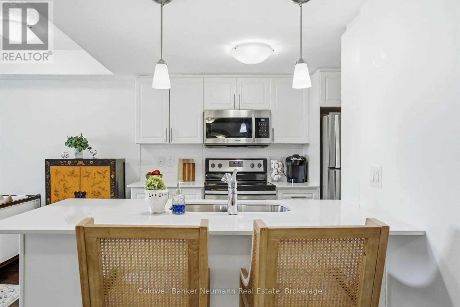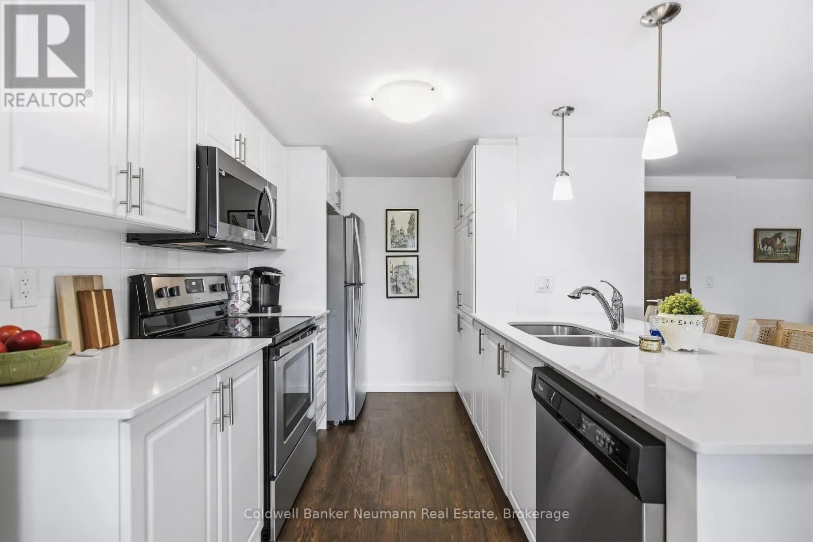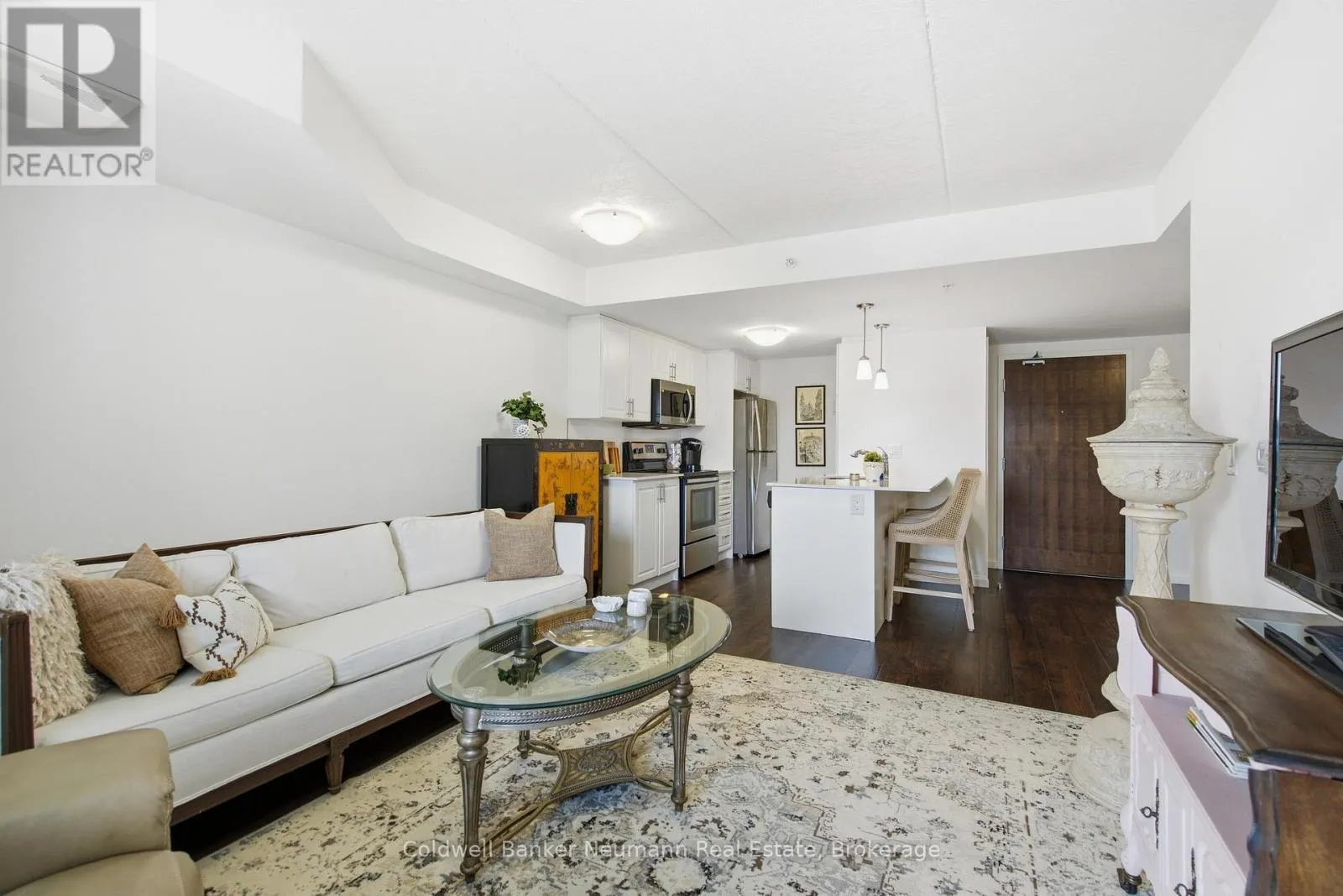 Cross Streets: Dallan Dr and Kay Cres. ** Directions: Clair Rd E to Dallan to Kay Cres. Welcome to this bright and beautifully finished 2-bedroom, 2-bathroom suite in Guelph's sought-after south end. Offering a functional layout with modern finishes throughout, this unit is ideal for professionals, roommates, or anyone looking for comfortable, low-maintenance living in a prime location.The open-concept kitchen features quartz countertops, stainless steel appliances, sleek cabinetry, and durable plank flooring that flows seamlessly into the main living space. Large windows fill the unit with natural light, creating a warm and inviting atmosphere.The spacious primary bedroom includes its own private ensuite bathroom, while the second bedroom and full bathroom provide flexibility for guests, a home office, or shared living. Enjoy the added convenience of in-suite laundry and an owned parking space.Step outside to your private balcony, perfect for morning coffee or unwinding at the end of the day. Residents also have access to the building's exercise room.Located close to grocery stores, shopping, bakeries, restaurants, and everyday amenities, this south-end location offers easy access to everything you need.Move-in ready and beautifully appointed, this is an excellent opportunity to lease in one of Guelph's most desirable neighbourhoods. (id:27476)