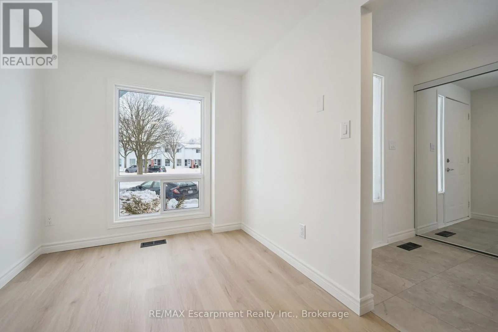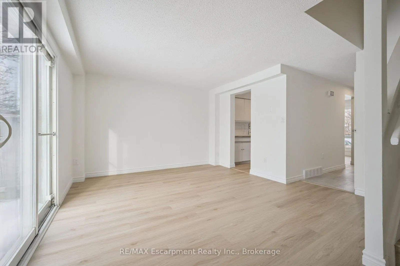 Cross Streets: -. ** Directions: Imperial Road N and Paisley Road. Nestled within a beautifully cared-for complex in Guelph's sought-after west end, this stylishly updated 3-bedroom, 1-bathroom townhouse effortlessly combines modern living with serene surroundings. Step inside to discover a bright, open-concept main level featuring contemporary laminate flooring and a welcoming living space that walks out to a private, tree-lined backyard-perfect for peaceful mornings or evening relaxation. The kitchen is both functional and sleek, offering white cabinetry, and generous counter space. An adjoining dining area provides a comfortable spot for family meals or entertaining guests. Upstairs, three spacious bedrooms and a tastefully updated 4-piece bathroom. Conveniently located near shopping hubs like Costco and Zehrs, excellent schools, and local parks, this move-in-ready home offers both lifestyle and location. (id:27476)