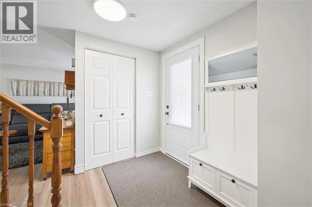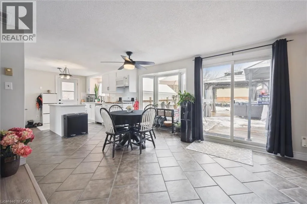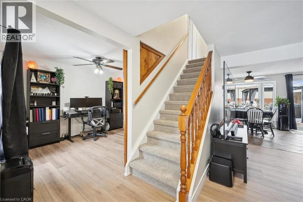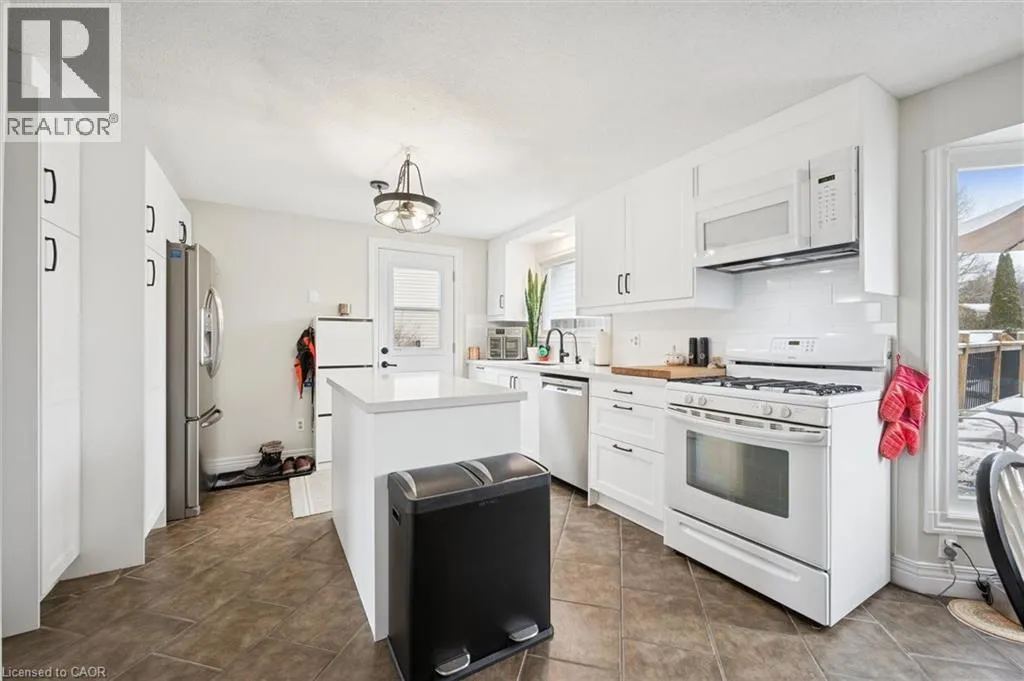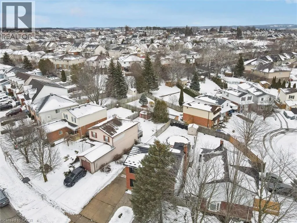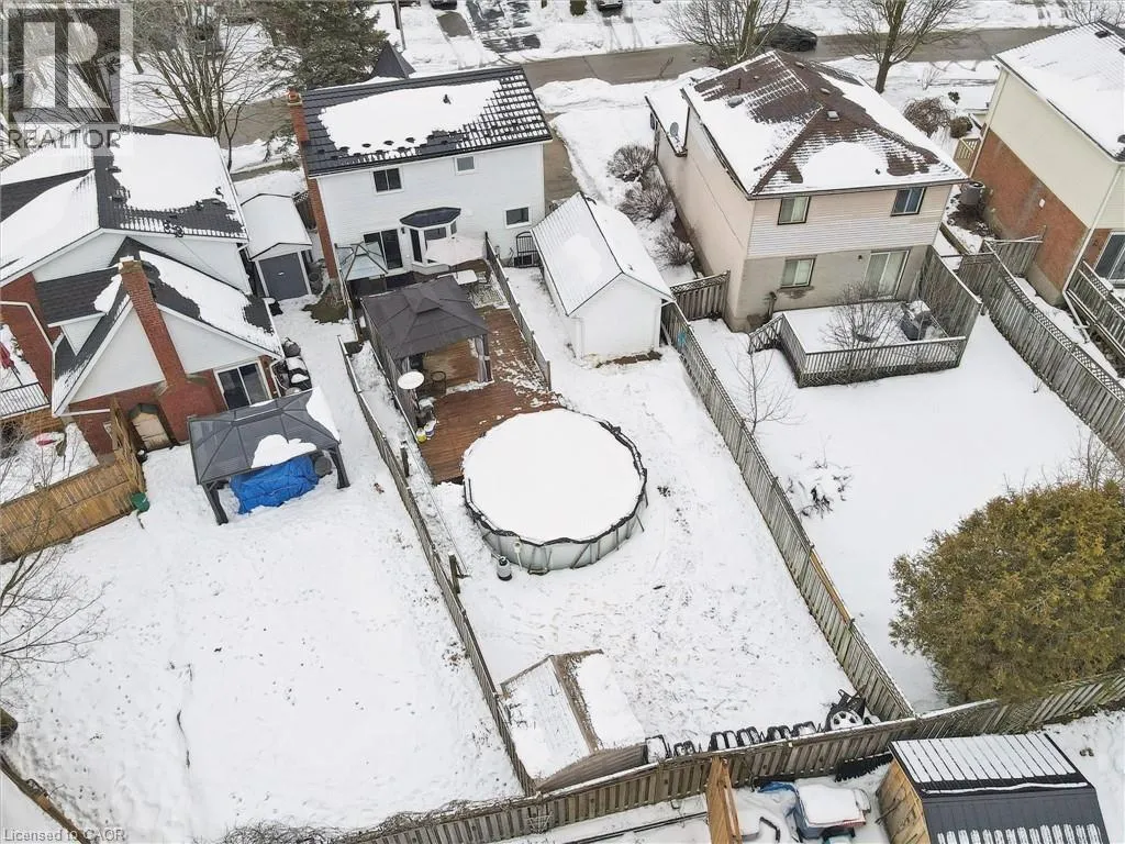 Beautifully maintained 2-storey home offering approximately 1,458 sq ft of comfortable living plus finished basement, in a desirable neighborhood of Guelph. This move-in-ready property features extensive upgrades throughout and an outdoor space designed for both relaxation and entertaining. Enjoy a large backyard complete with an above-ground pool, spacious deck, and BBQ gazebo with natural gas hookup. The deck provides direct access to the pool, creating the perfect setup for summer gatherings. Additional outdoor highlights include a powered workshop, utility shed, concrete driveway with parking for 4-5 vehicles, and roughed-in services for a future hot tub and pool heater. Inside, the home offers a bright open-concept main floor with a gas fireplace that helps heat both the main and upper levels. The modern kitchen was fully updated in 2024 with quartz countertops, subway tile backsplash, and excellent storage. Flooring and carpet were updated in2025, along with newer windows and attic insulation (2022) and a durable steel roof (2018).The second floor features three well-sized bedrooms, including a spacious primary with room for a sitting or workspace area. The finished basement adds valuable living space with a cozy family room, built-in bar, gas stove, laundry with 3-piece bath, and plenty of storage. Additional highlights include dual gas heating sources plus electric baseboard backup, a large10' x 18' powered workshop with loft storage, and a well-maintained above-ground pool with newer liner (2024).A fantastic opportunity to own a thoughtfully upgraded home offering comfort, functionality, and exceptional indoor-outdoor living (id:27476)