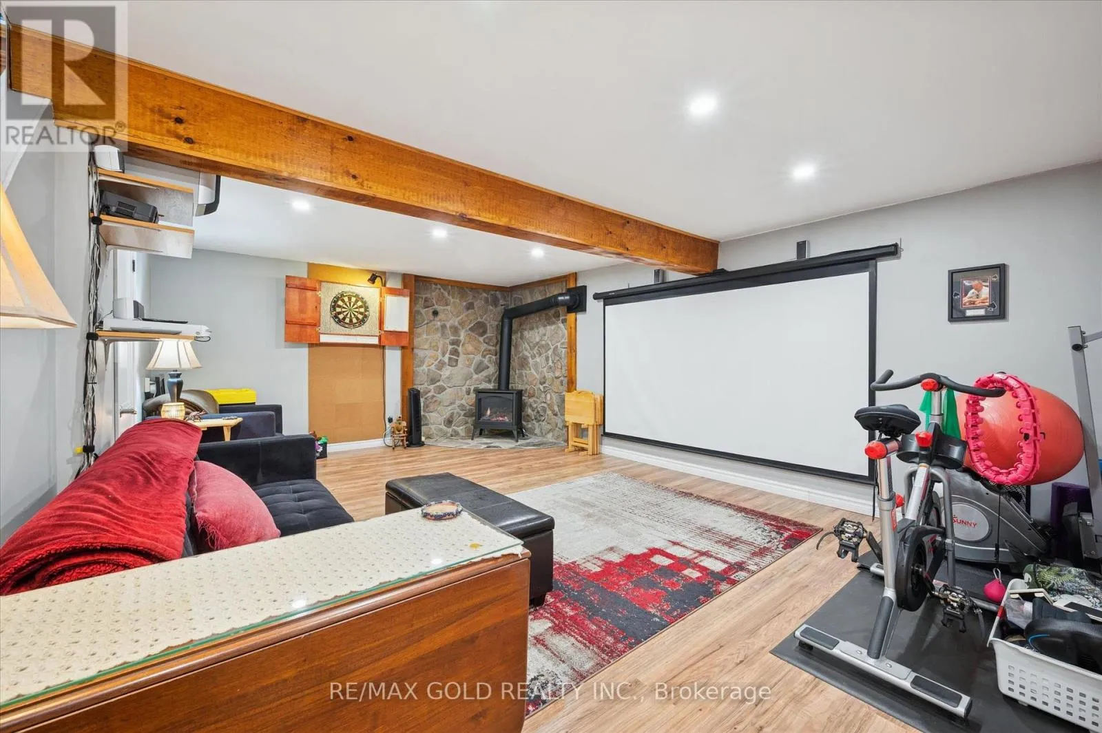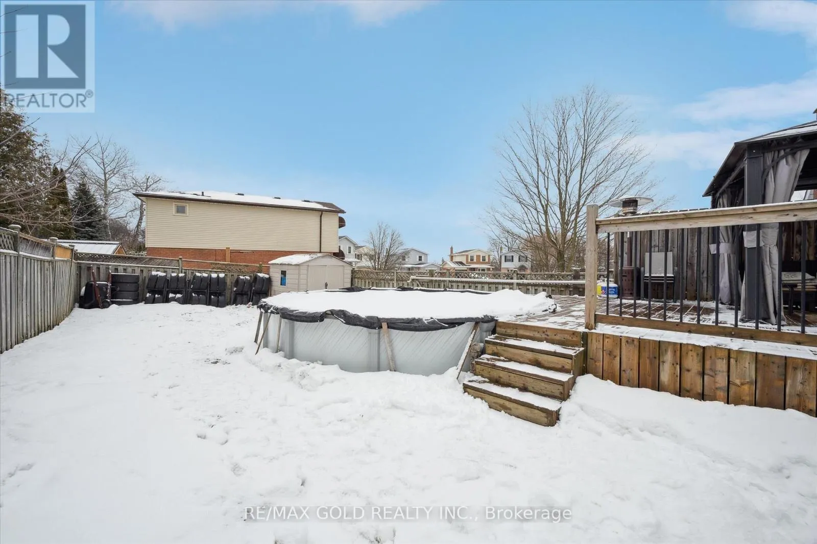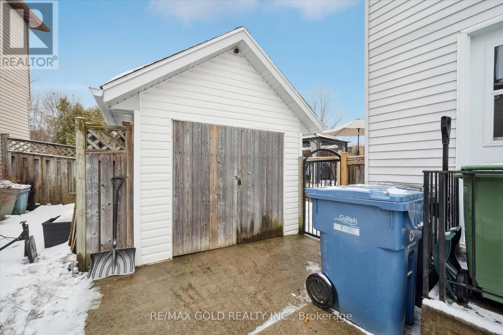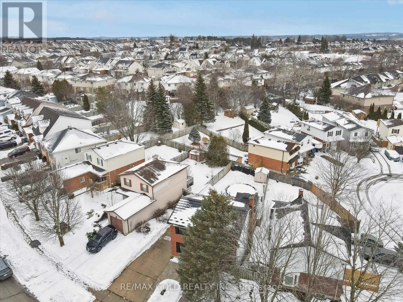 Grange Rd and Starwood Dr. Beautifully maintained 2-storey home offering approximately 1,458 sq ft of comfortable living plus finished basement, in a desirable neighborhood of Guelph. This move-in-ready property features extensive upgrades throughout and an outdoor space designed for both relaxation and entertaining. Enjoy a large backyard complete with an above-ground pool, spacious deck, and BBQ gazebo with natural gas hookup. The deck provides direct access to the pool, creating the perfect setup for summer gatherings. Additional outdoor highlights include a powered workshop, utility shed, concrete driveway with parking for 4-5 vehicles, and roughed-in services for a future hot tub and pool heater. Inside, the home offers a bright open-concept main floor with a gas fireplace that helps heat both the main and upper levels. The modern kitchen was fully updated in 2024 with quartz countertops, subway tile backsplash, and excellent storage. Flooring and carpet were updated in2025, along with newer windows and attic insulation (2022) and a durable steel roof (2018).The second floor features three well-sized bedrooms, including a spacious primary with room for a sitting or workspace area. The finished basement adds valuable living space with a cozy family room, built-in bar, gas stove, laundry with 3-piece bath, and plenty of storage. Additional highlights include dual gas heating sources plus electric baseboard backup, a large10' x 18' powered workshop with loft storage, and a well-maintained above-ground pool with newer liner (2024).A fantastic opportunity to own a thoughtfully upgraded home offering comfort, functionality, and exceptional indoor-outdoor living. (id:27476)