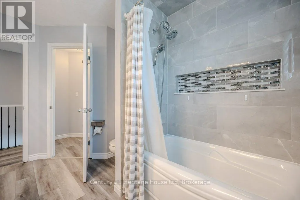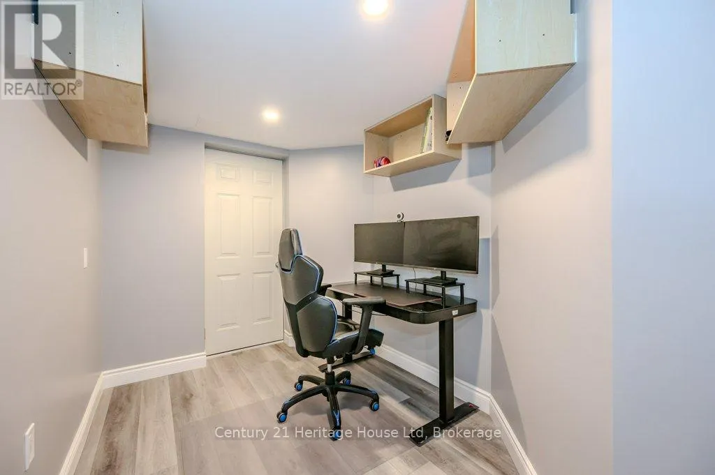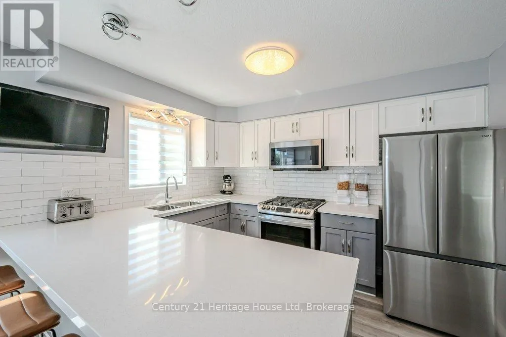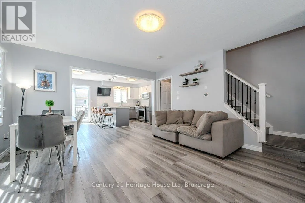 Cross Streets: Eastview and Watson. ** Directions: Eastview to Severn Drive. ENTIRE HOME, INCLUDES UTILITIES, MOSTLY FURNISHED - End unit freehold townhome. Just a breath of fresh air! That's how you will feel as you enter into the foyer of this family home. A Foyer with a double closet and separated from your main living space making it easy to keep all the back packs, shoes and jackets where they need to be. Entering into the expansive 23 foot Living room with gas fireplace, you will appreciate having all the space you need to accommodate your busy day to day life. The Kitchen offers a dining space and walk out to the bright and inviting deck space which overlooks the yard. The Kitchen boasts a gas stove, all stainless appliances and attractive quartz counter and updated lighting. No carpet in this home making it easy to maintain! Upstairs there are two nicely sized bedrooms rooms plus a large Primary with walk-in closet and gas fireplace with seating area. There is a semi ensuite family bath with double sinks! Also on this level is an office loft area making working at home easy. The basement offers a laundry closet, another den/office space and a large recreation room area and a 3 piece bathroom. 3 parking spaces included, two in the drive way and one in the garage. Don't forget the deck area and private yard! (id:27476)